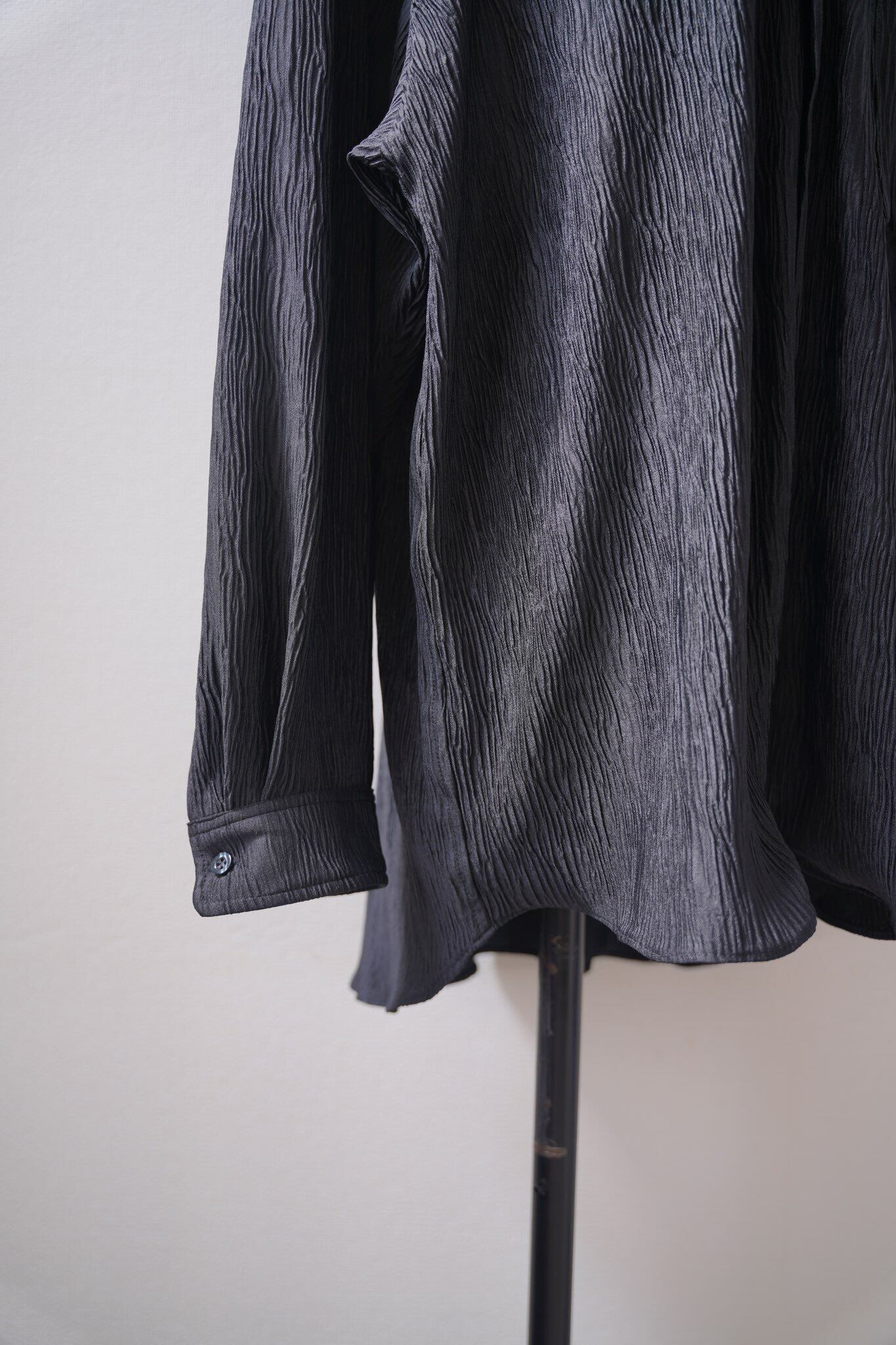 独特なうねりのある畝のプリーツ素材が特徴のオープンカラーシャツ。