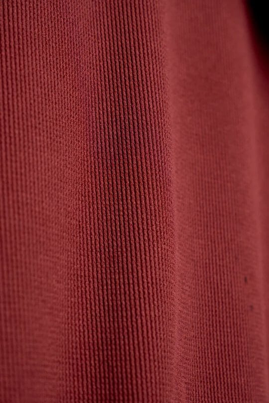 深みのあるブラウンが、シーズンムードを高める一着。