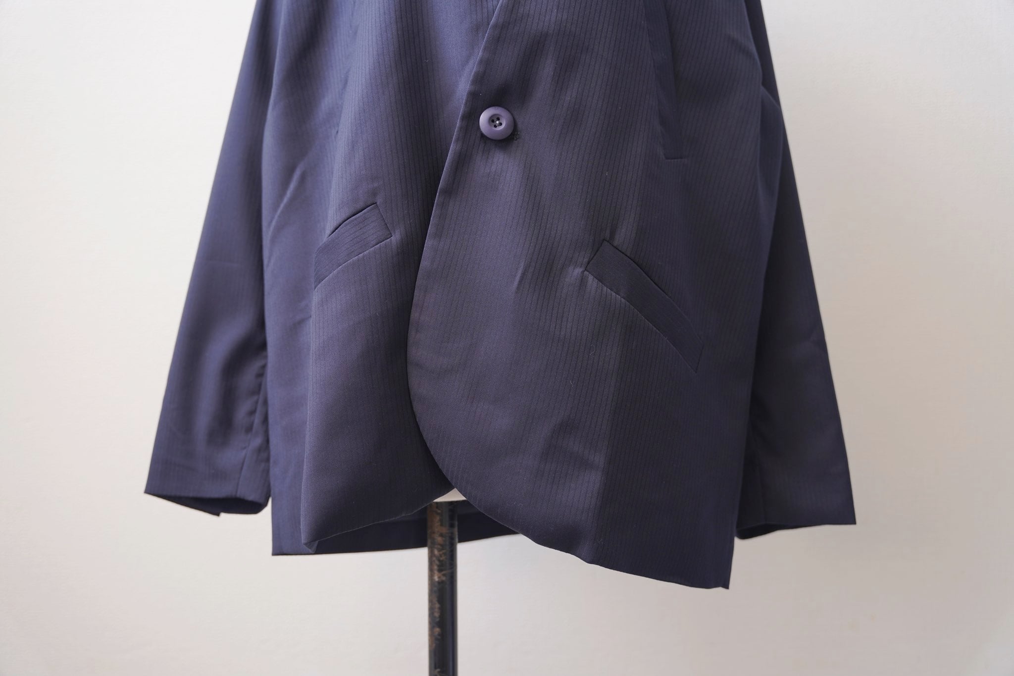 さりげないストライプ柄が上品な印象を与えるデザインジャケット。