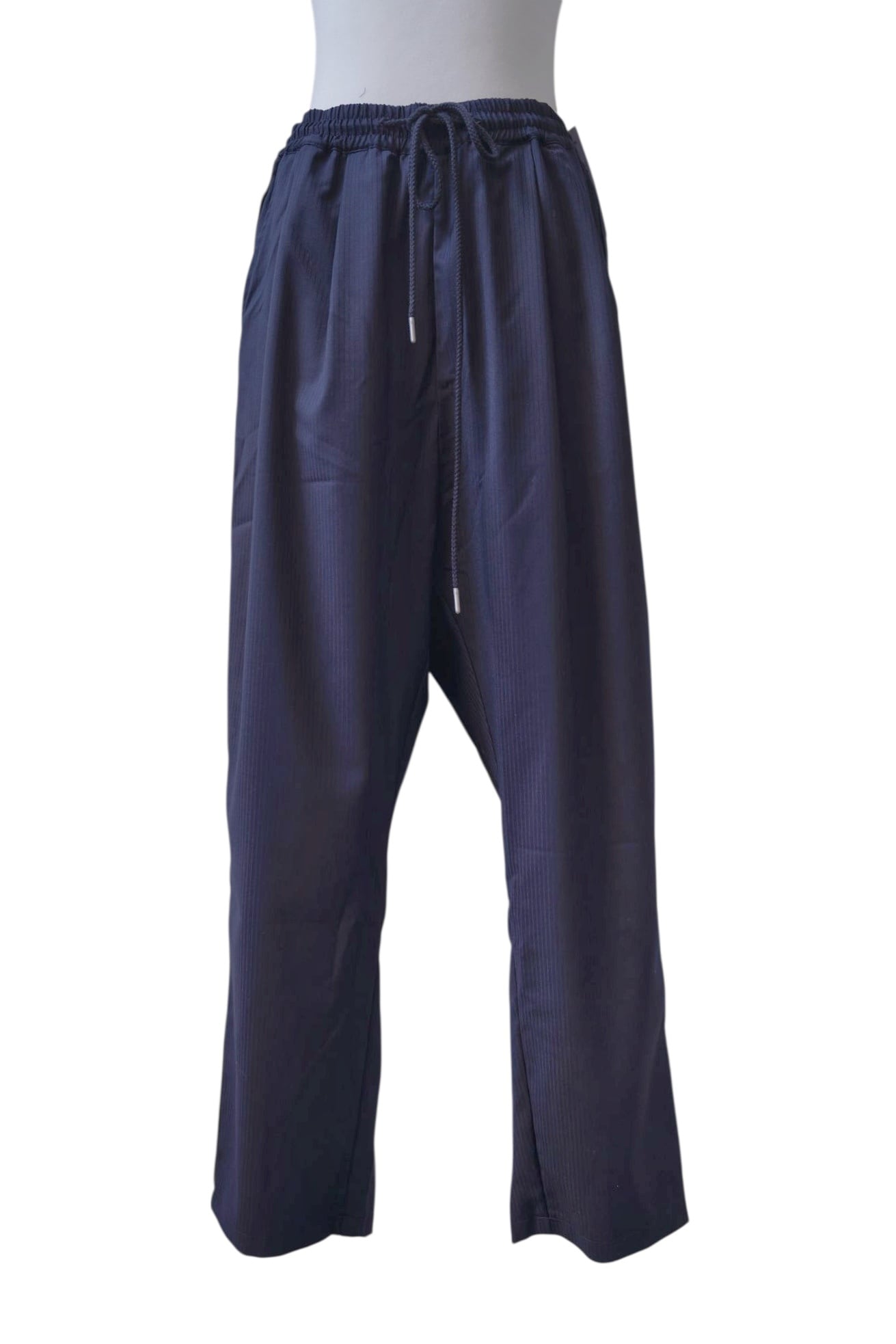 さりげないストライプ柄が特徴のワイドストレートパンツ。