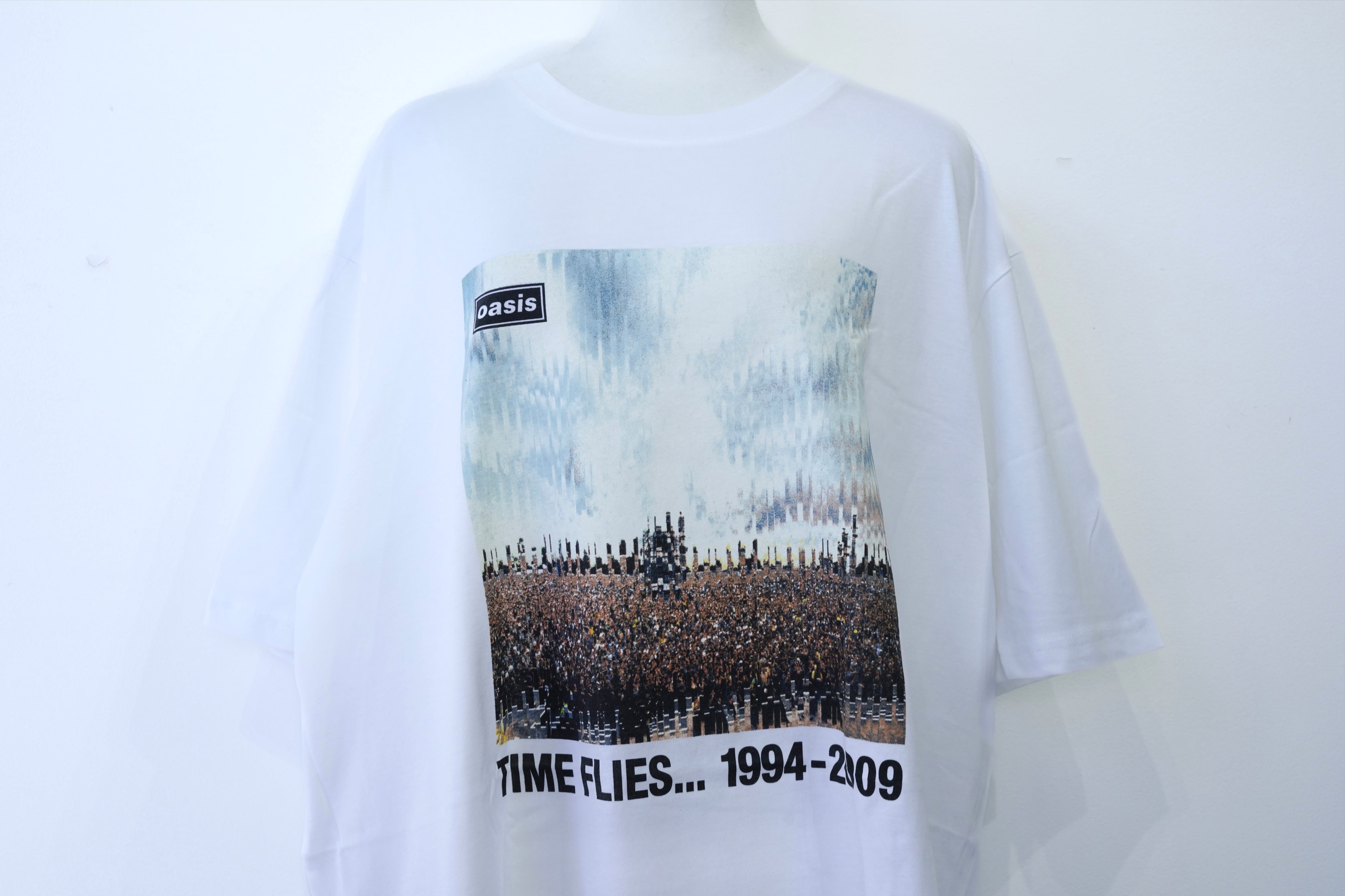 伝説的バンド Oasis の軌跡を辿る、ベストアルバム『Time Flies… 1994–2009』のリリース15周年を記念したスペシャルTシャツ。