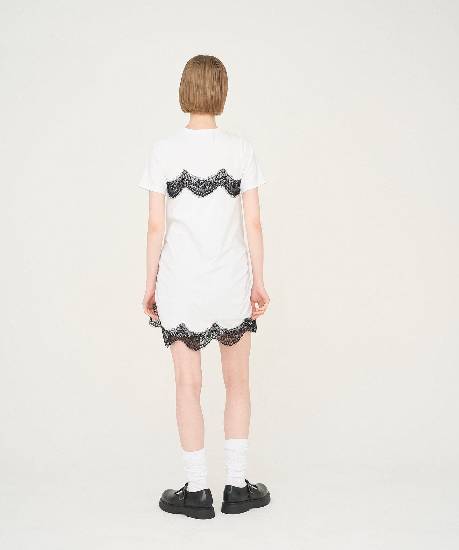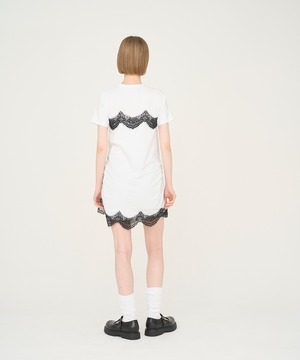 ランジェリーを想起させるレースディテールが、カジュアルなTシャツスタイルにフェミニンなひねりをプラス。