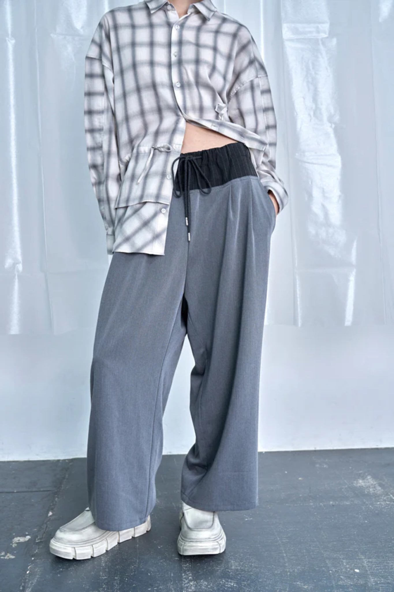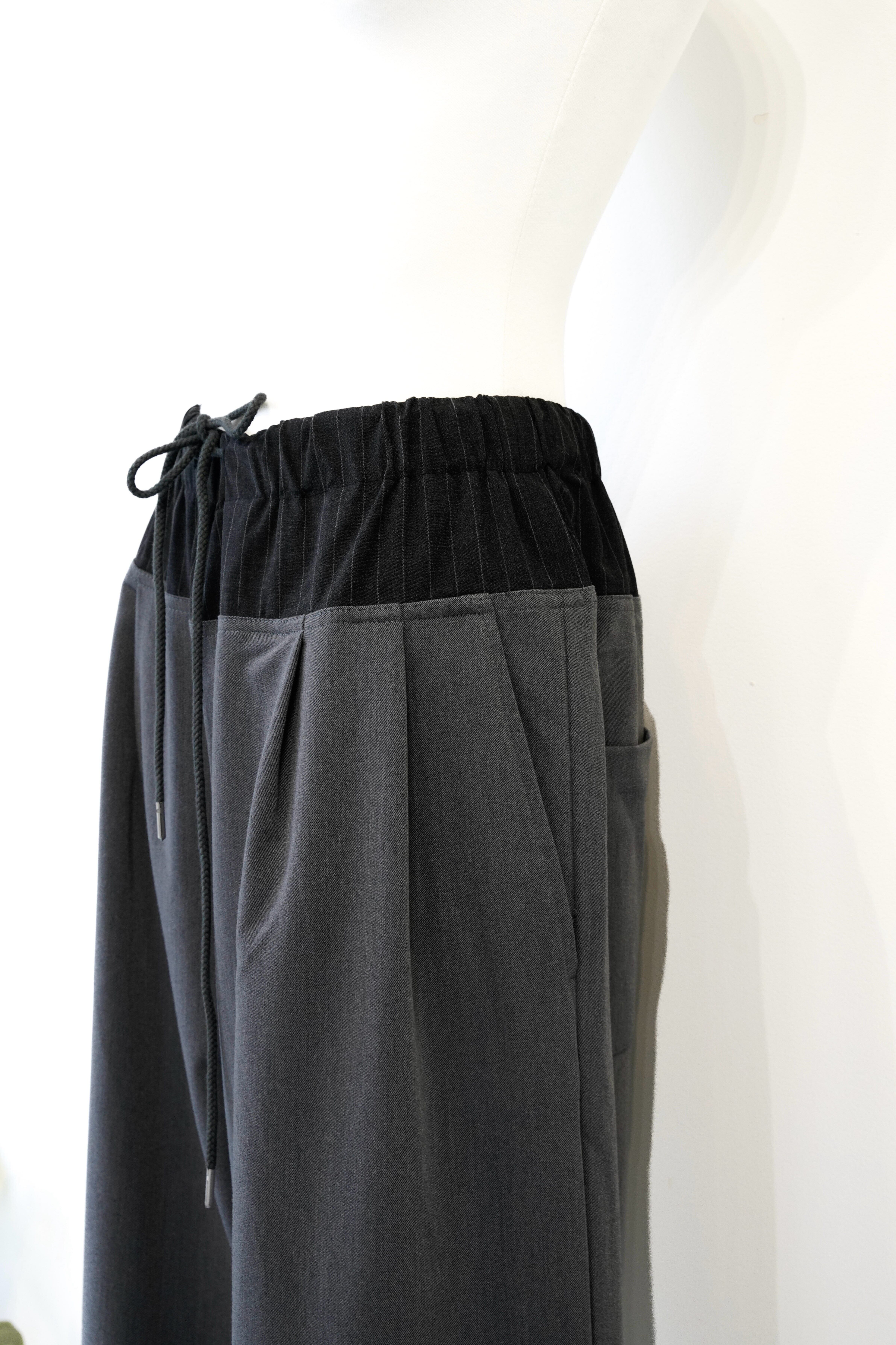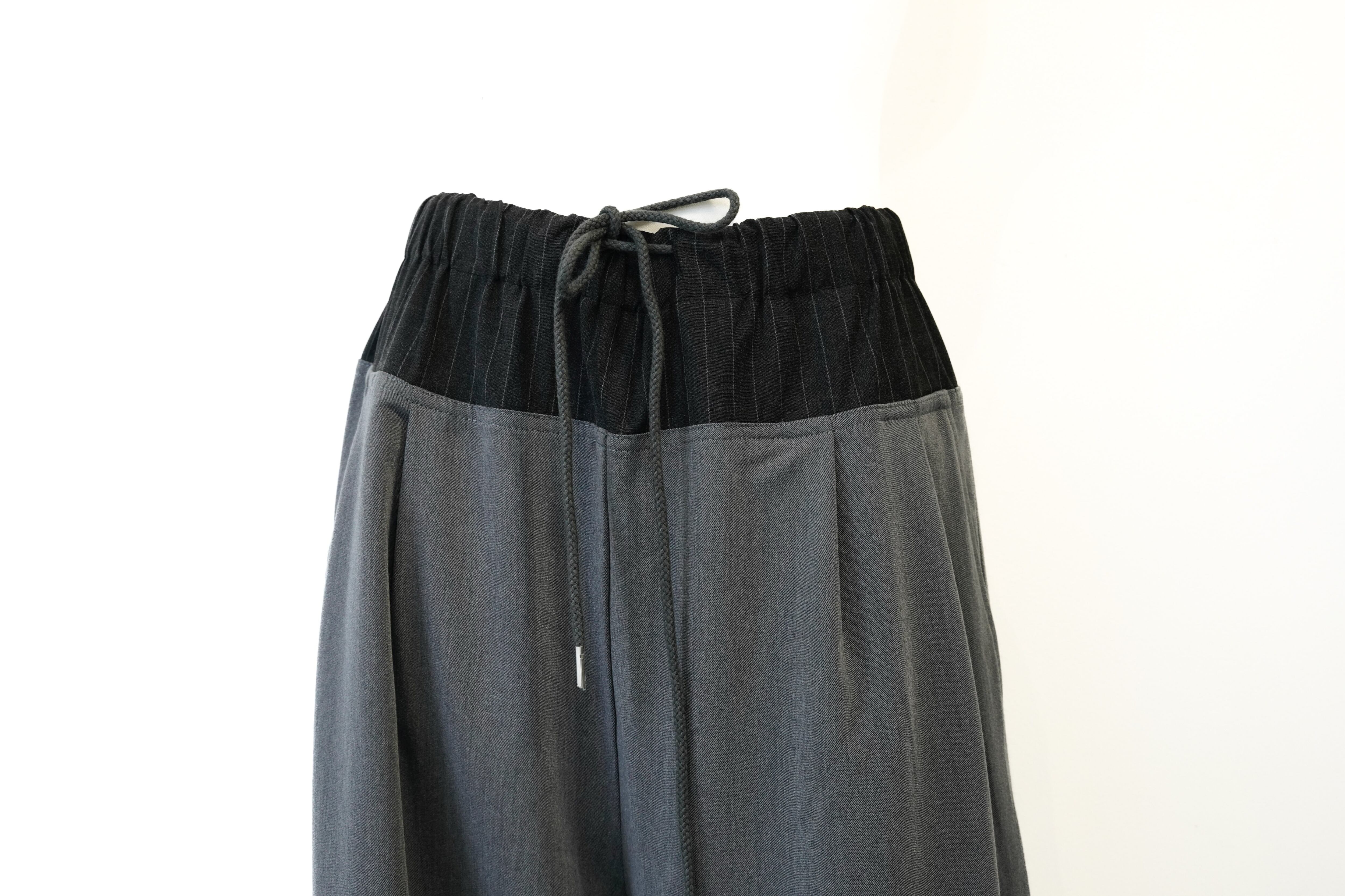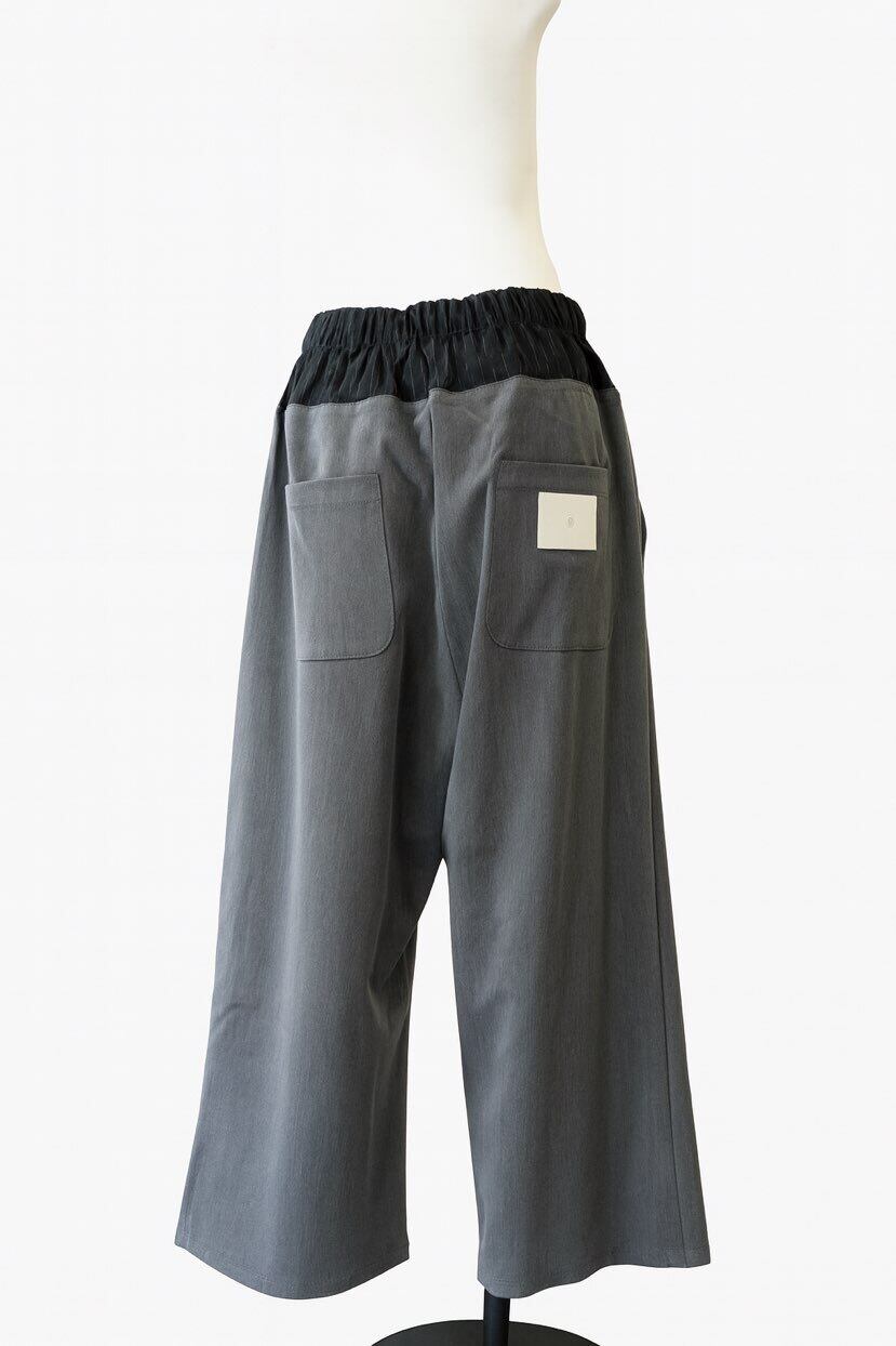 柔らかなグレーにブラックのウエストパネルが映える、洗練されたバランスの一枚。