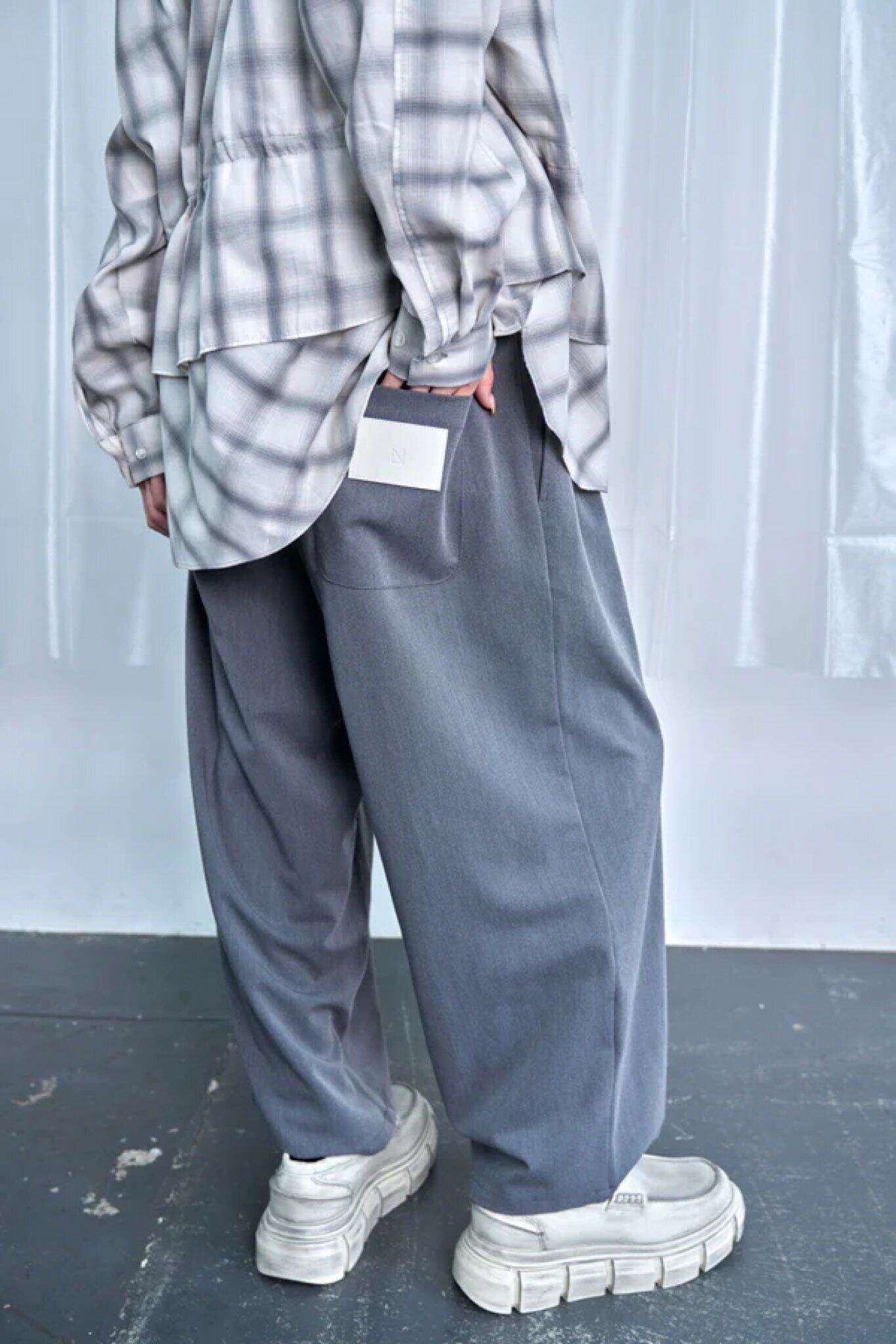 ワイドシルエットに落ち感のある生地を合わせ、都会的なリラックスムードを演出するパンツ。