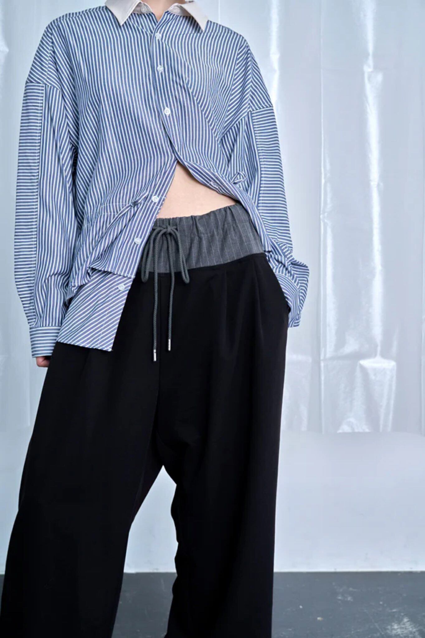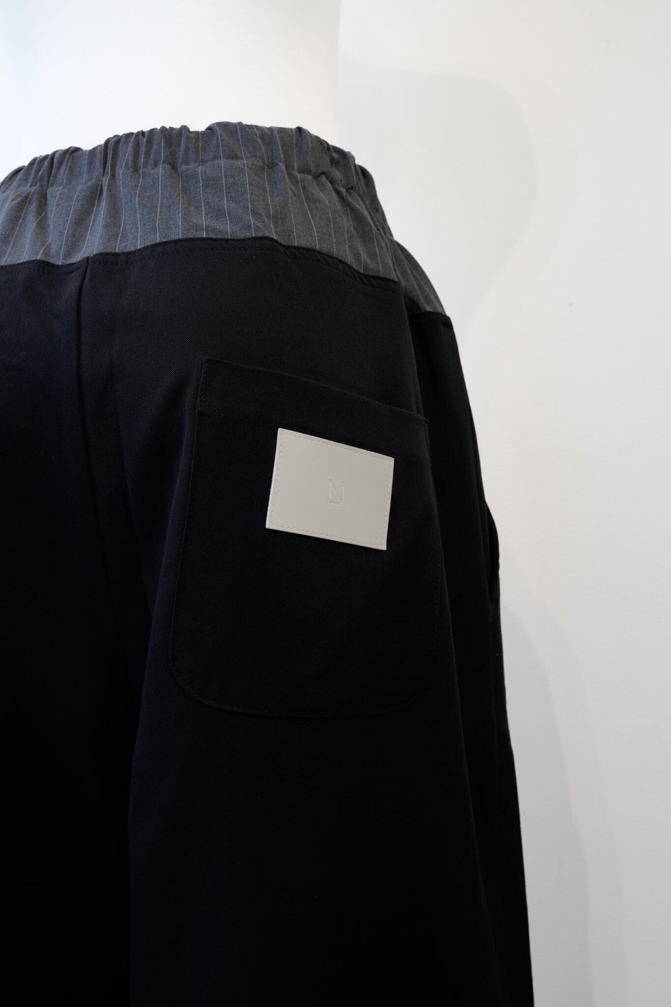 ウエストはゴム+ドローコード仕様で快適な穿き心地ながら、ストライプパネルを切り替えアクセントをプラス。