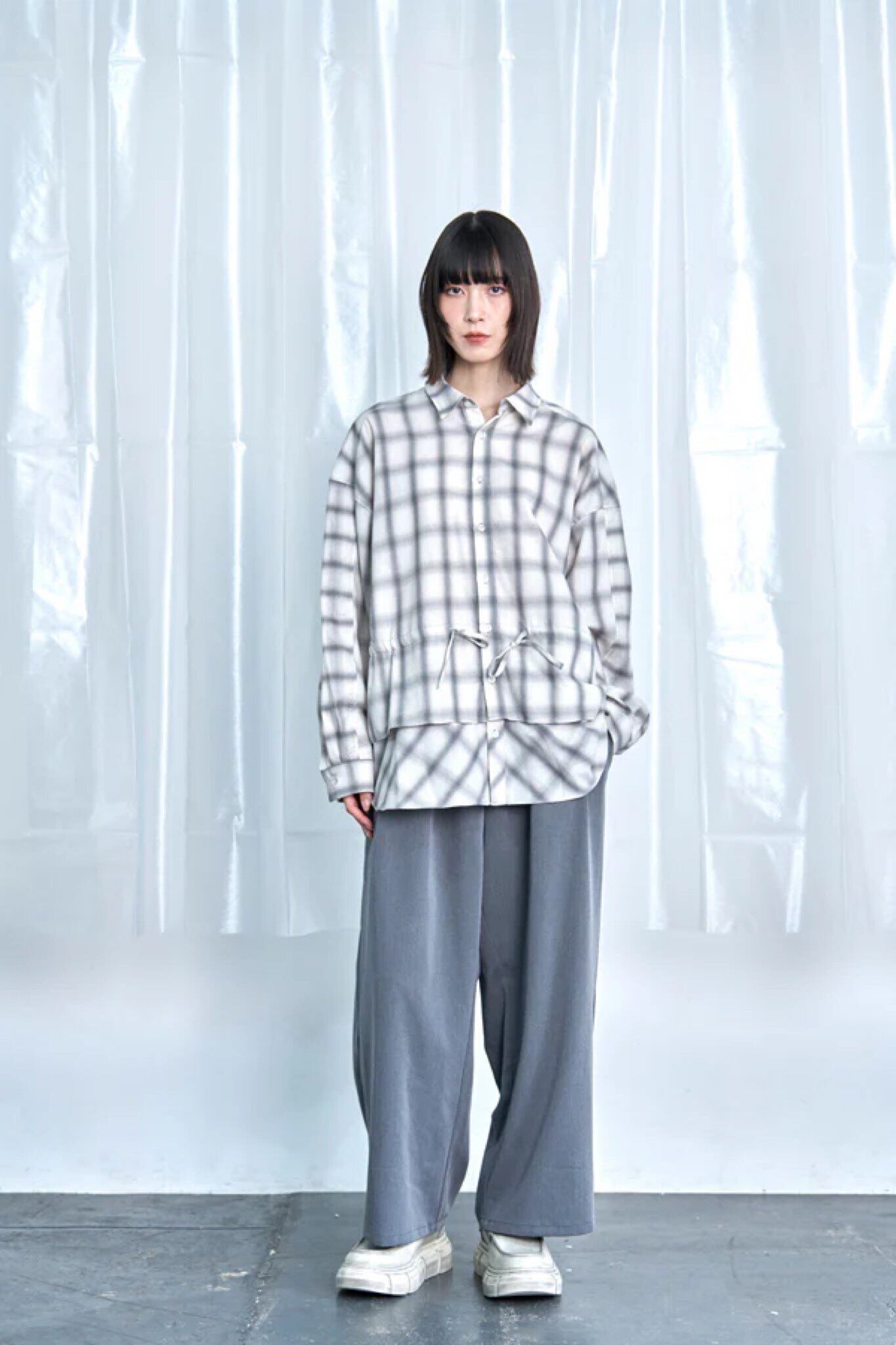 モノトーンのぼかしチェックが落ち着いた雰囲気を演出。