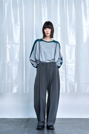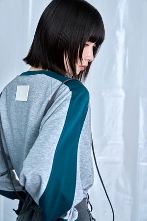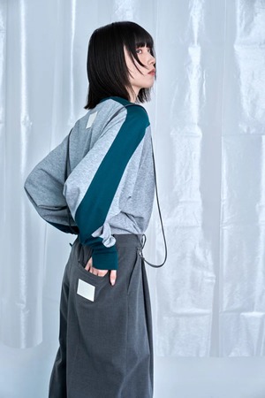 Nora Lily/ Switching Bi-Color Tuck Raglan Tee/ グリーン×グレー