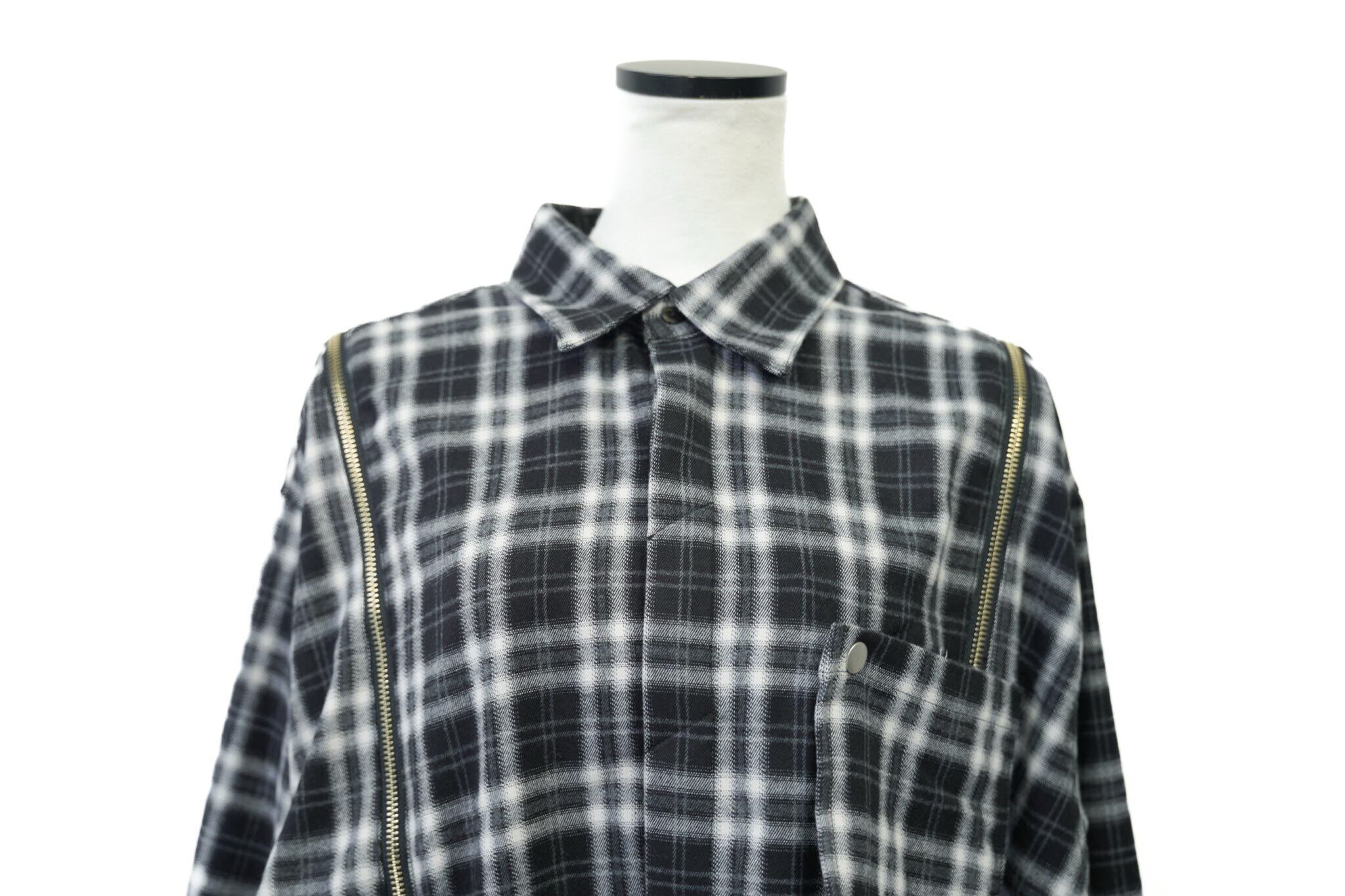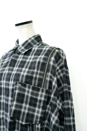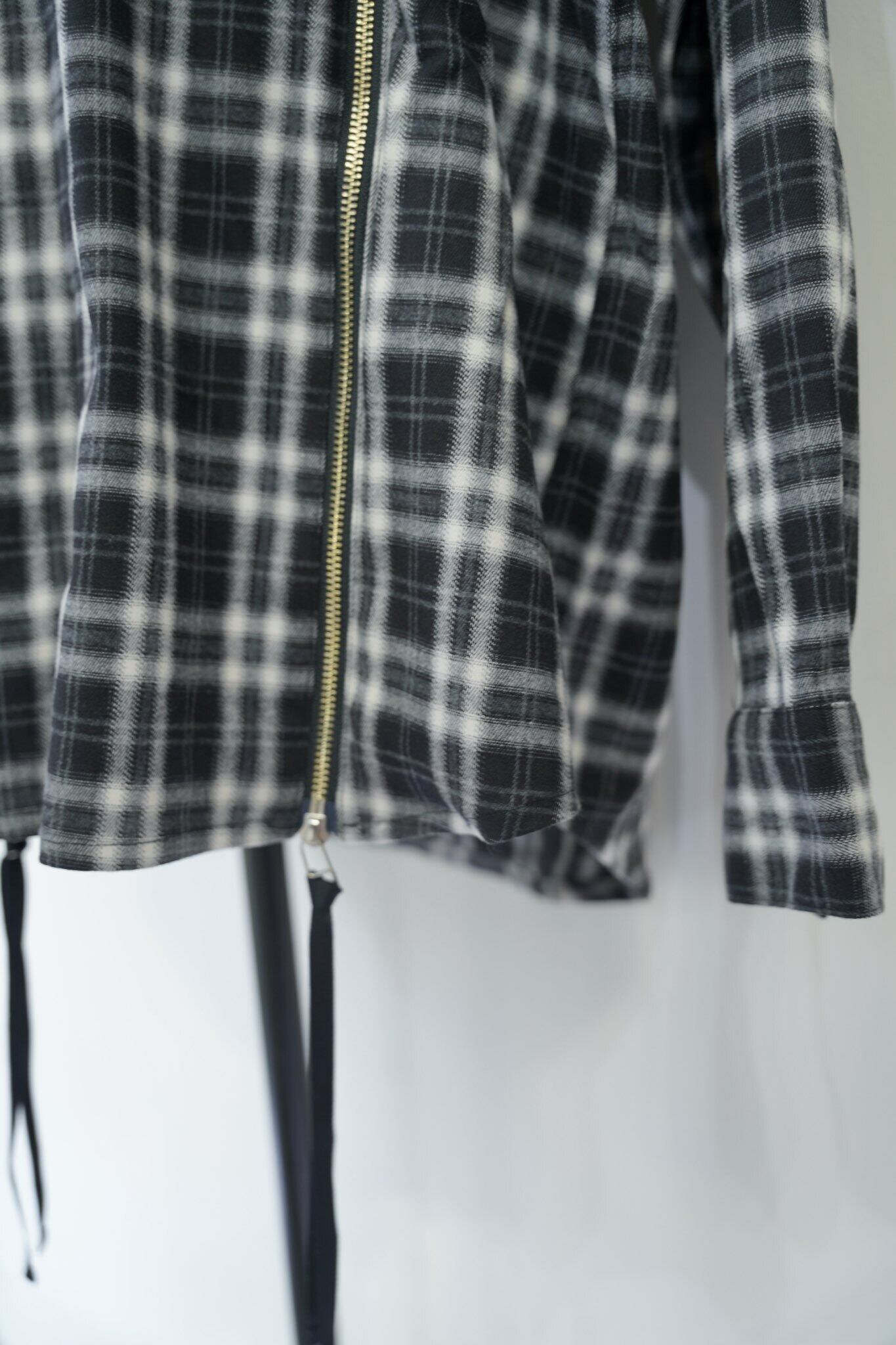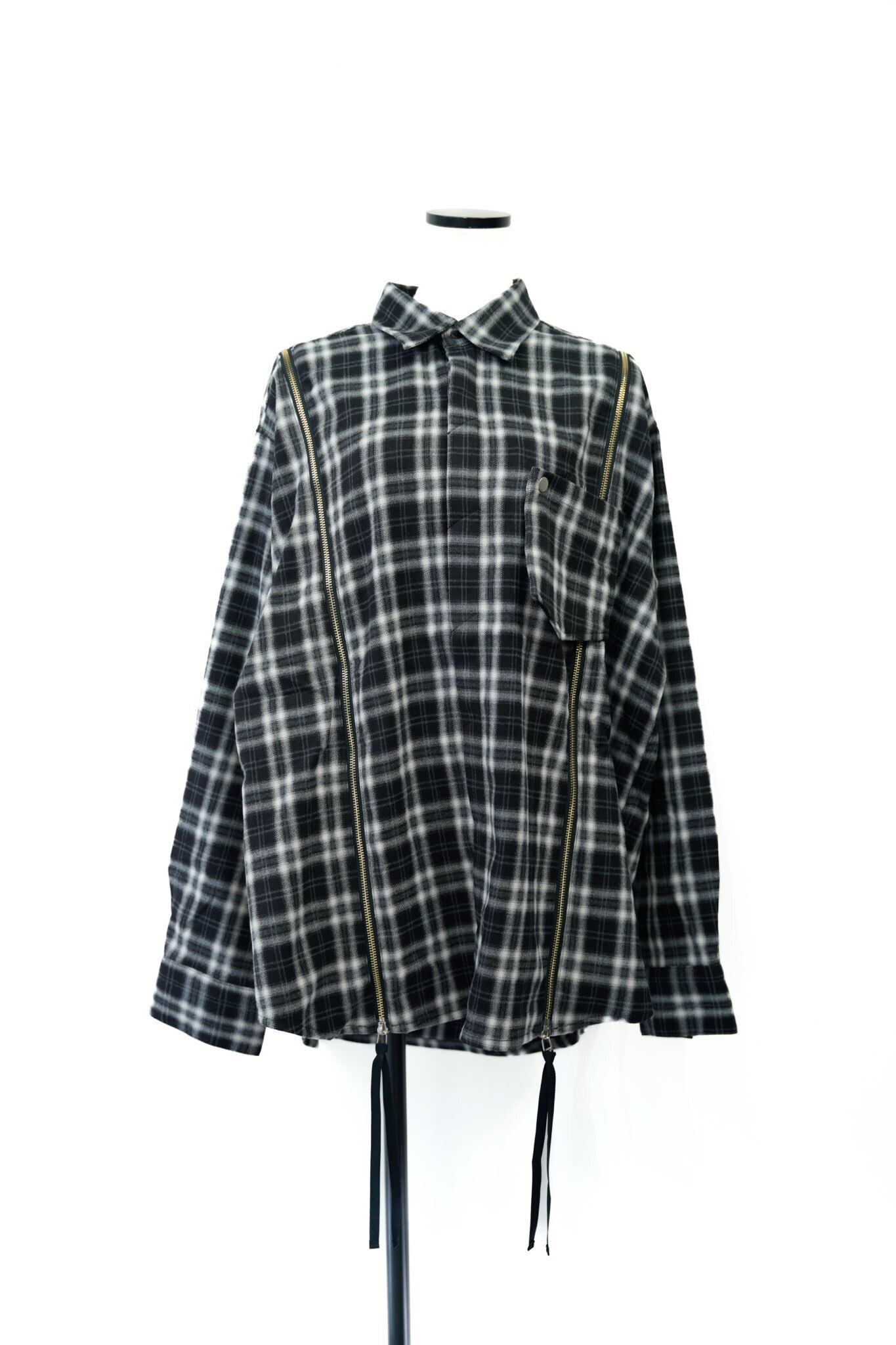 ジップのラインが印象的な、モードな雰囲気を纏ったチェックシャツ。