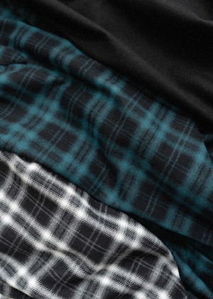 ブラックベースのチェック柄は落ち着きがありながらも存在感があり、スタイリングの主役に。