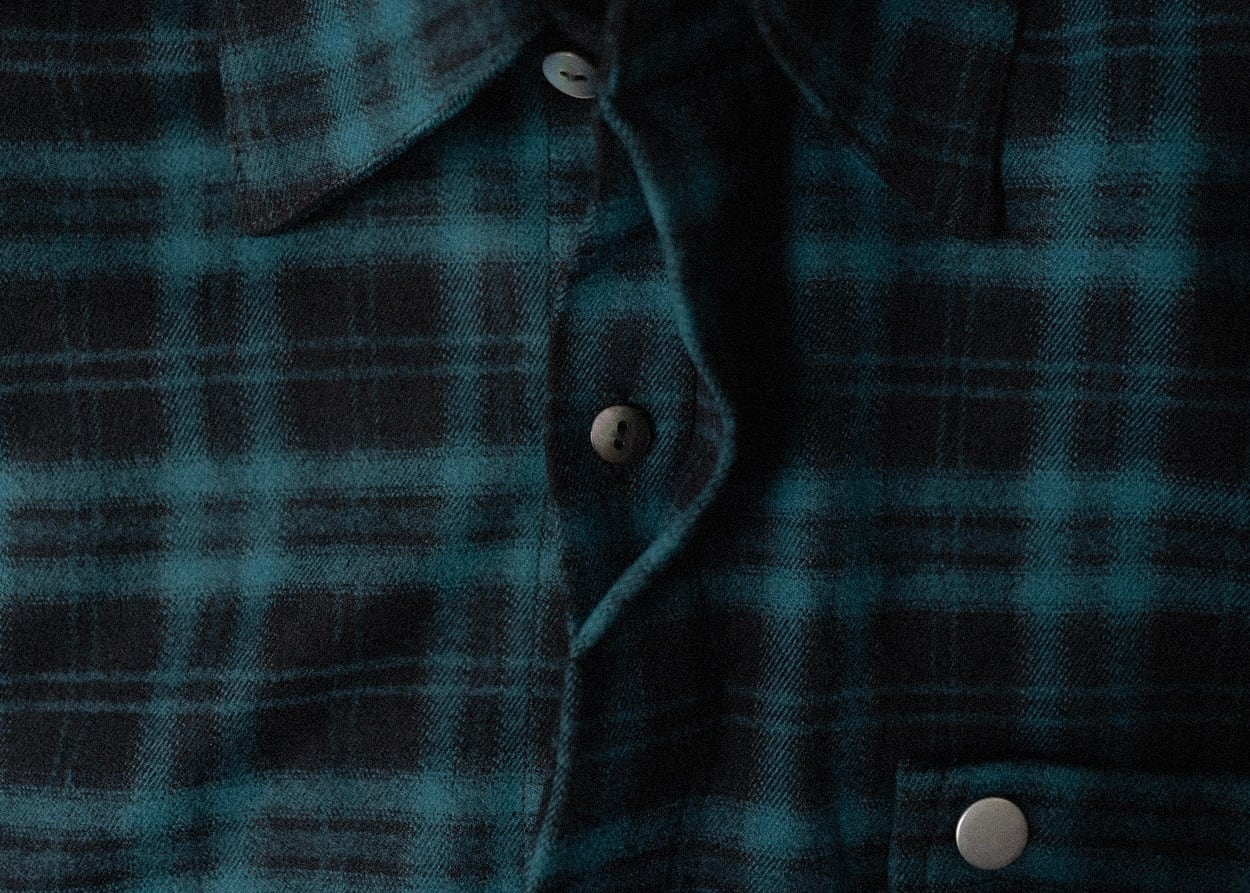 深みのあるグリーンを基調にしたチェック柄シャツ。