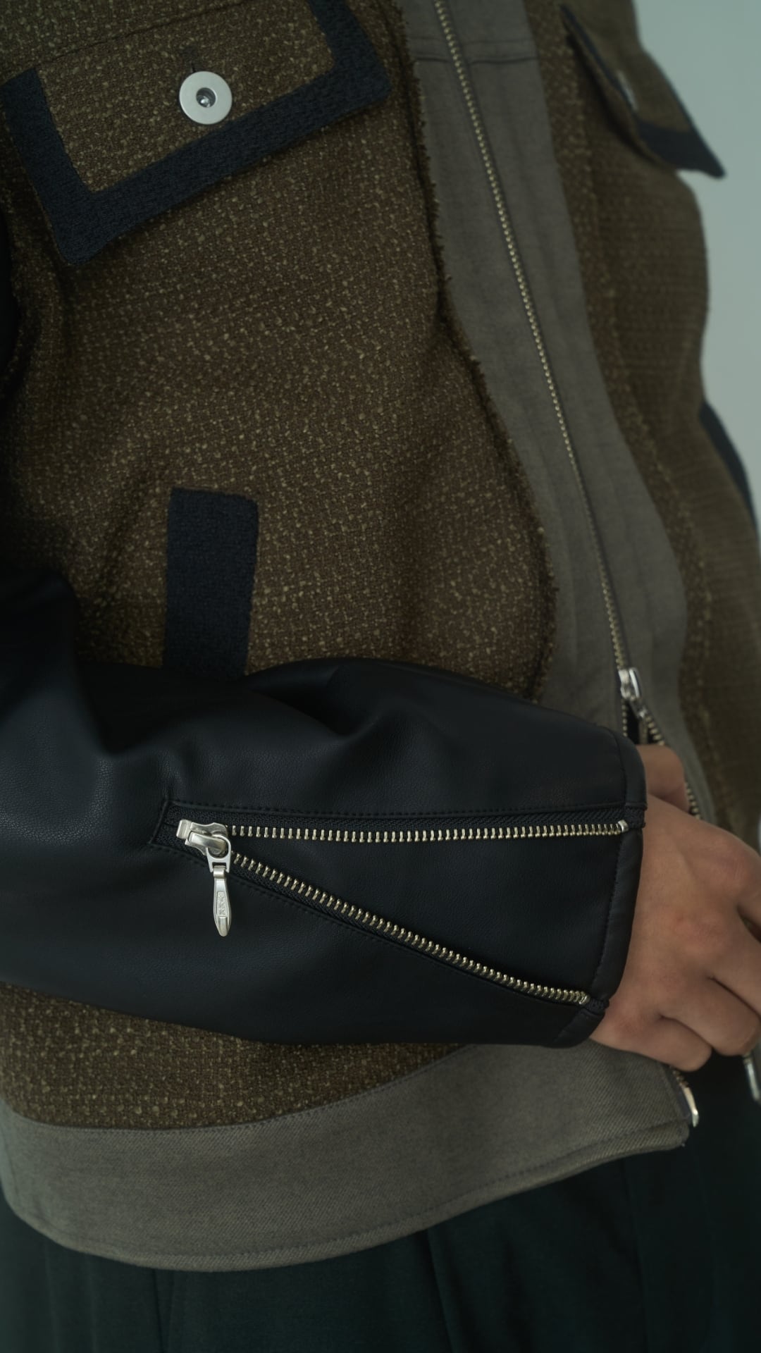 • ジップや合成レザー部がアクセントになるので、ミニマルなスタイルに一点投入しても引き立ちます
