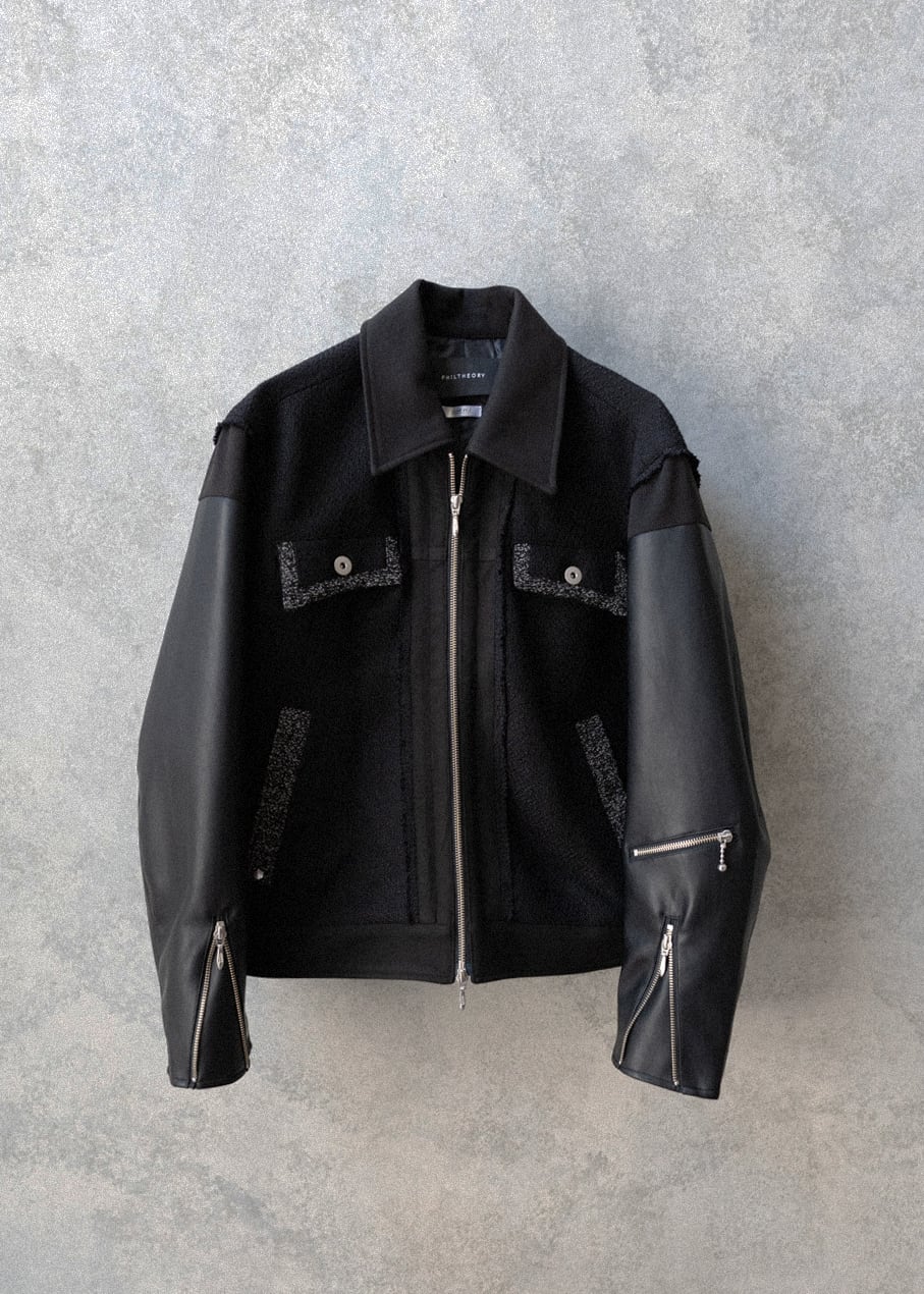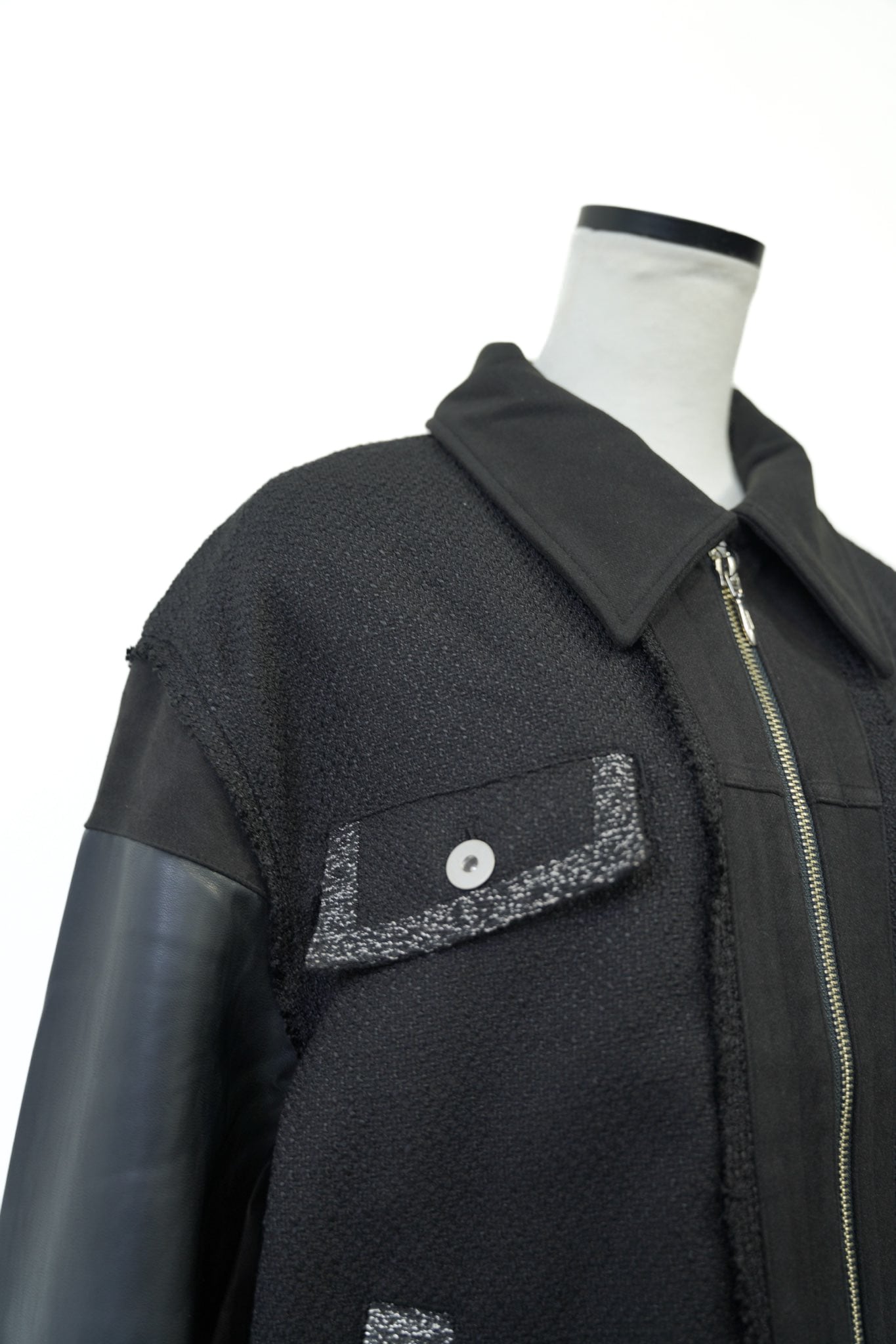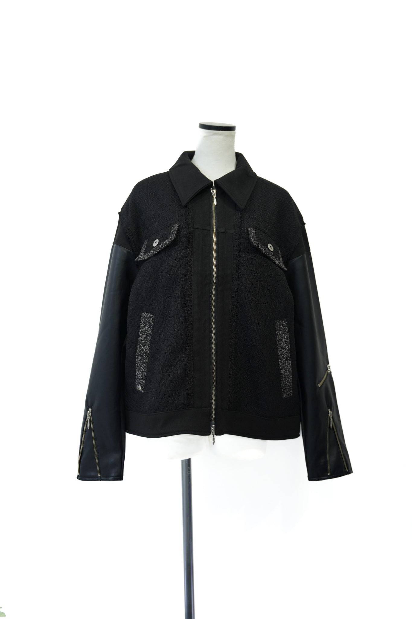 無骨さと洗練が交差する、ブラックカラーのドッキングジップブルゾン。
