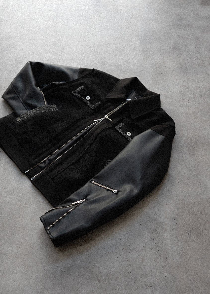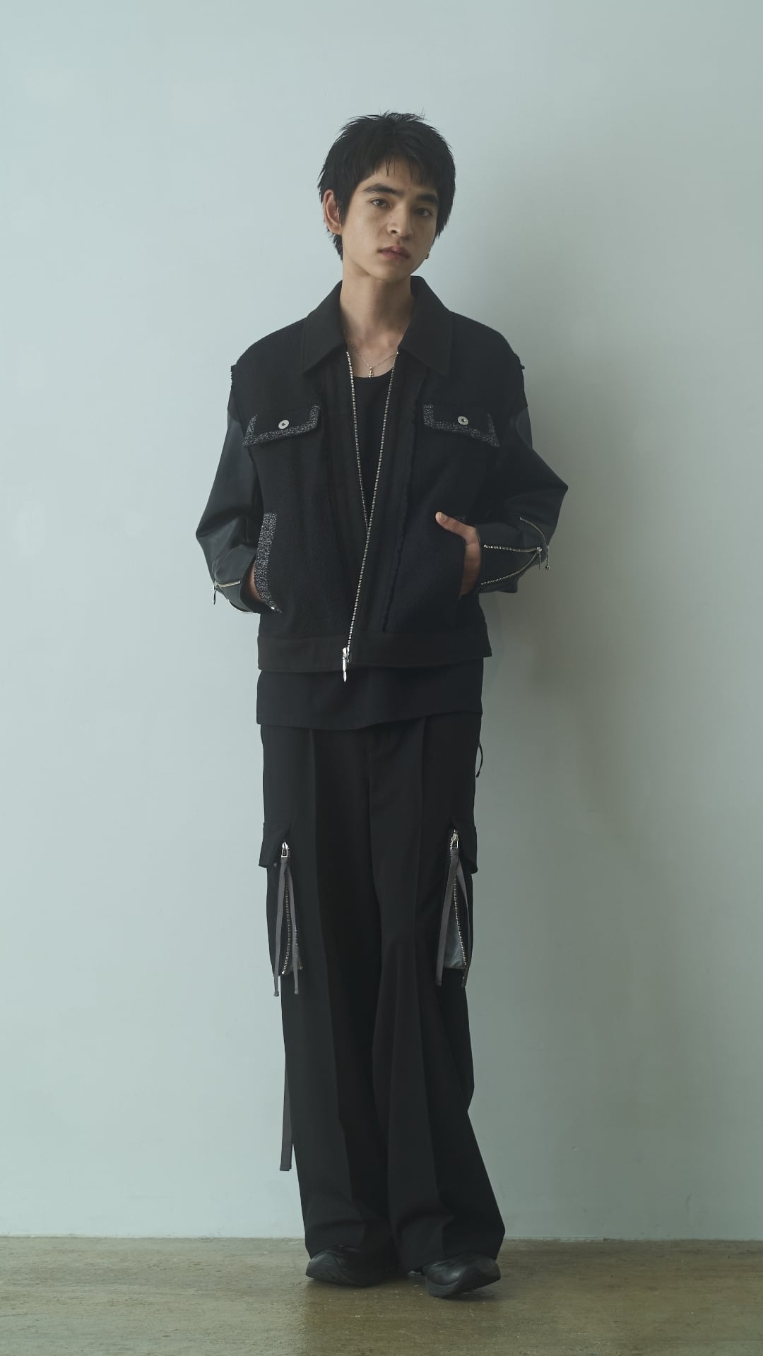 メタリックなジップディテールと構築的なシルエットが際立ち、モード × ストリートの世界観を表現します。
