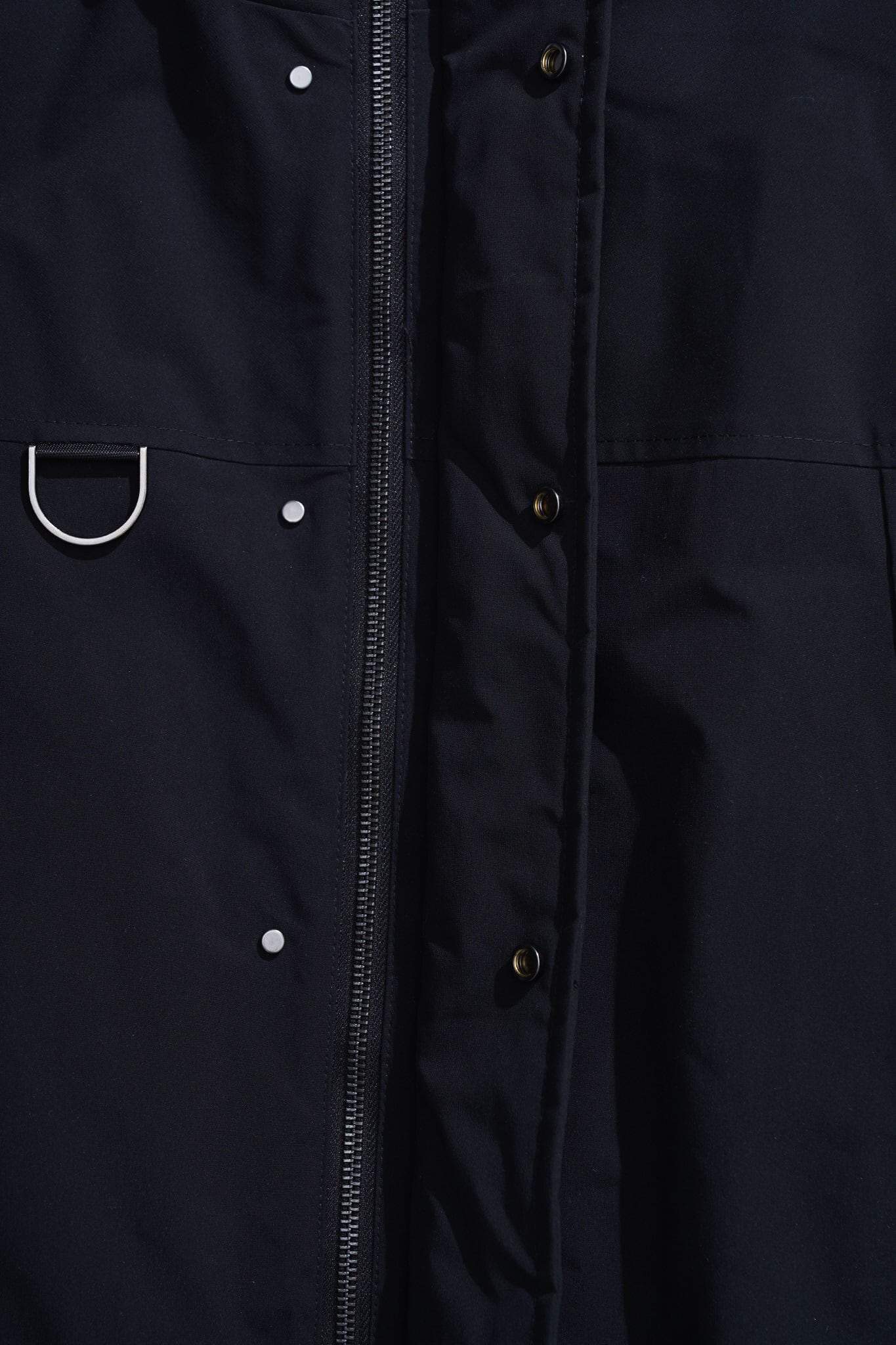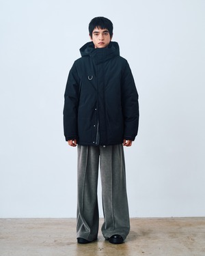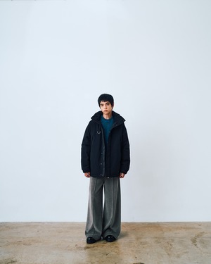 フロントはシンプルな比翼仕立てで、ジップを閉めればモードに、開ければリラックスに。