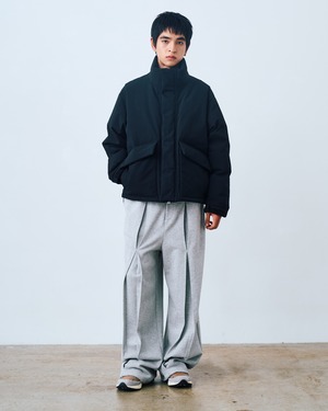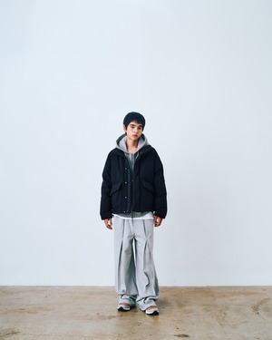 フロントはシンプルな比翼仕立てで、ジップを閉めればモードに、開ければリラックスに。
