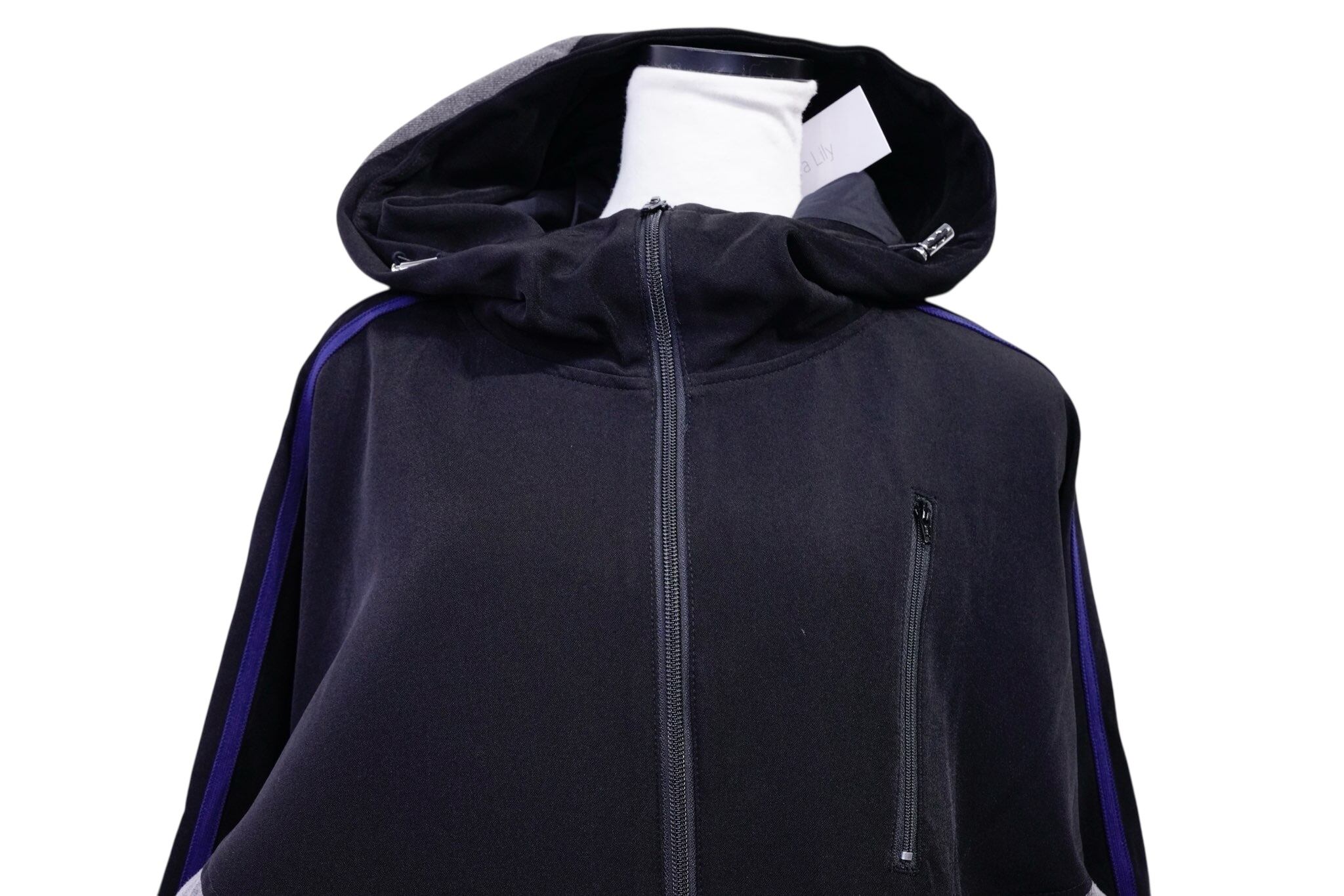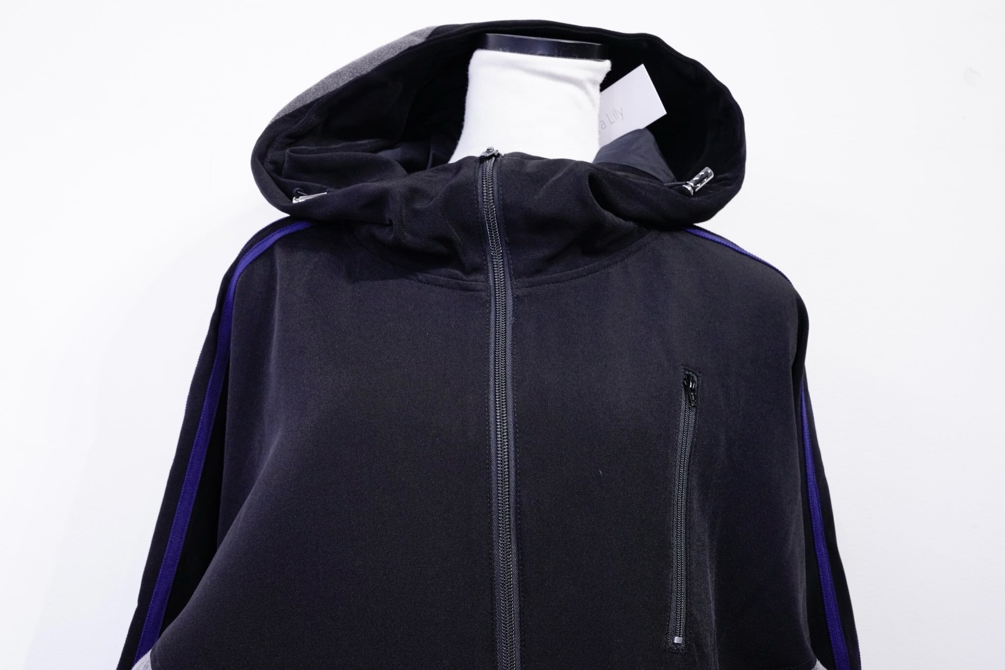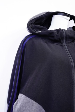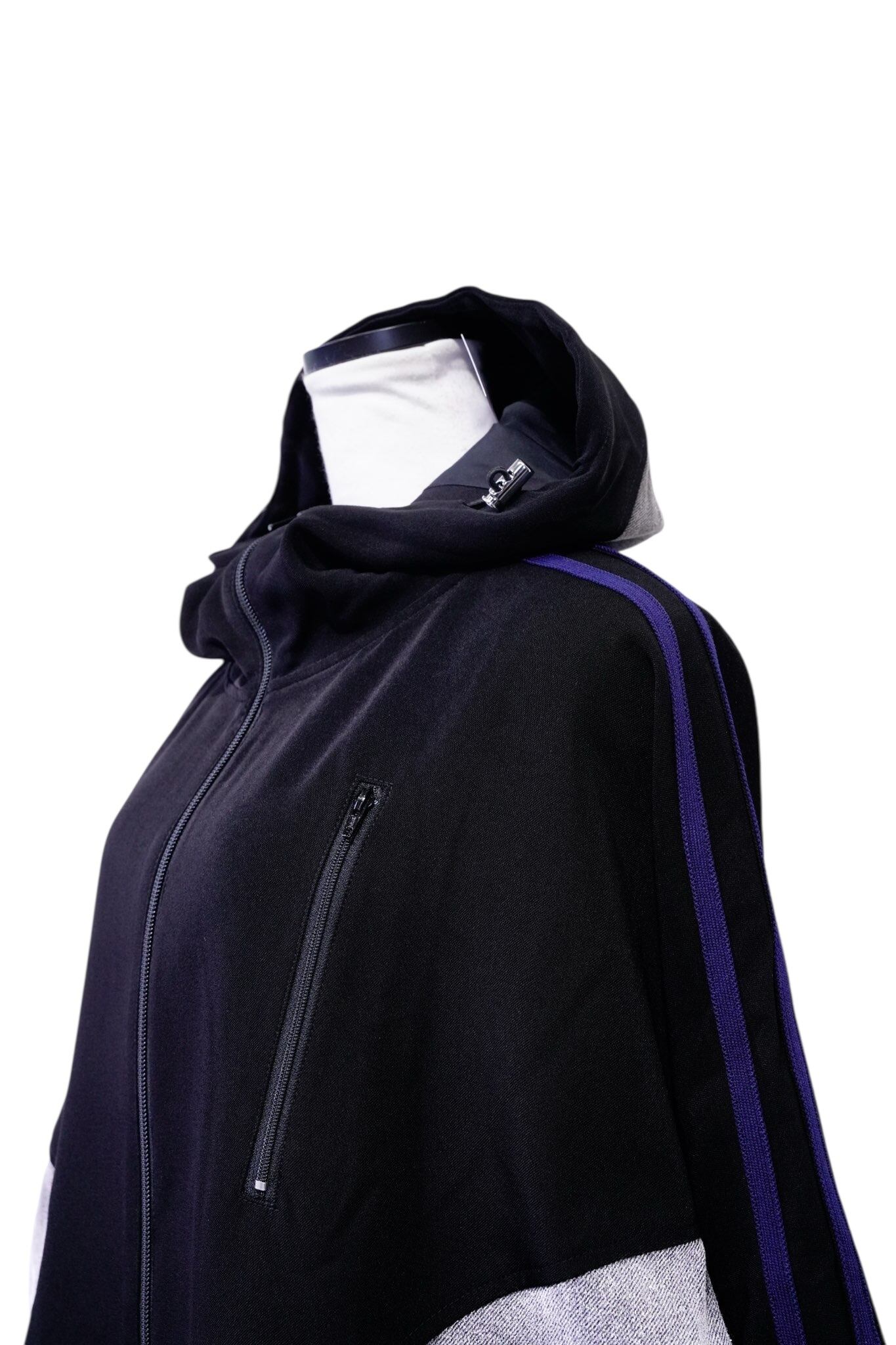 モノトーンの配色に、さりげなく効かせたパープルラインが映えるシックなブルゾン。