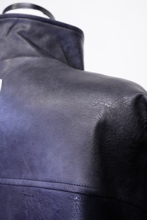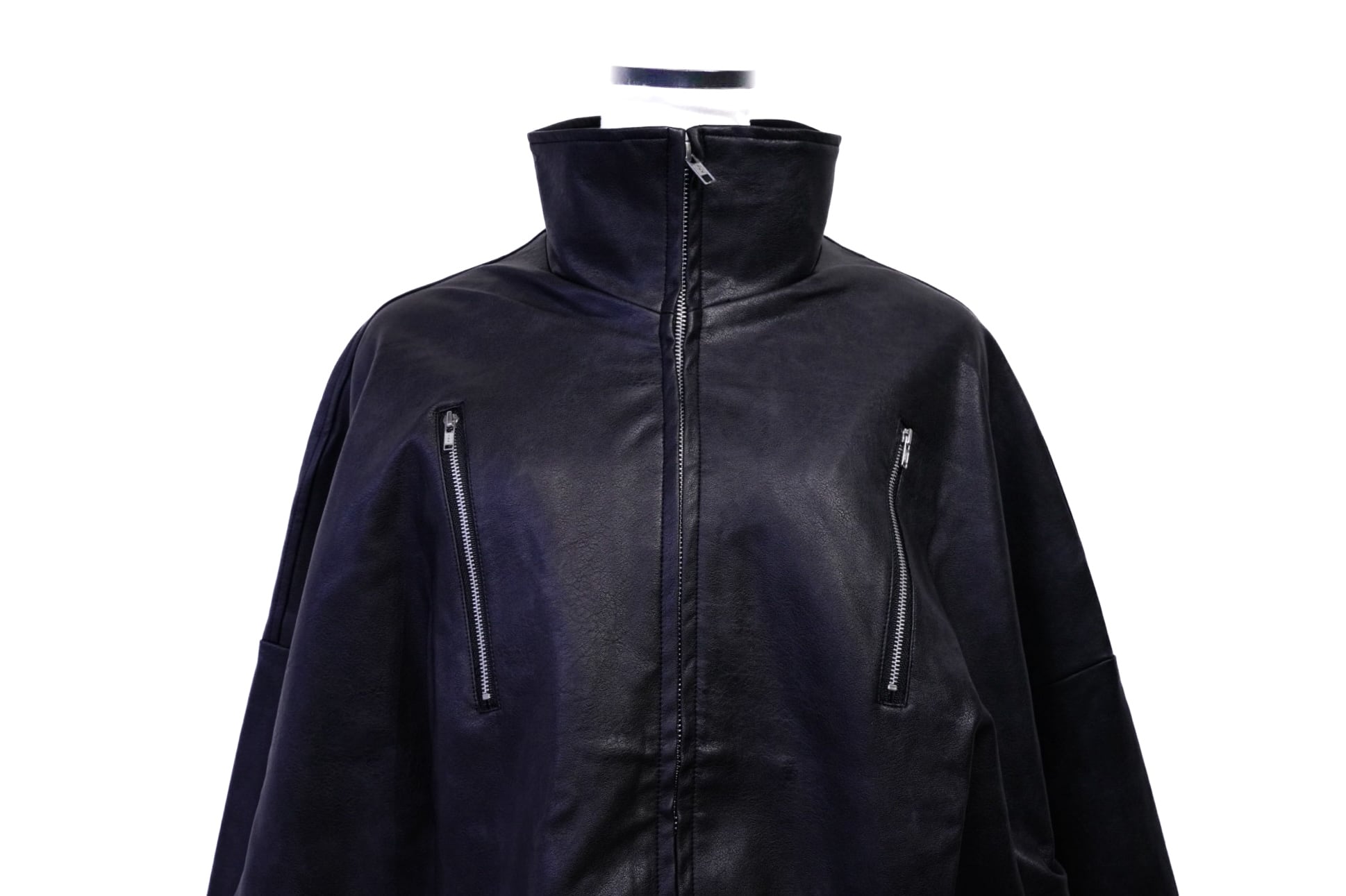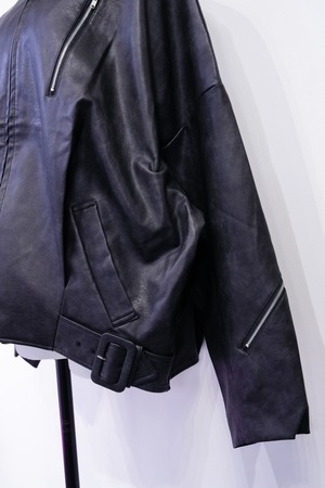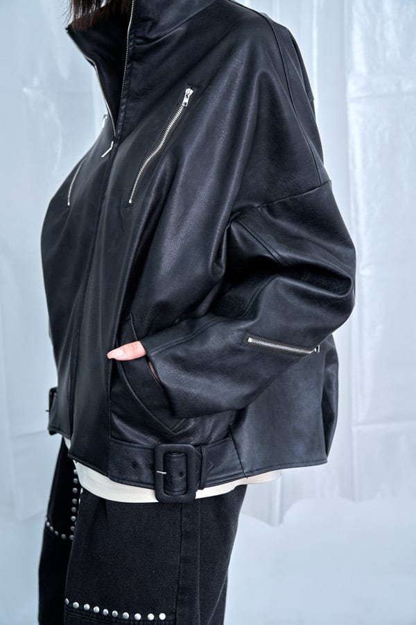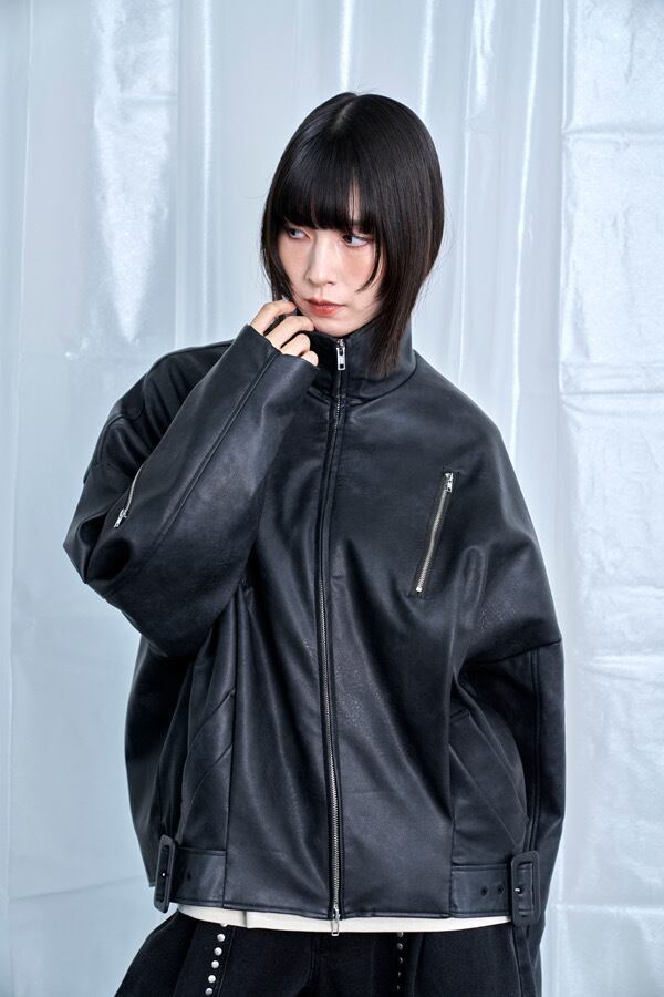 定番のブラックながらも、マットな合皮の質感とビッグシルエットで一線を画すライダース。