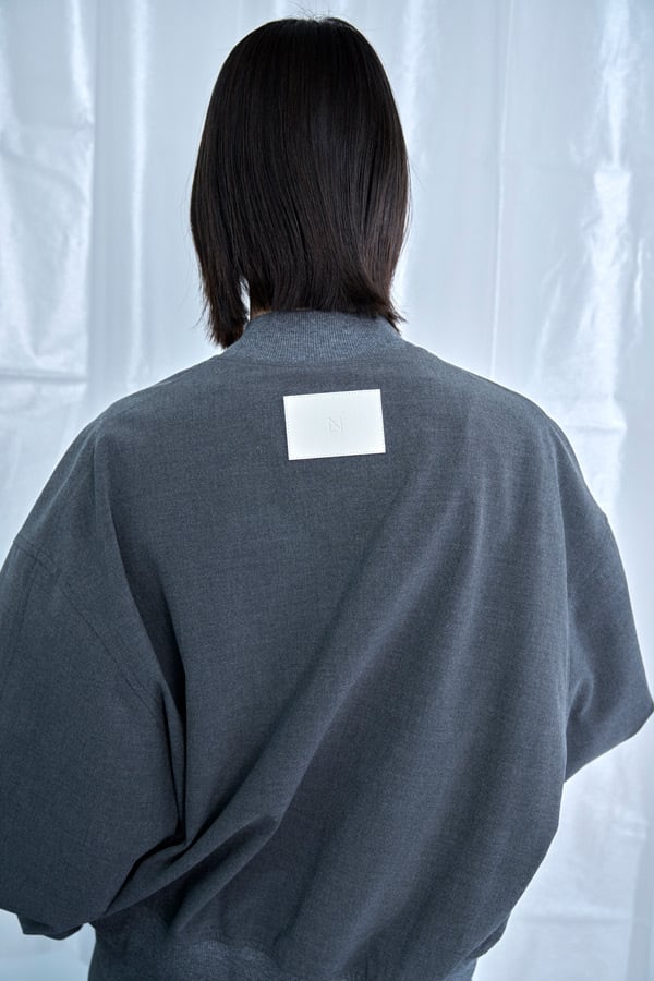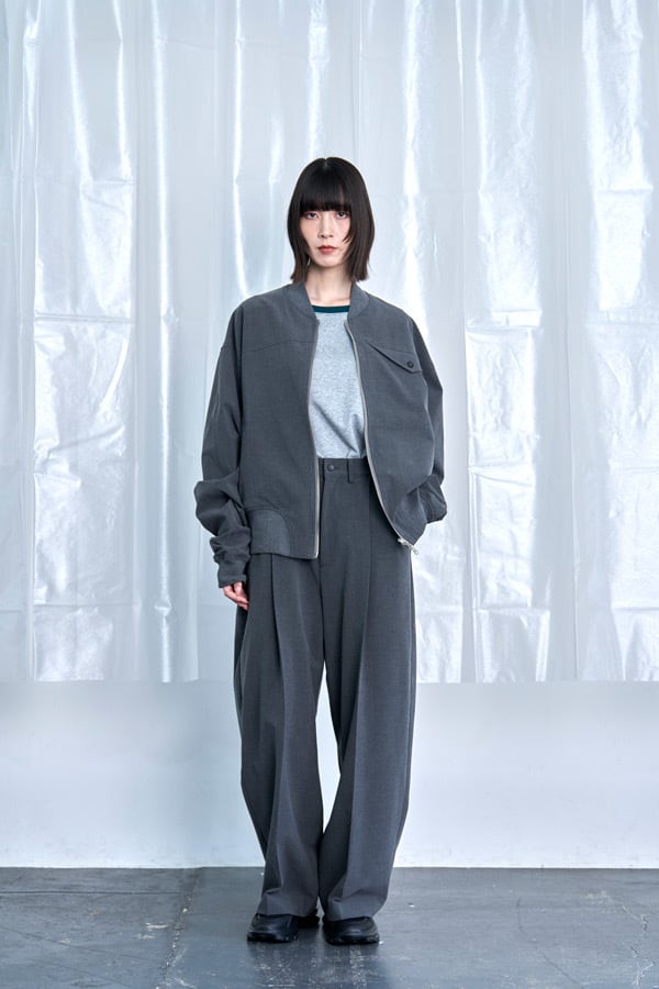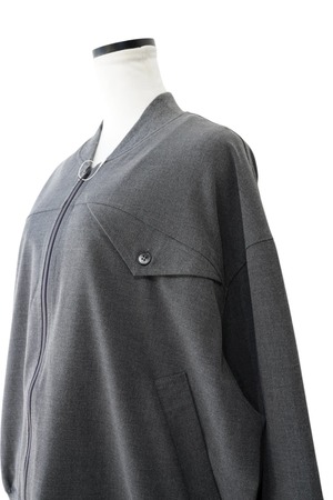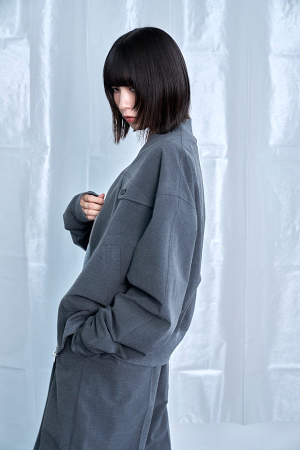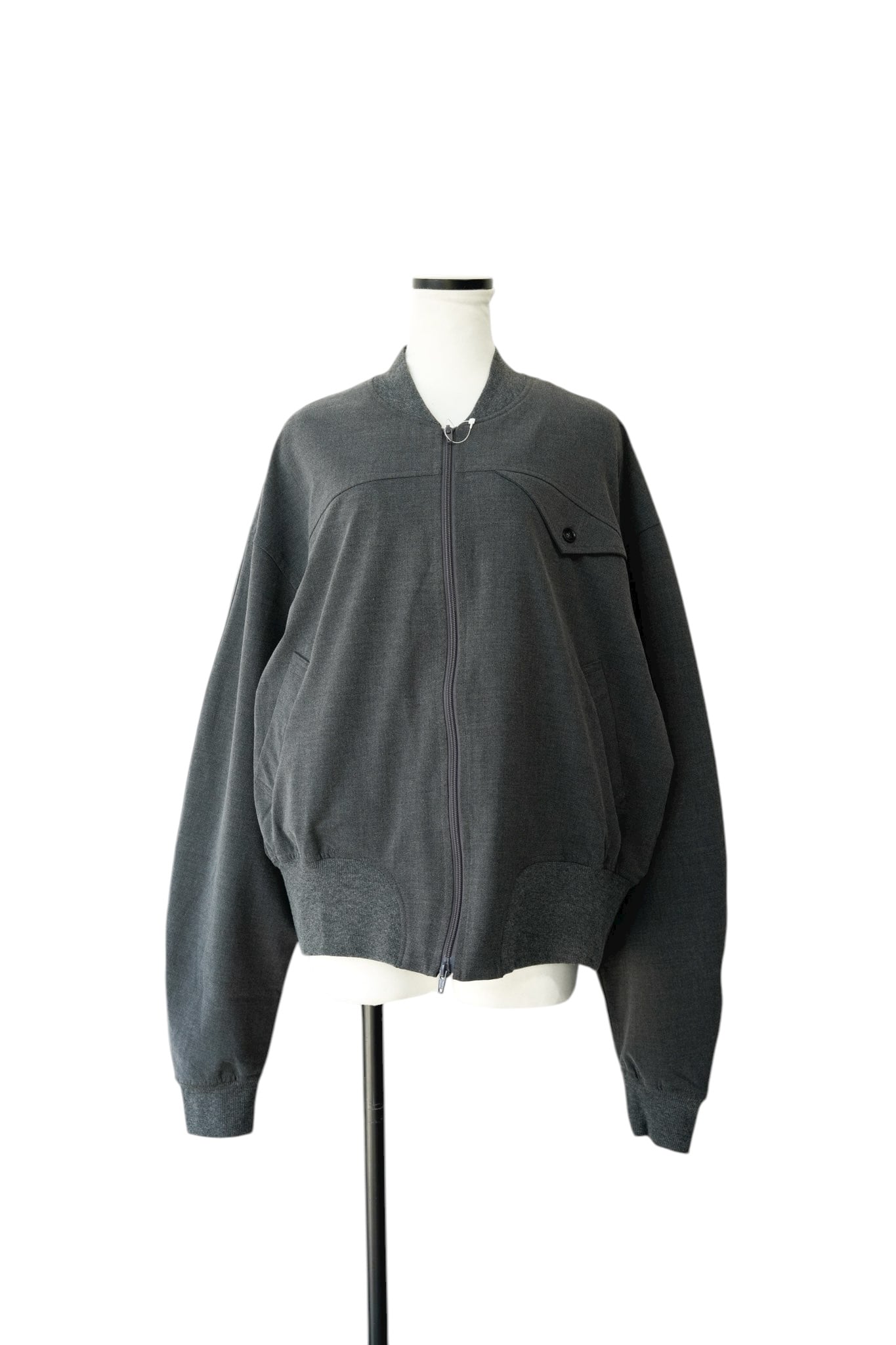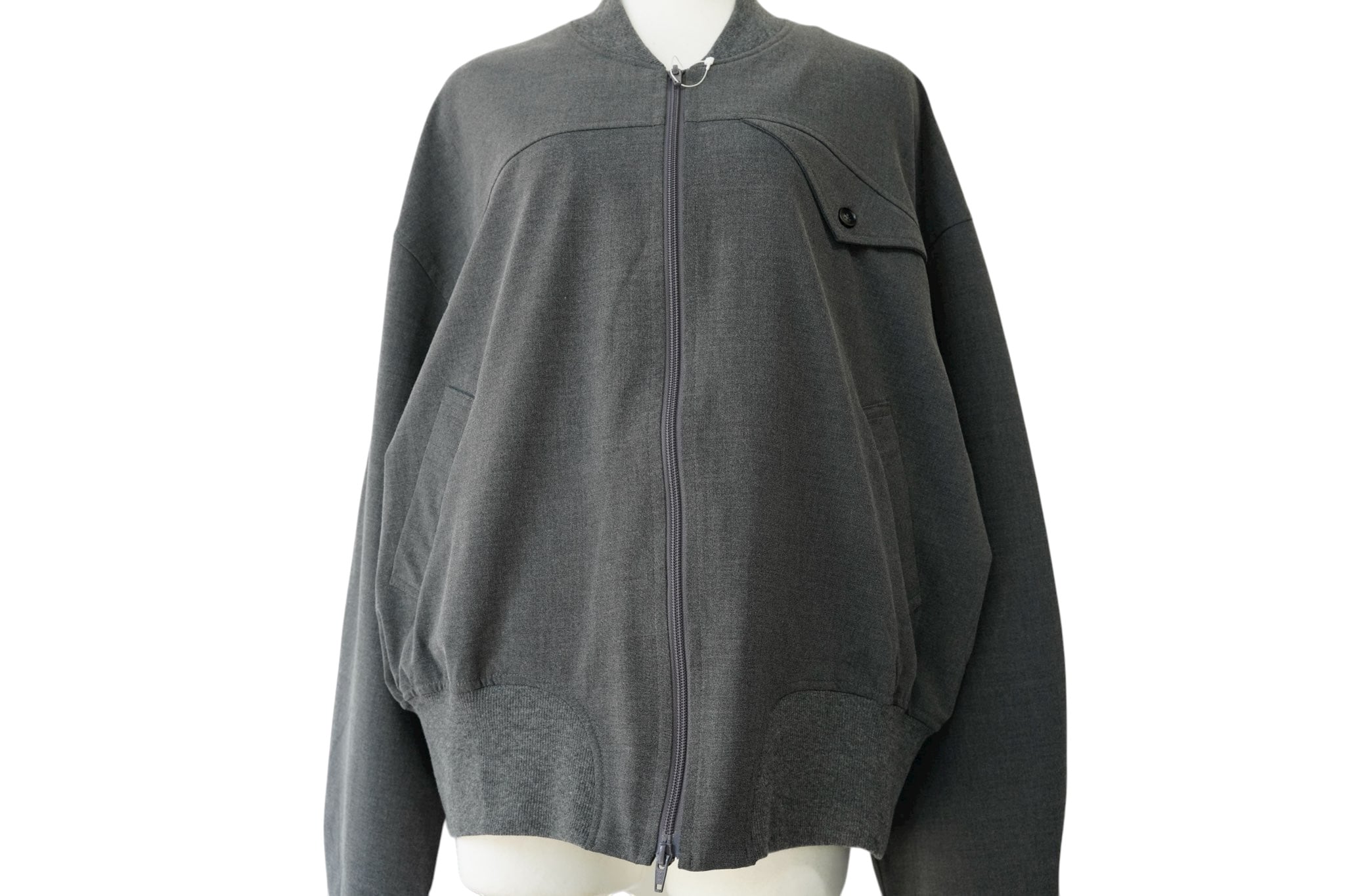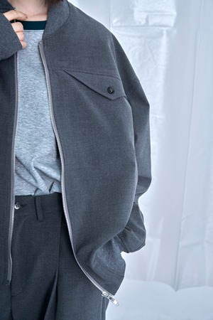 落ち着いたチャコールグレーをベースにした、洗練された佇まいのジップブルゾン。