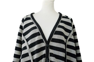 モノトーン配色のボーダーがモードな雰囲気を演出。シックで都会的なコーディネートにマッチ。