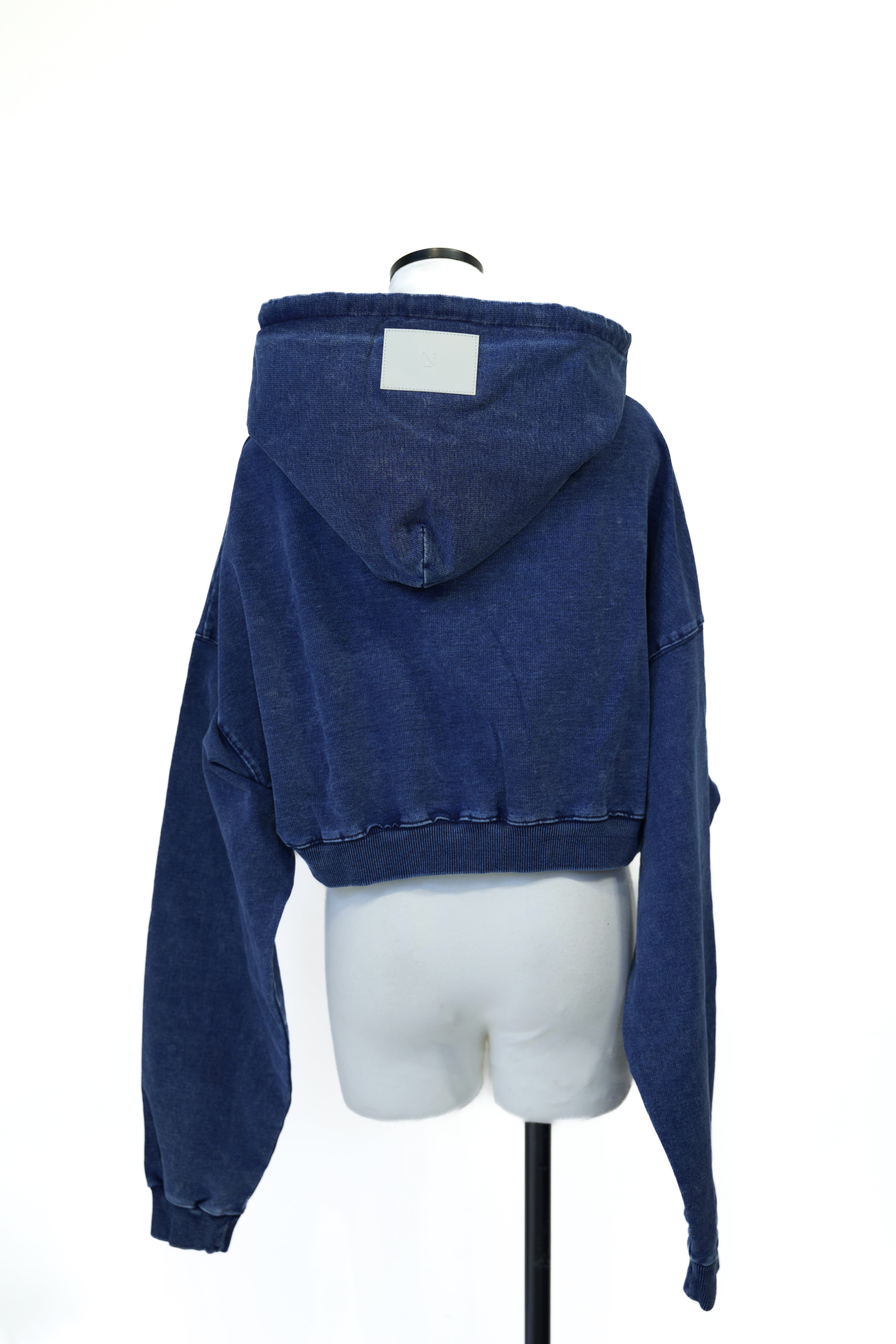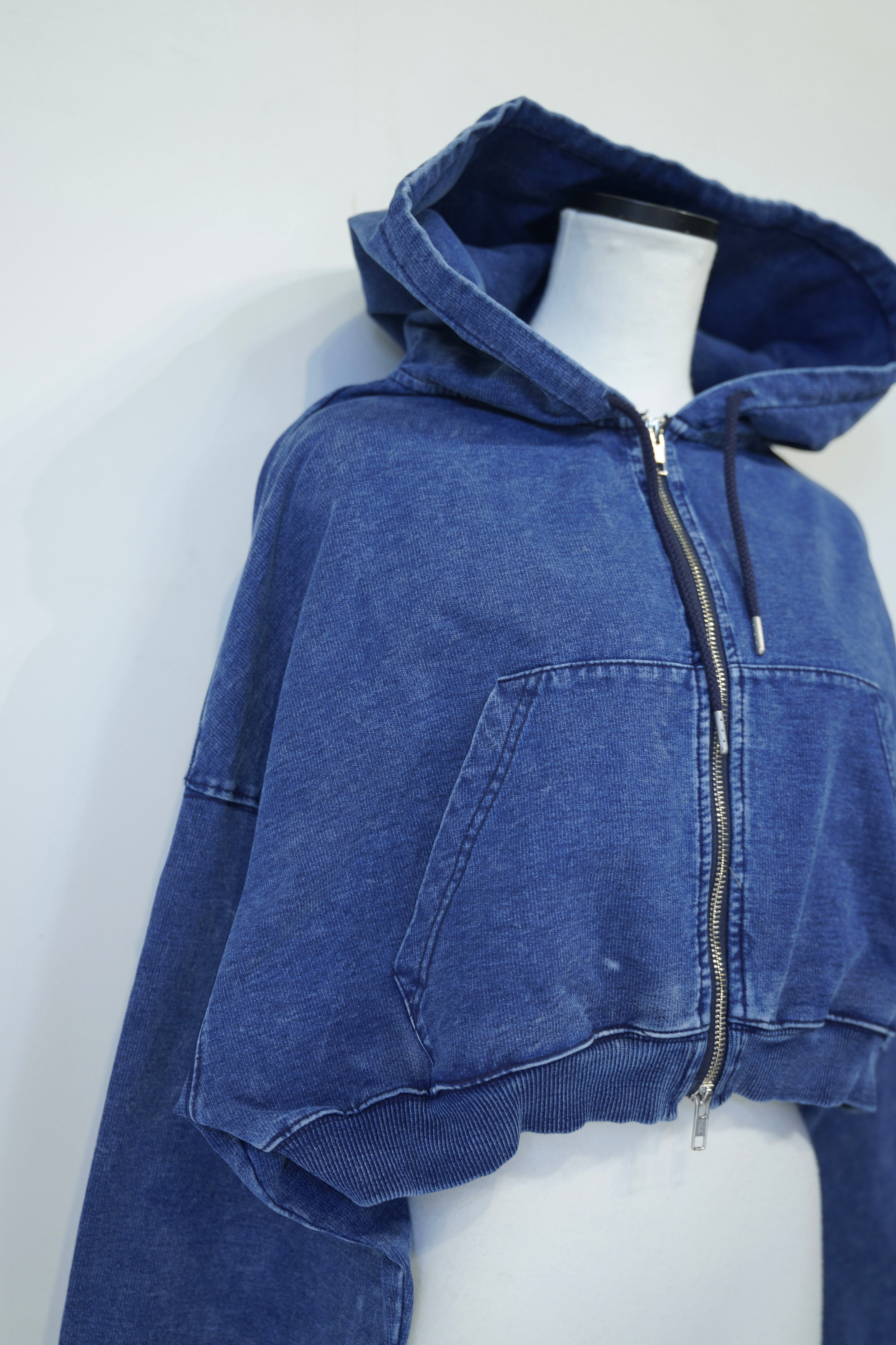 ケミカルウォッシュ風のヴィンテージライクな表情を楽しめるジップアップフーディ。