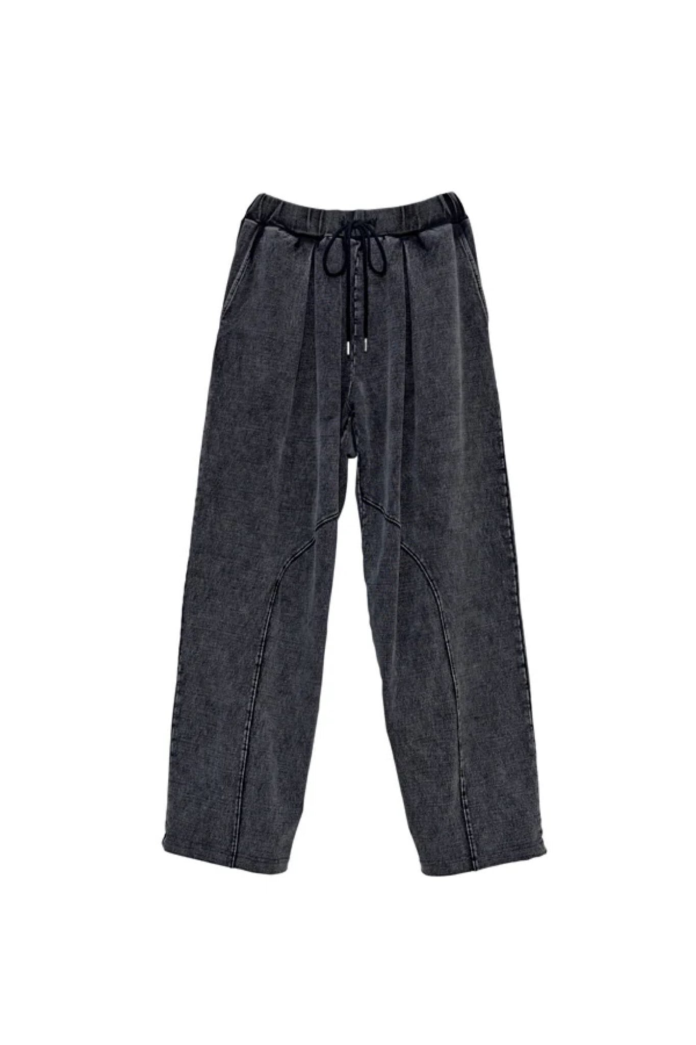 ケミカルウォッシュ風の加工で、デニムのような表情を持たせたスウェットパンツ。