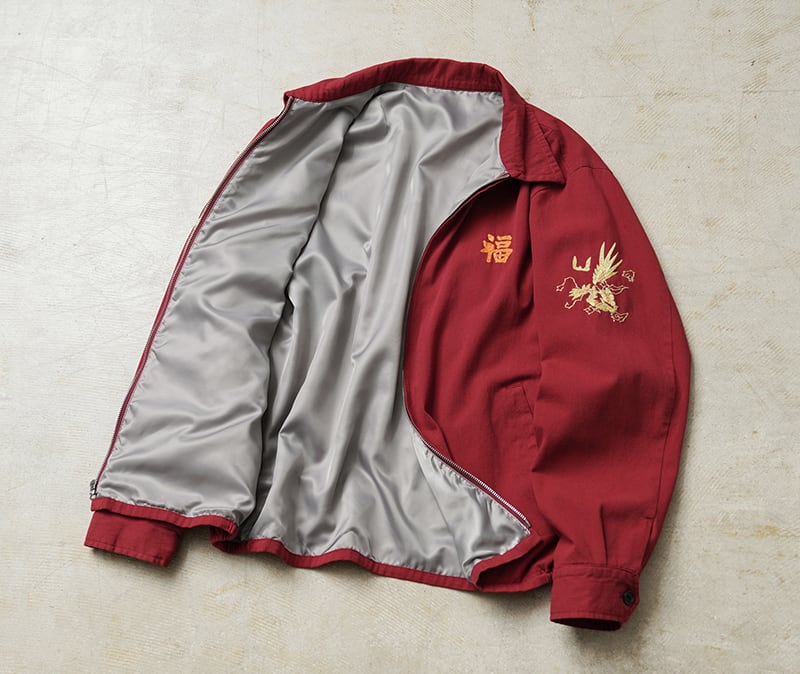 今回、ヴィンテージのベトジャンに施された刺繍を再現し、背面には「ベトナムの地図」、そしてフロントや両腕にはベトナムの吉祥柄である「虎」や「龍」、さらに「福」の文字がふっくらとした太めの糸で描かれています。