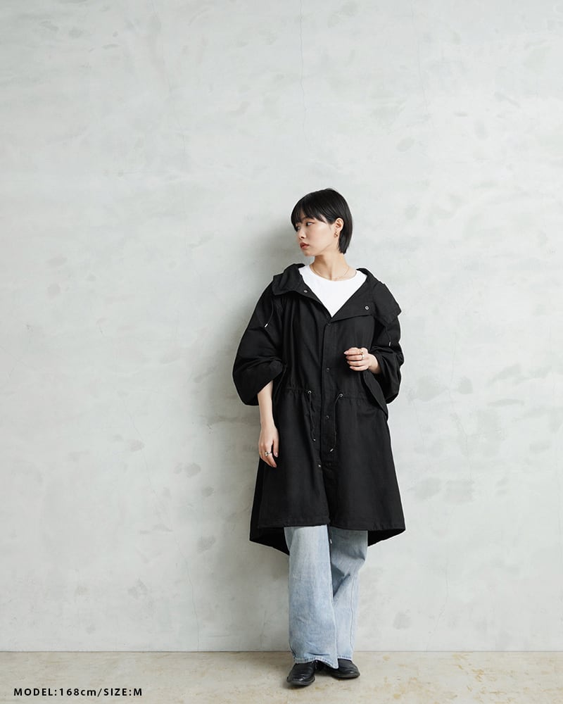 フード、ウエスト、裾はドローコードでシルエットに変化を出した着こなしができます。