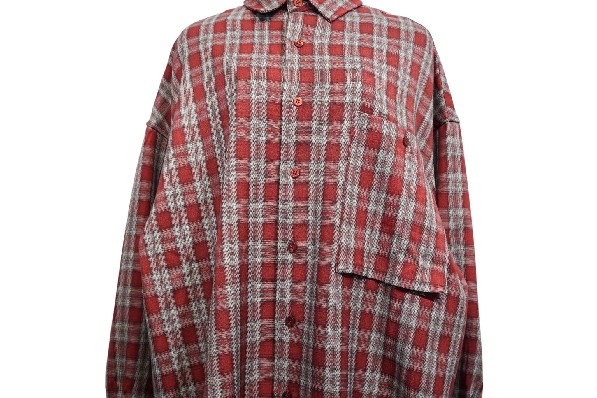 柔らかなポリエステル×レーヨン素材を使用しており、チェック柄の醸し出すヴィンテージ感と滑らかな着心地が好バランス。