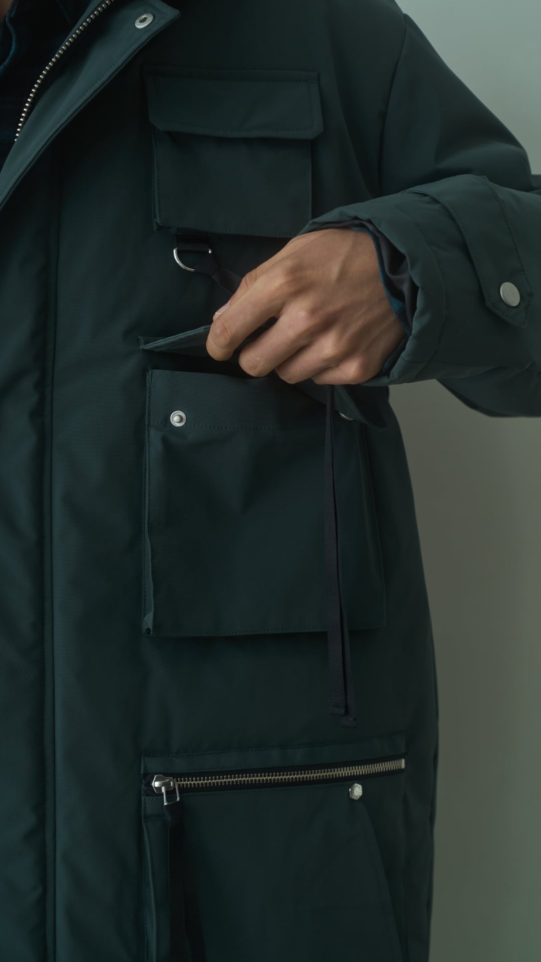 スタンドネックと比翼仕様のフロントが冷たい風をシャットアウトし、冬のメインアウターとして頼りになる一着です。
