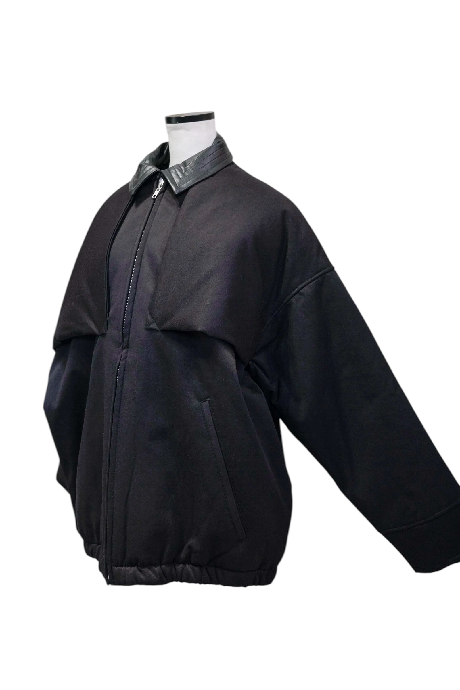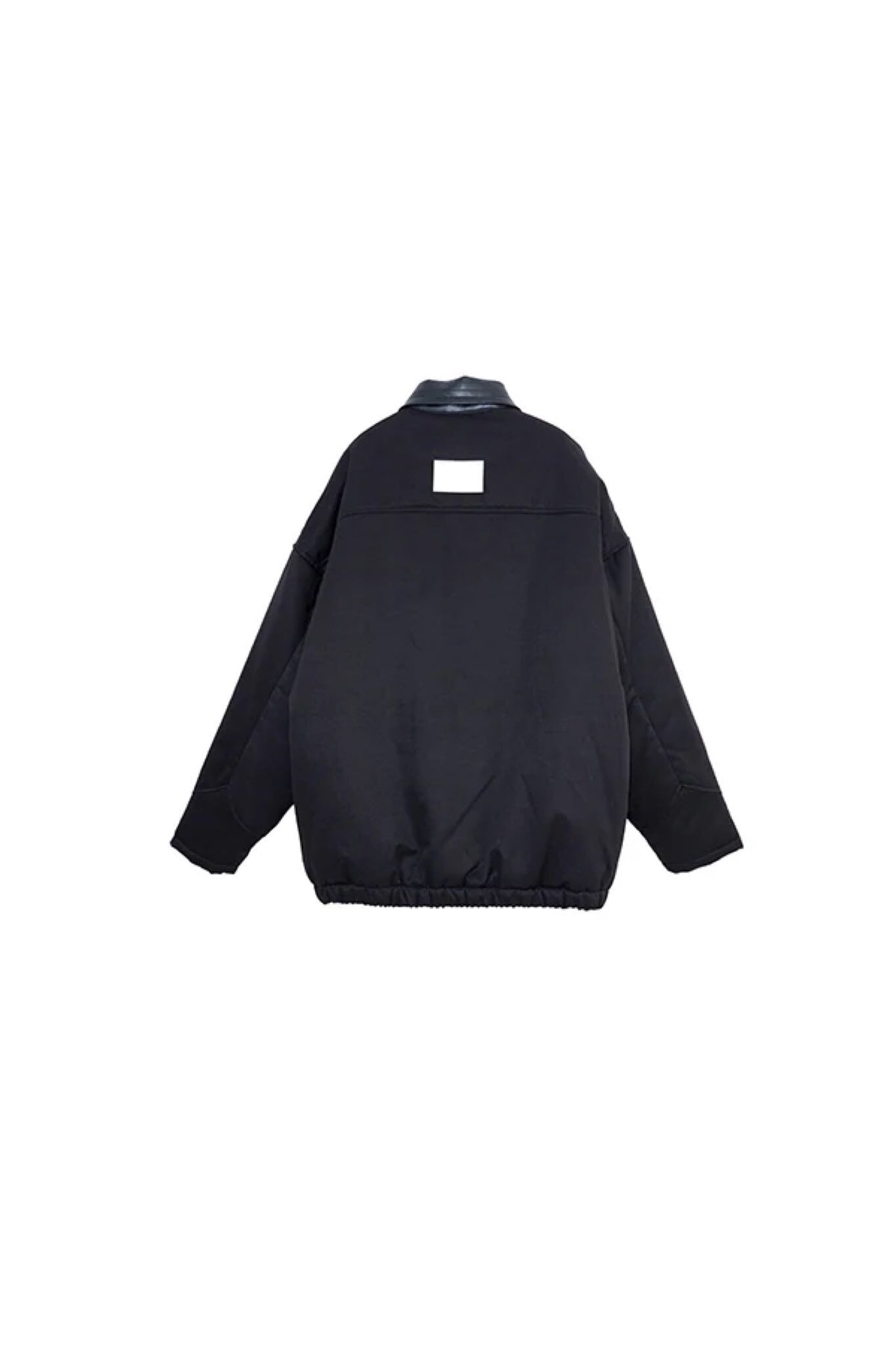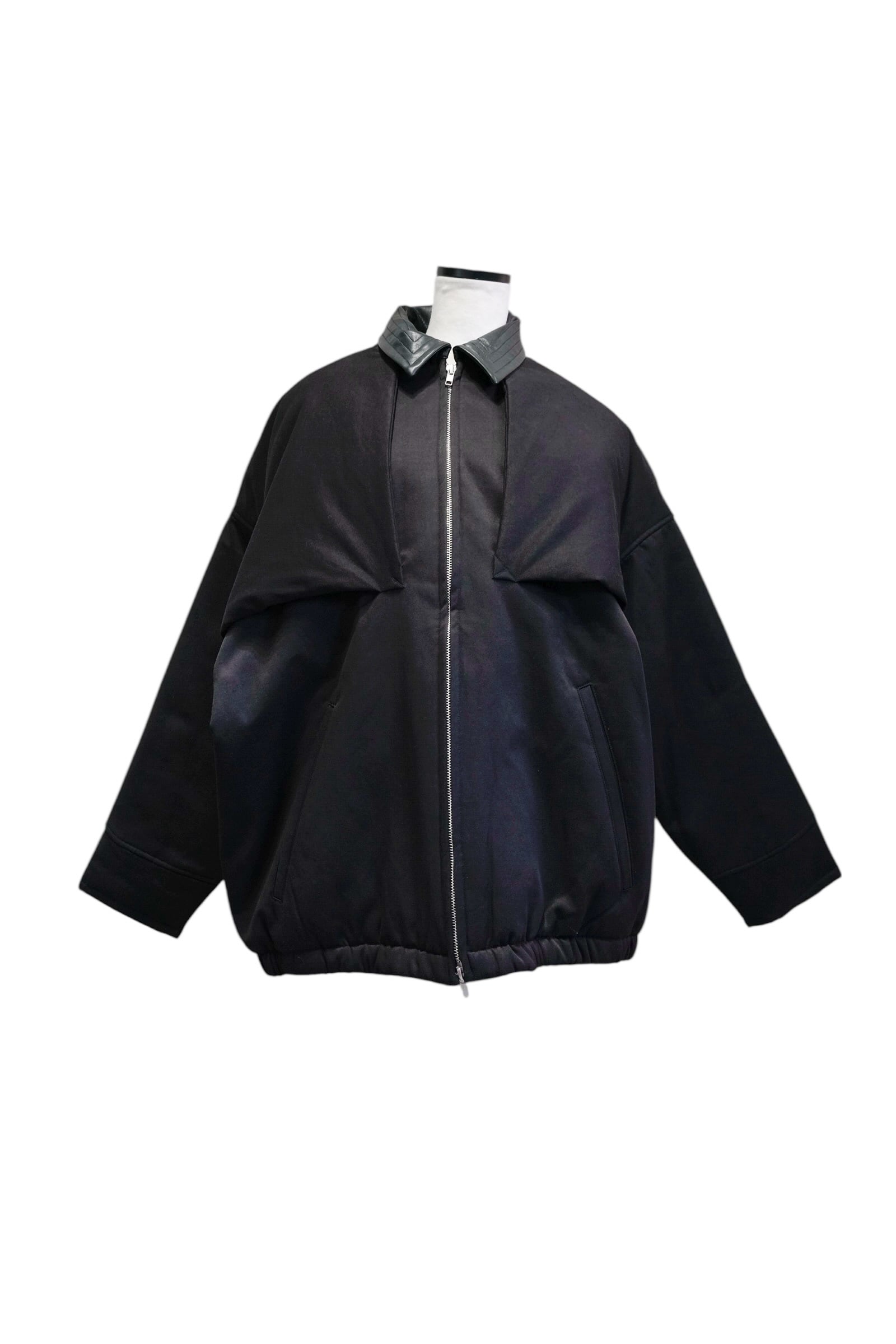 異素材の襟もブラックで統一することで、よりソリッドで洗練されたムードに。