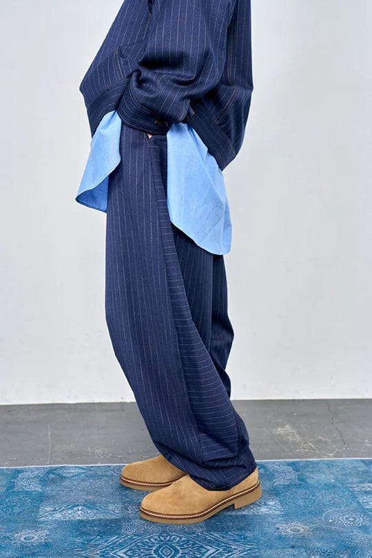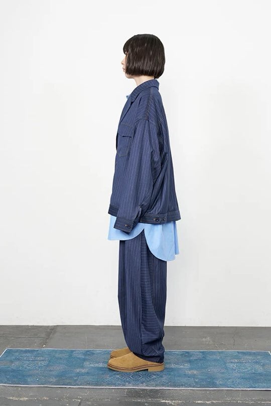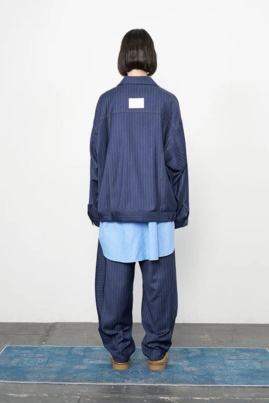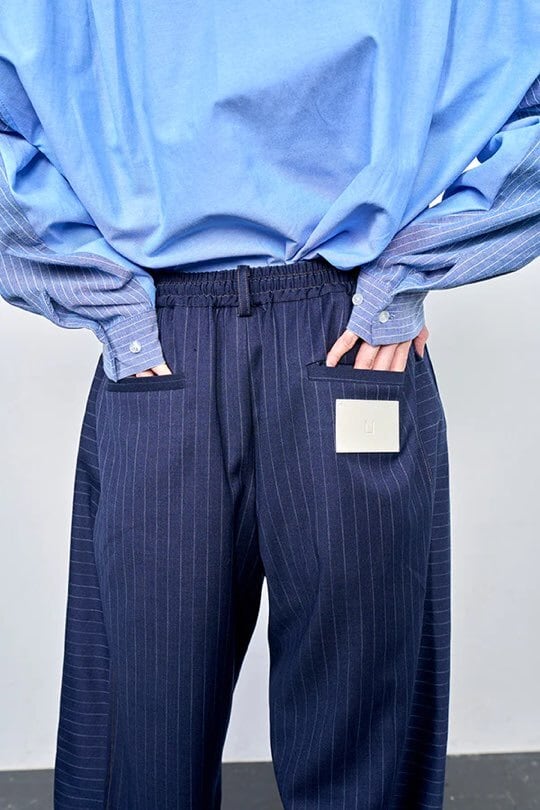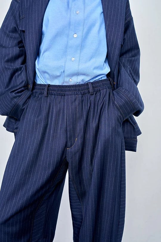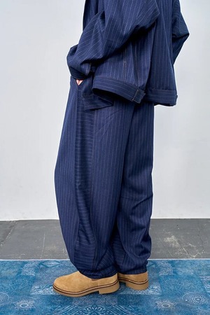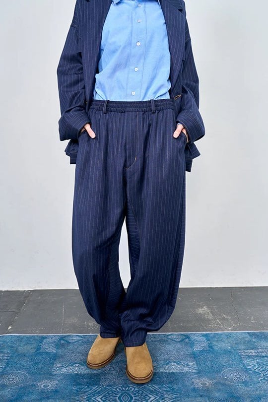 デニムライク イージーバレル パンツ (UNISEX) color:Navy Stripe(navy)
