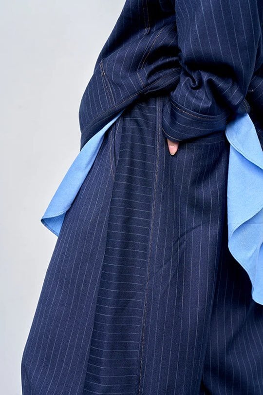 ※セットアップ対応:ピンストライプデニムライクダブルジャケット