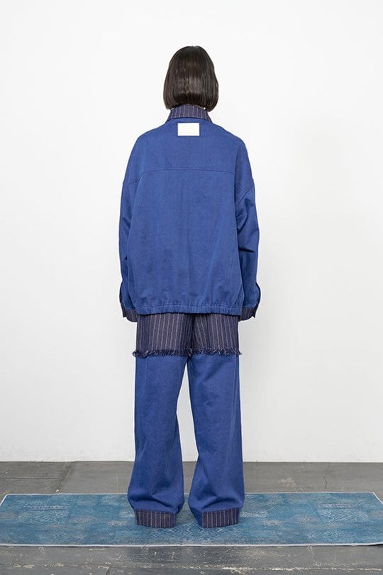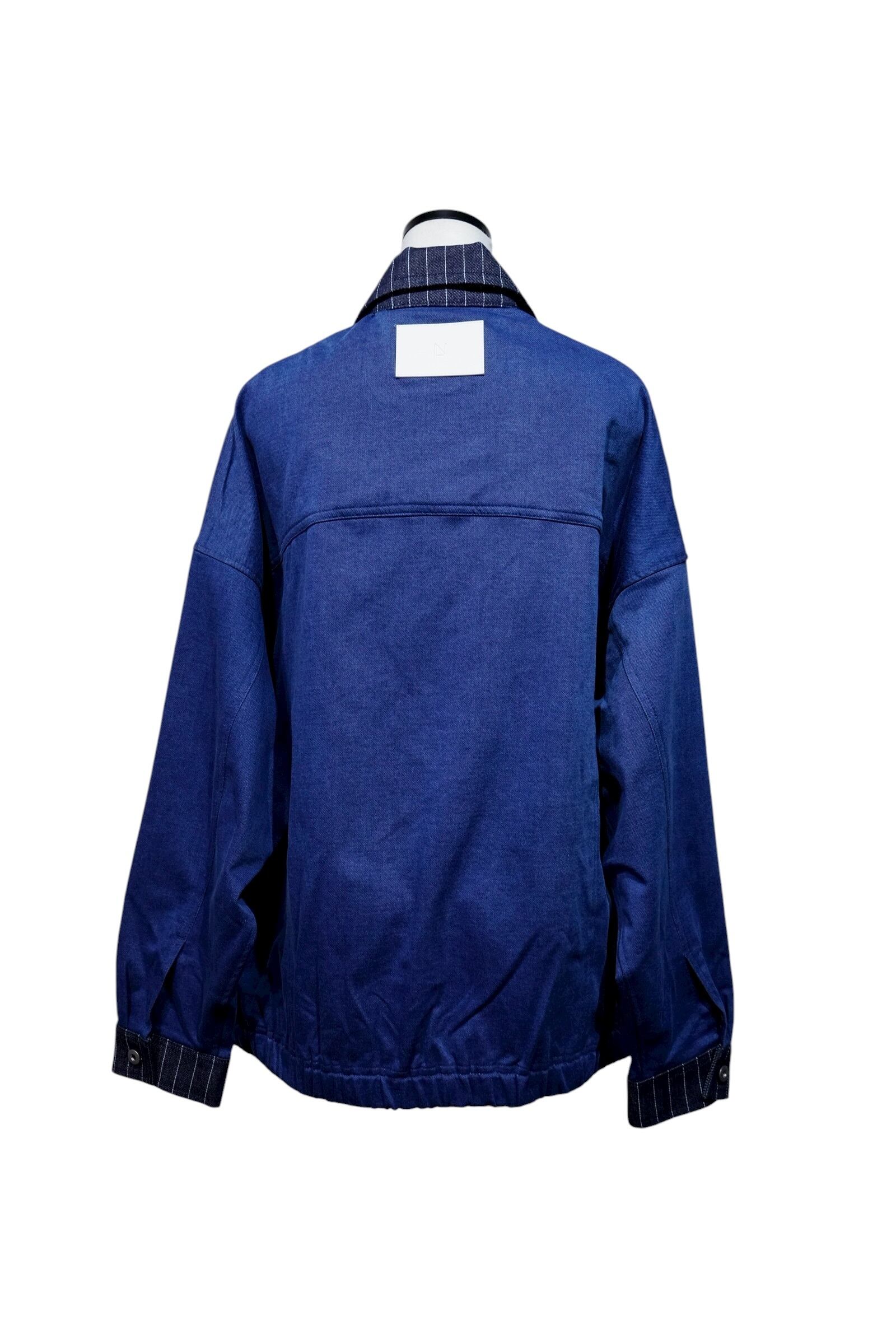 • 【Nora Lily】Denim Combo Track Line Loose Blouson-/Grey x Indigo