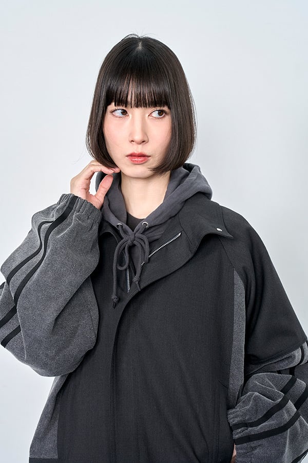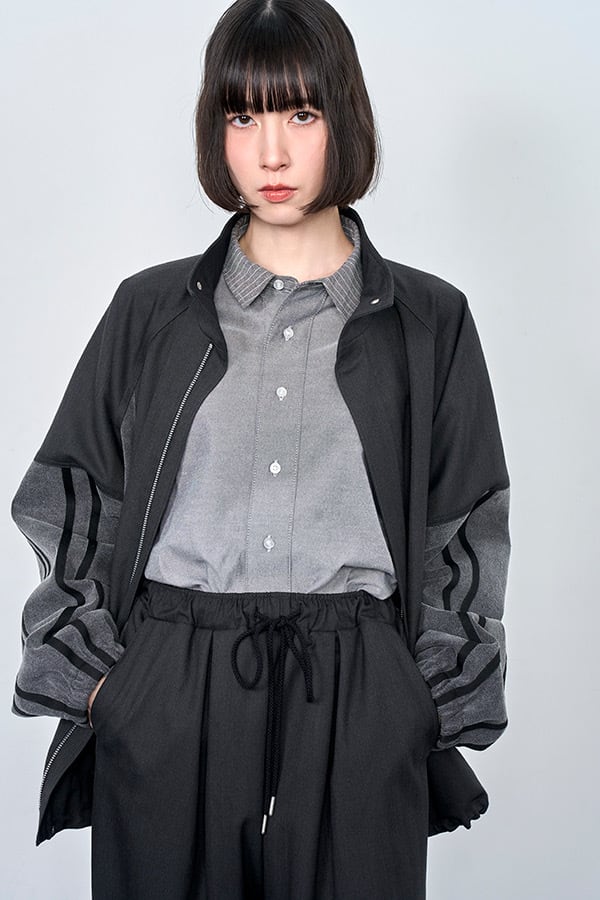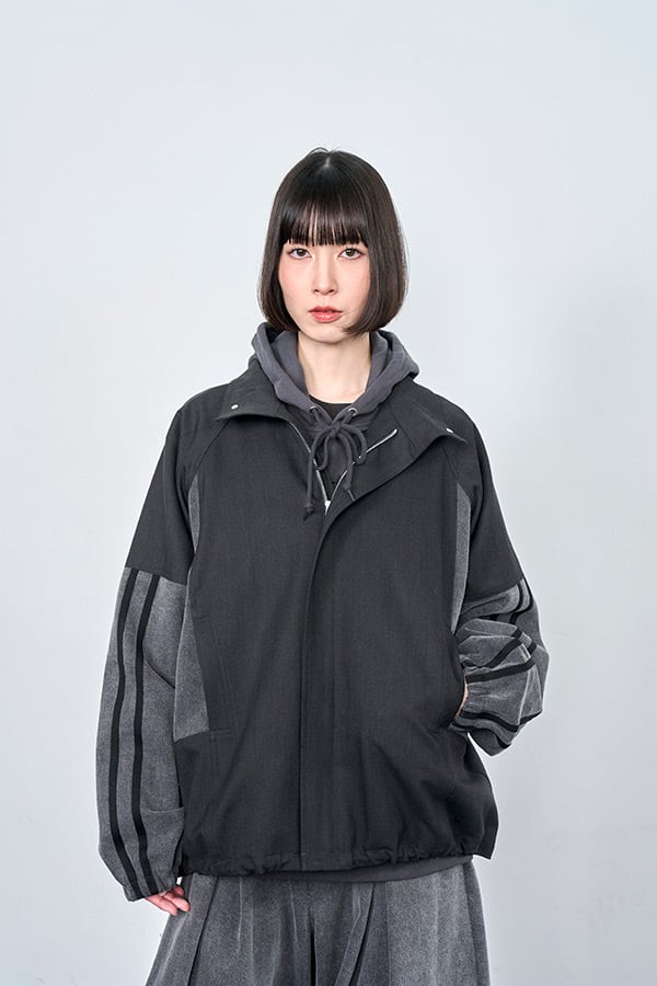 【Nora Lily】Denim Combo Track Line Loose Blouson-/Grey x Indigo