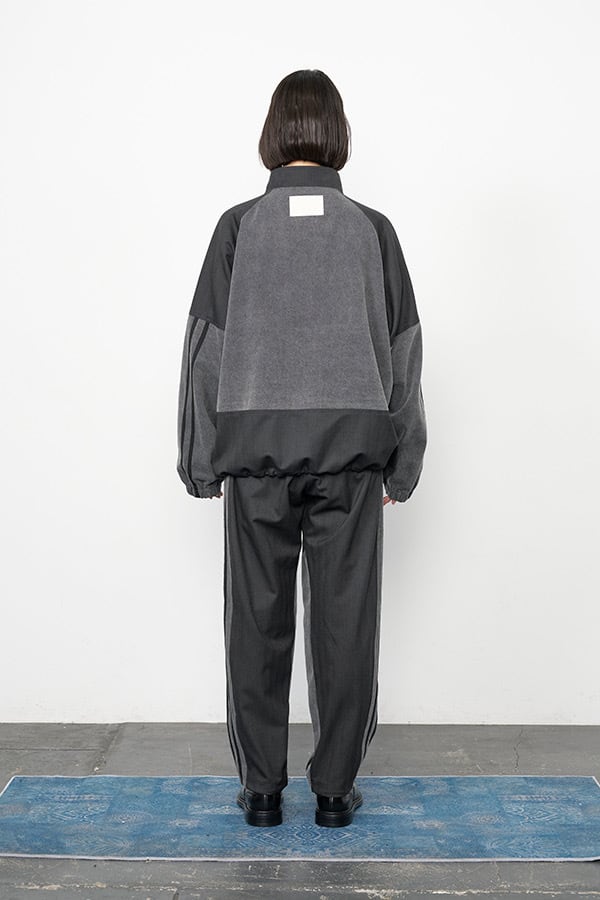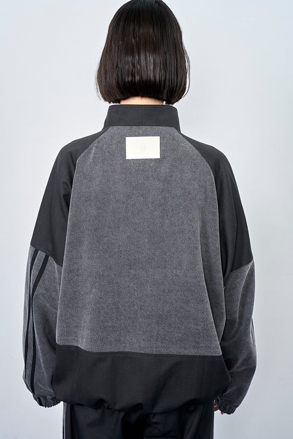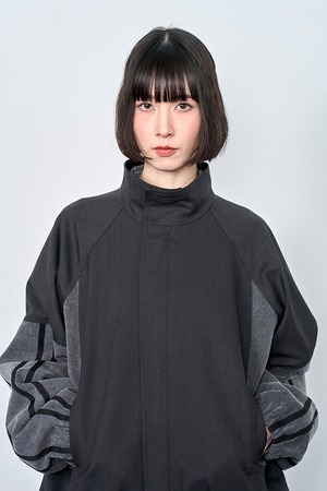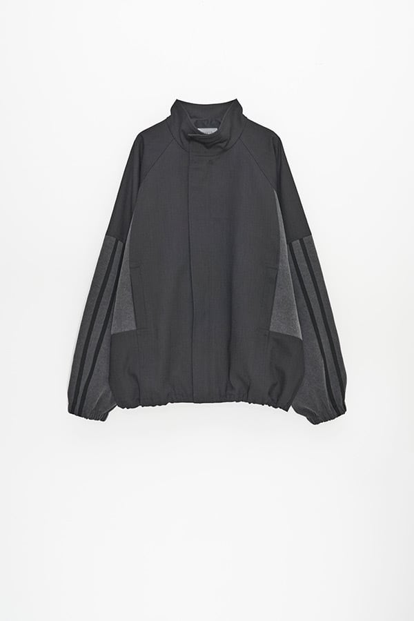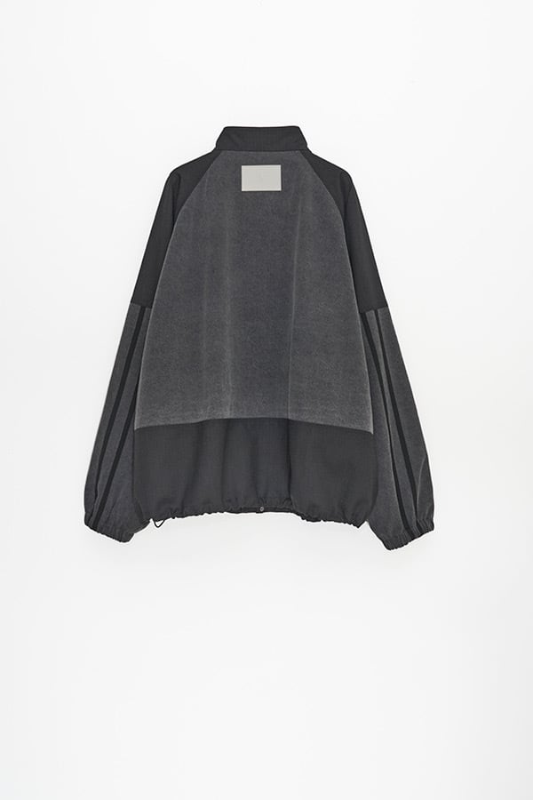 異素材を組み合わせたデニムコンビ仕様のトラックラインブルゾン。