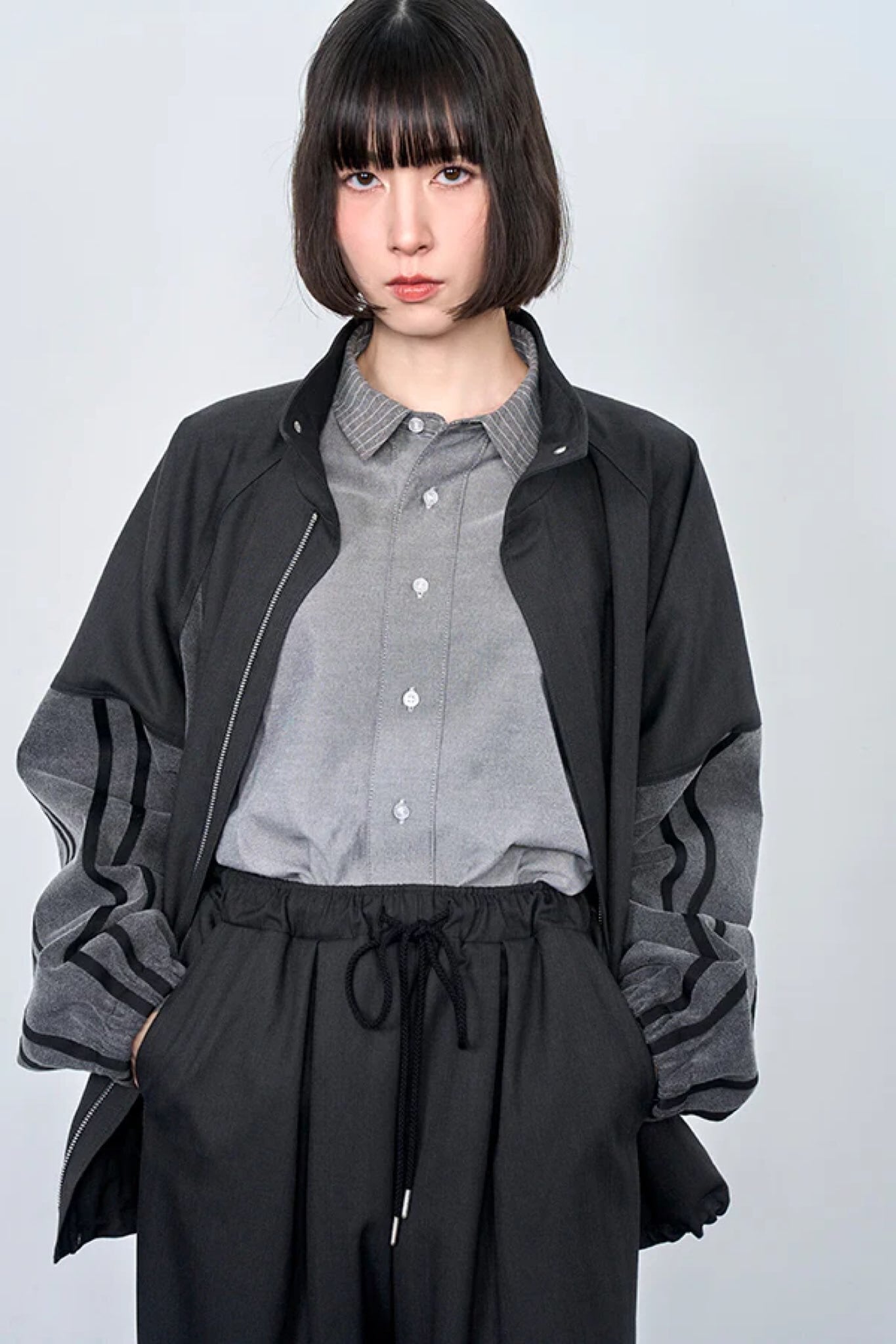 でまとめた、モード感の強いシャープなカラー。