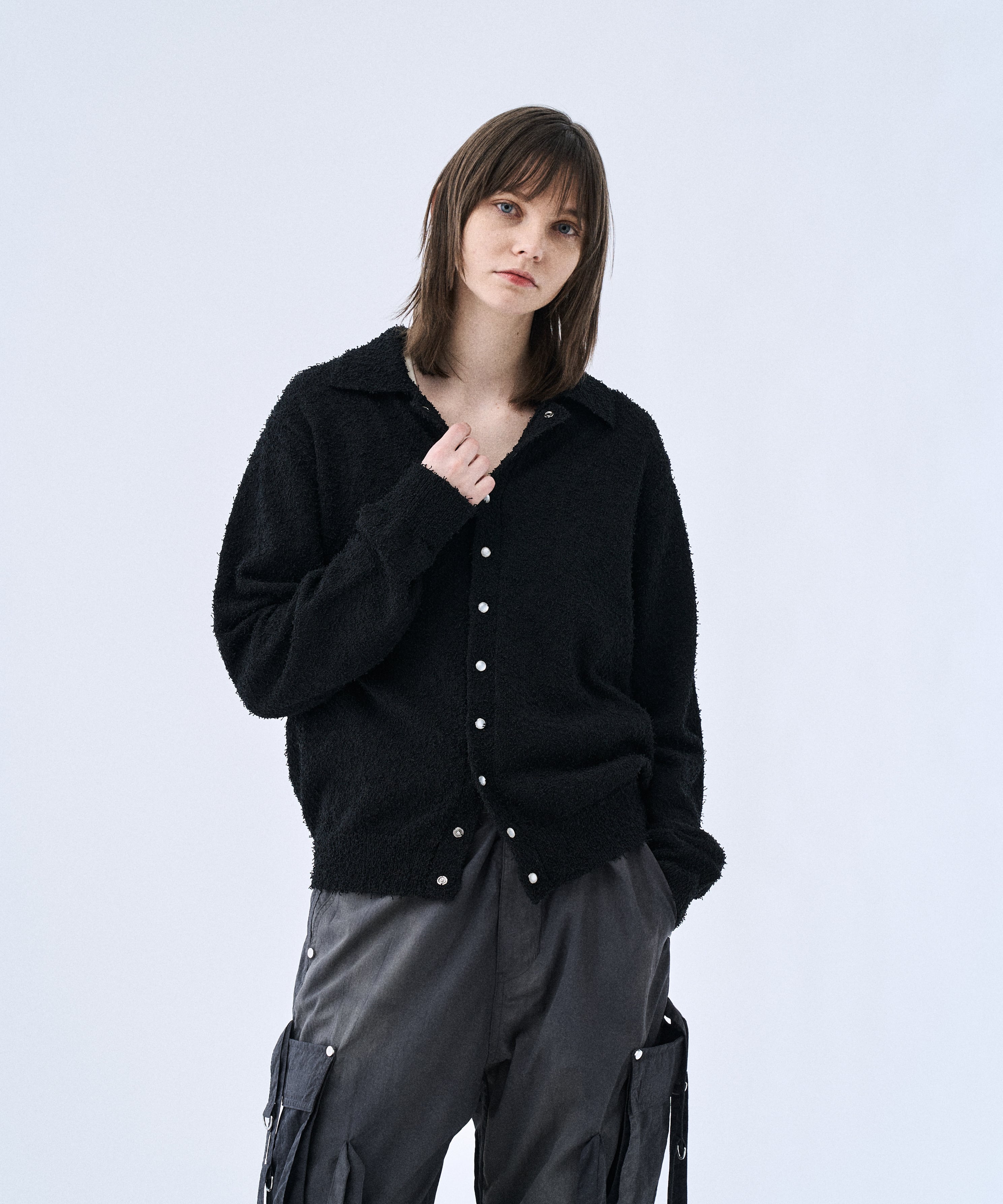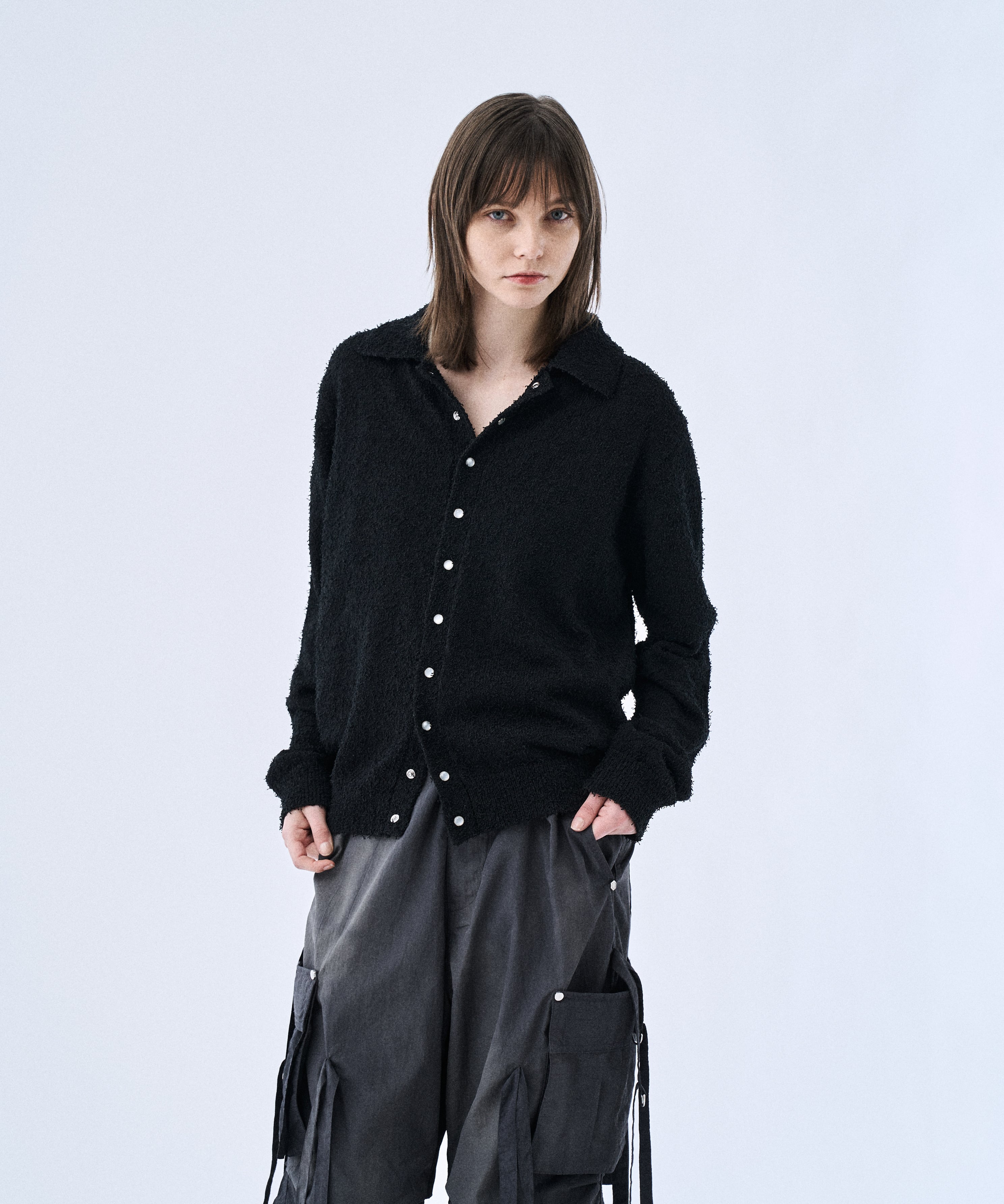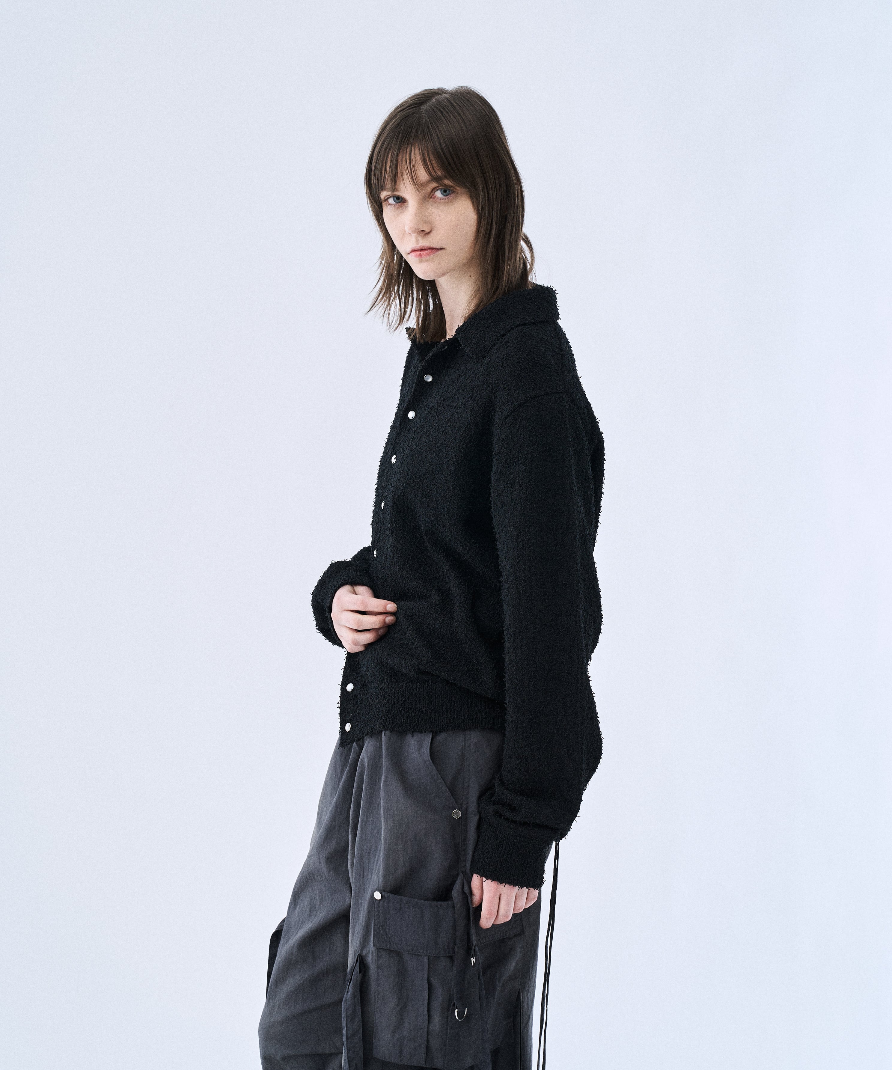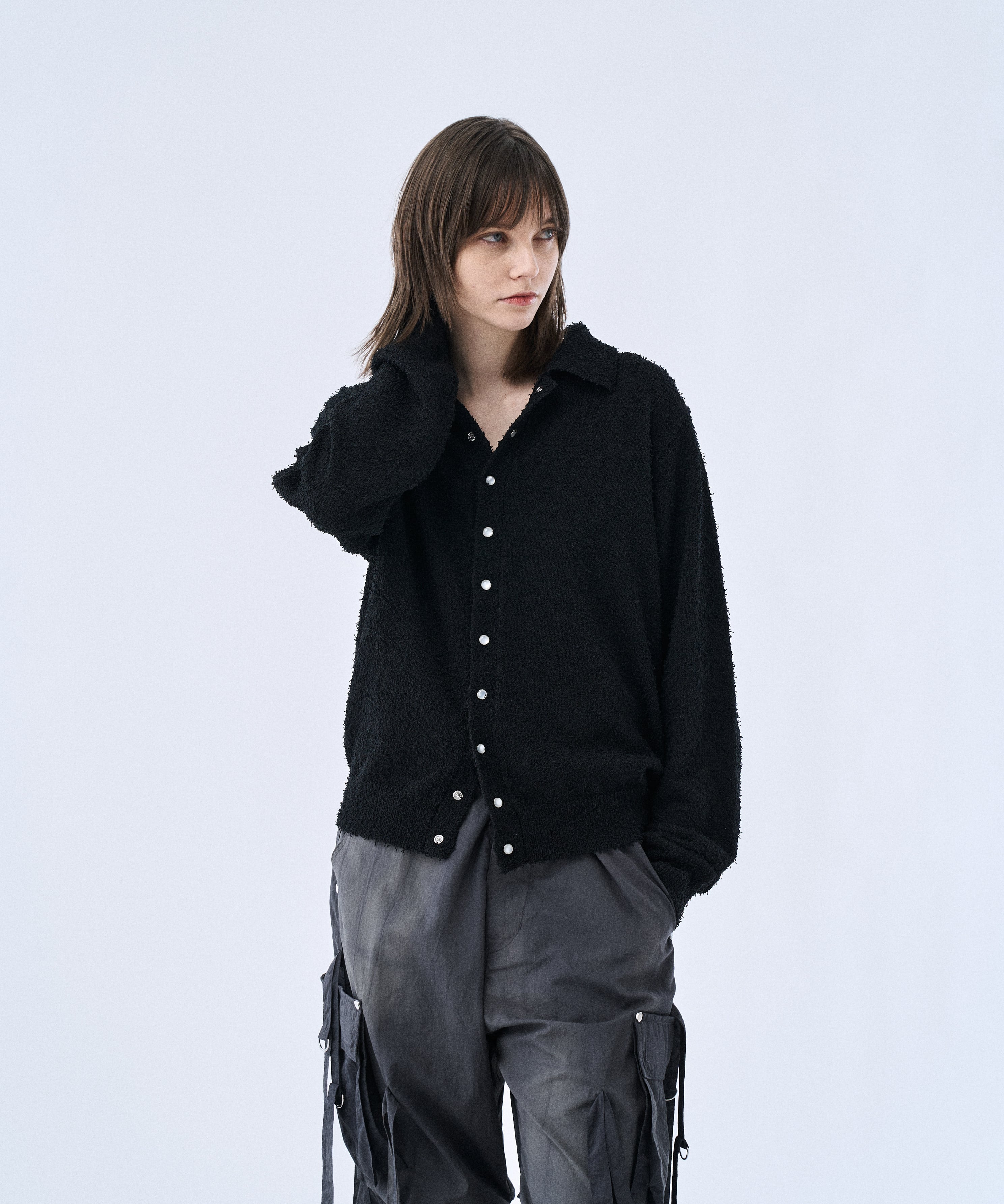 起毛感のあるブークレ調ニットが特徴の「Multi snap knit shirts」。
