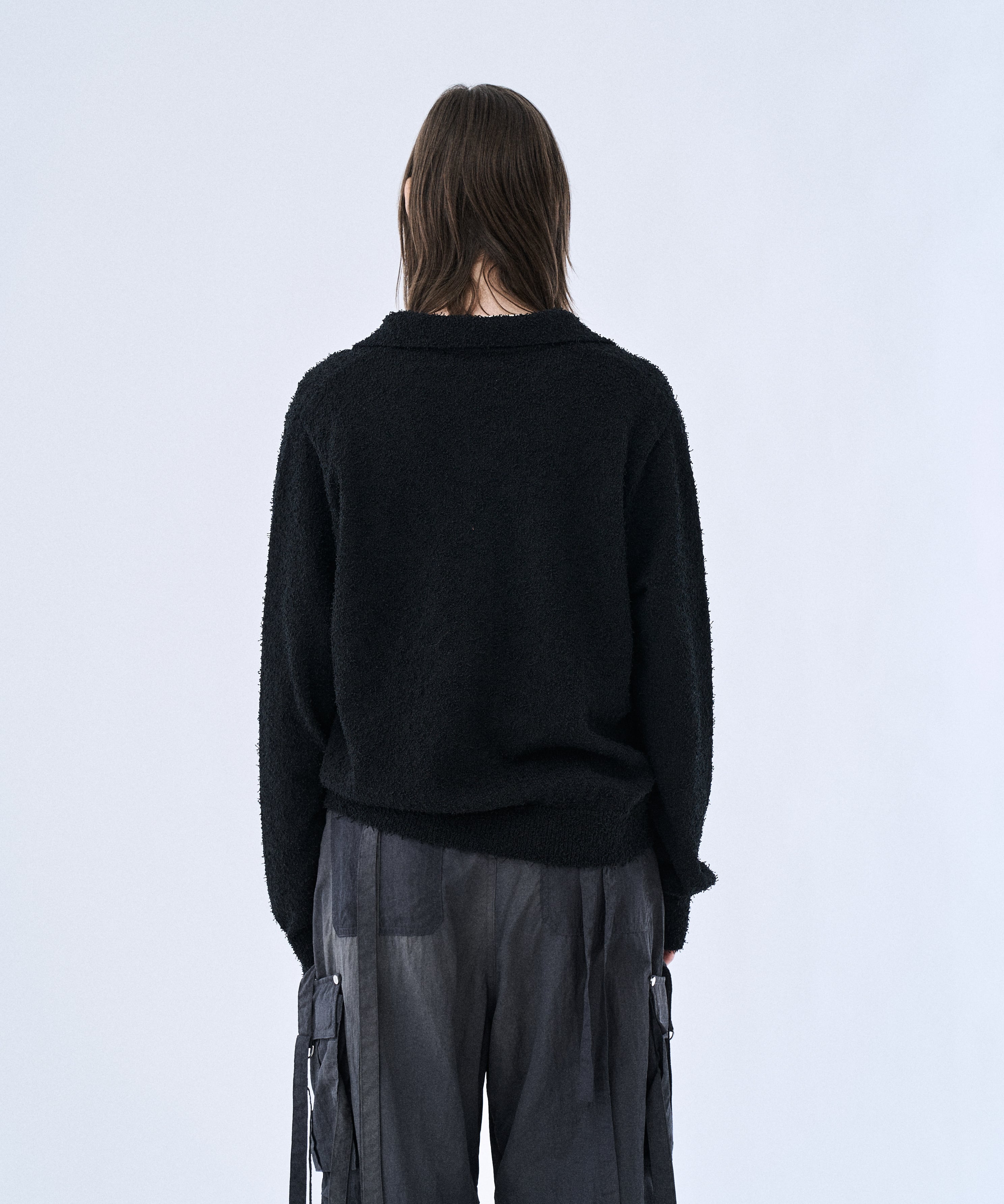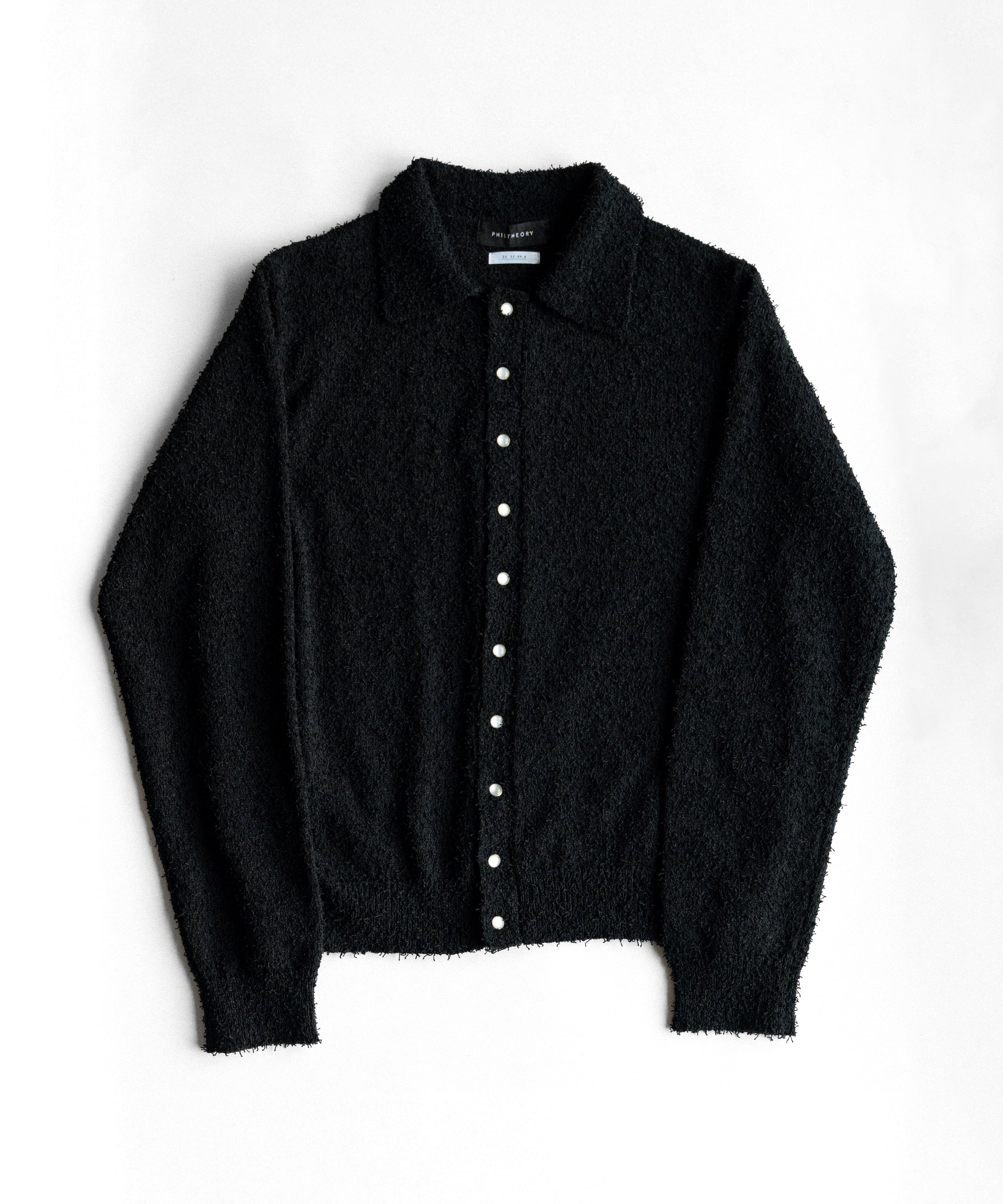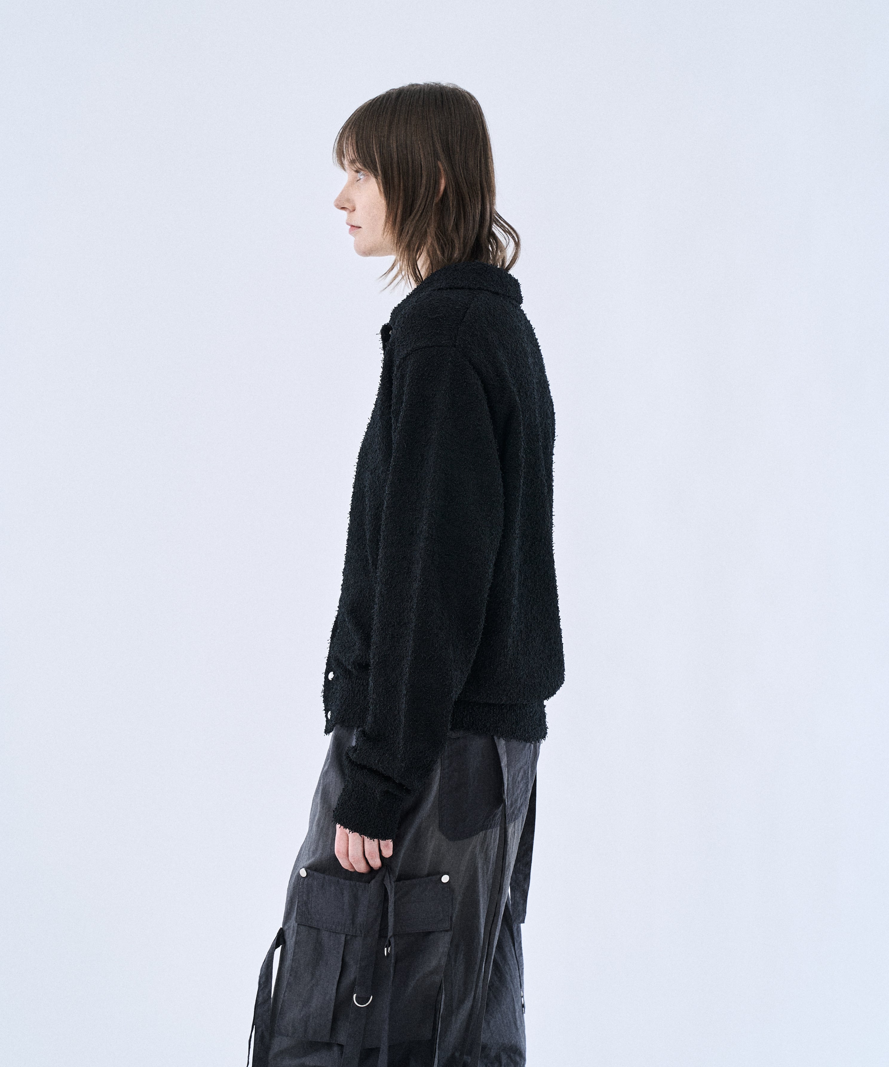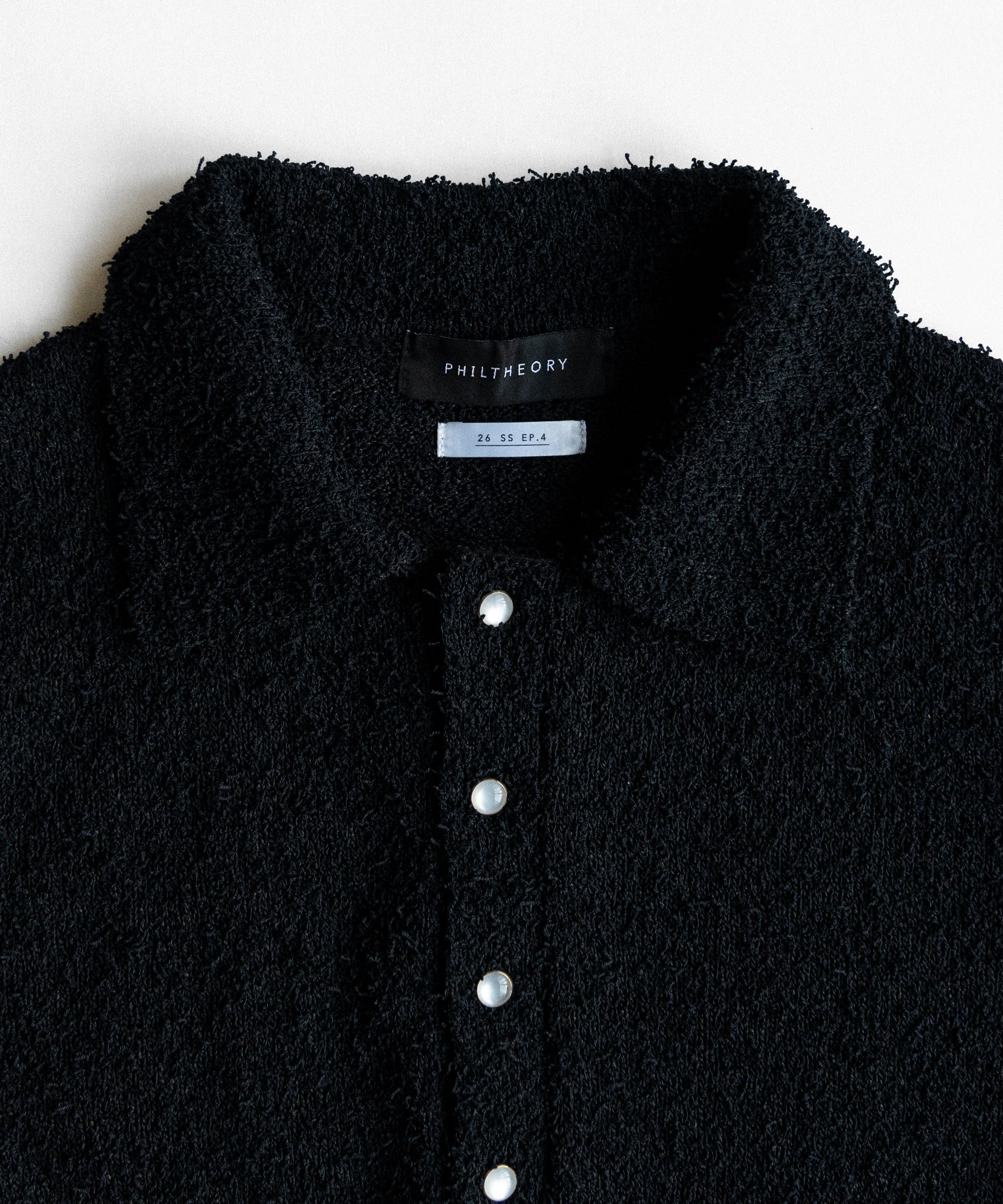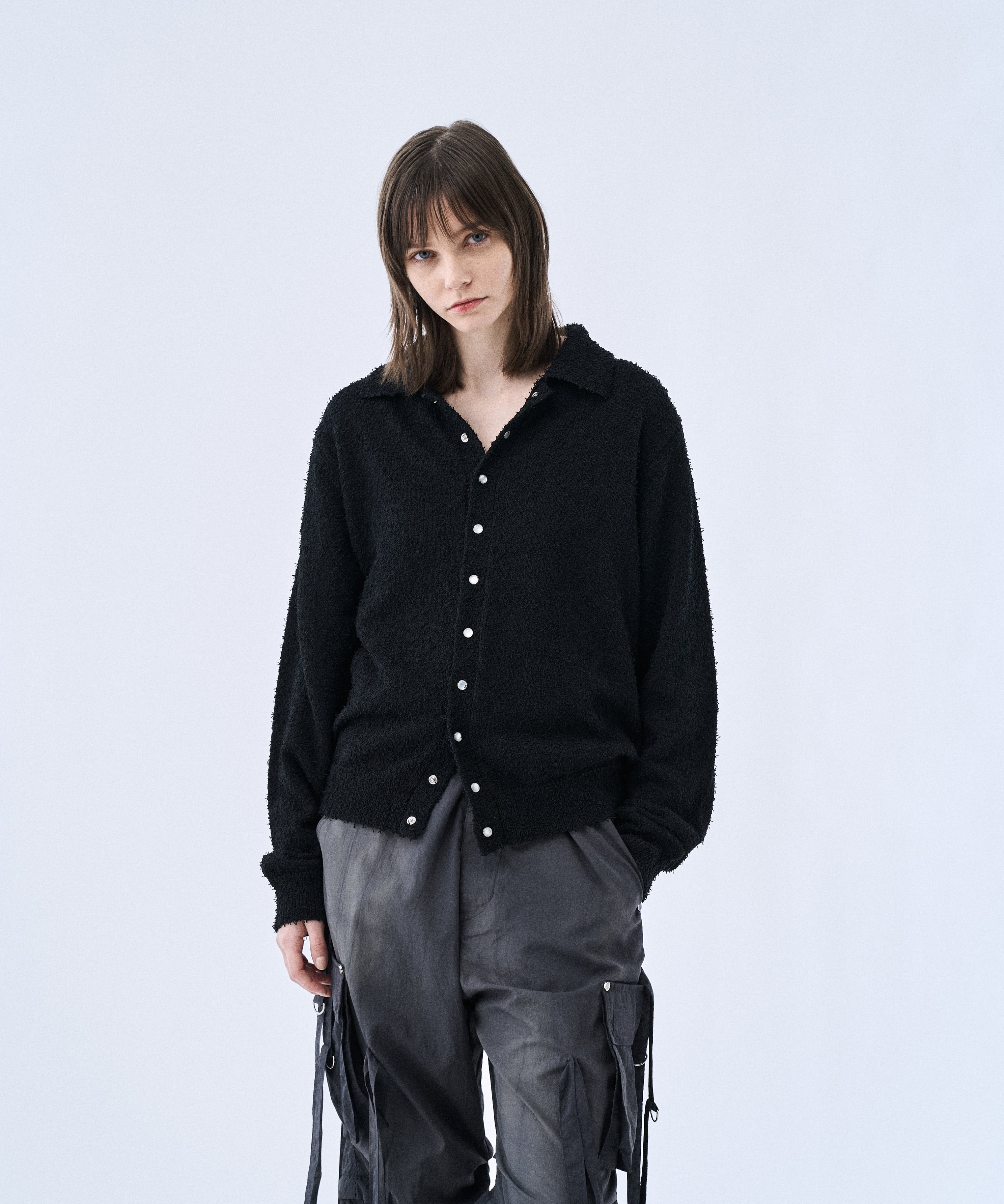 起毛感のあるブークレ調ニットが特徴の「Multi snap knit shirts」。
