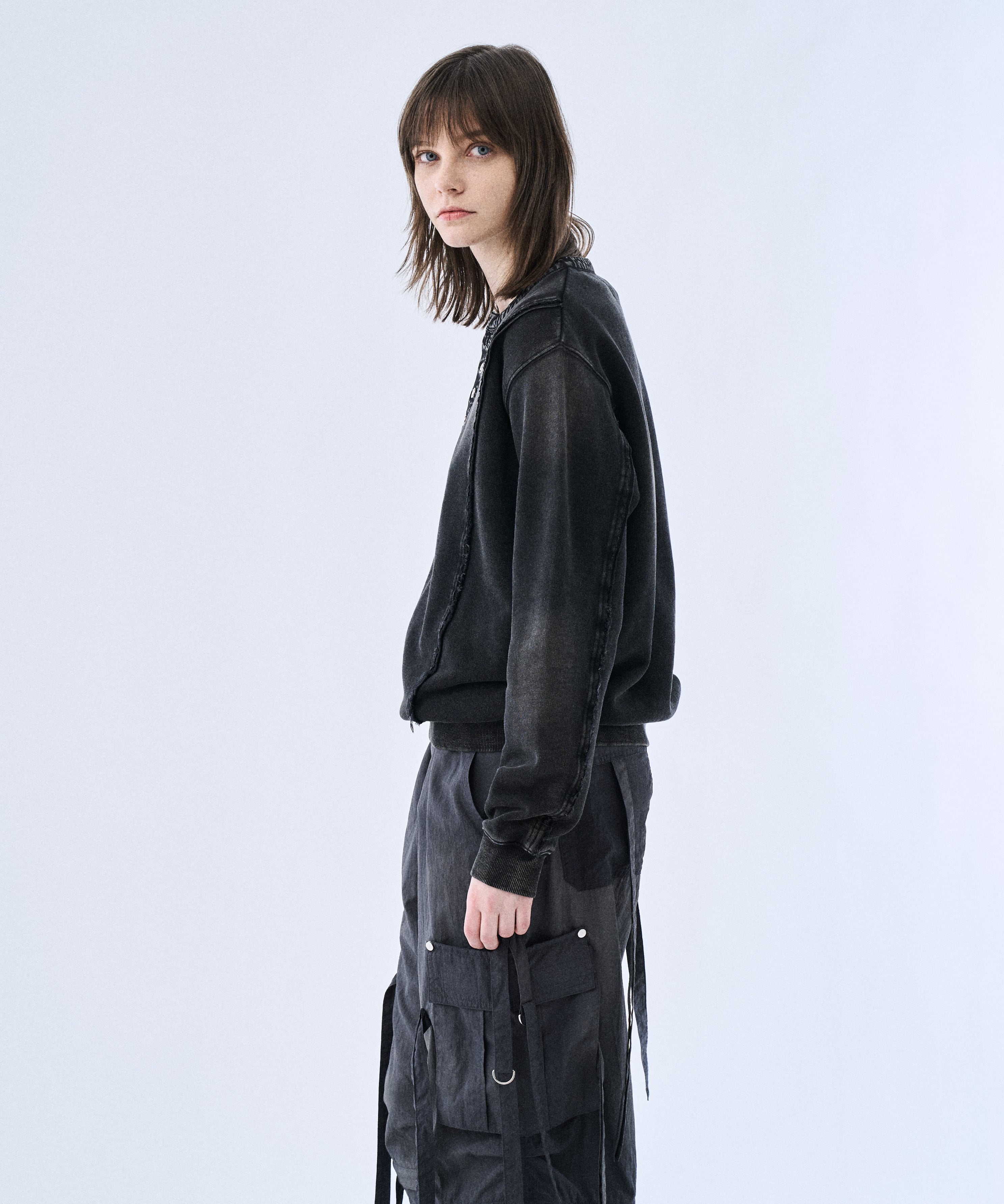 加工感(色ムラ・アタリ)はデザイン特性です。個体差があります。濃色は色移りの可能性があるため淡色アイテムとの組み合わせや保管時はご注意ください。お手入れは洗濯表示に従ってください。