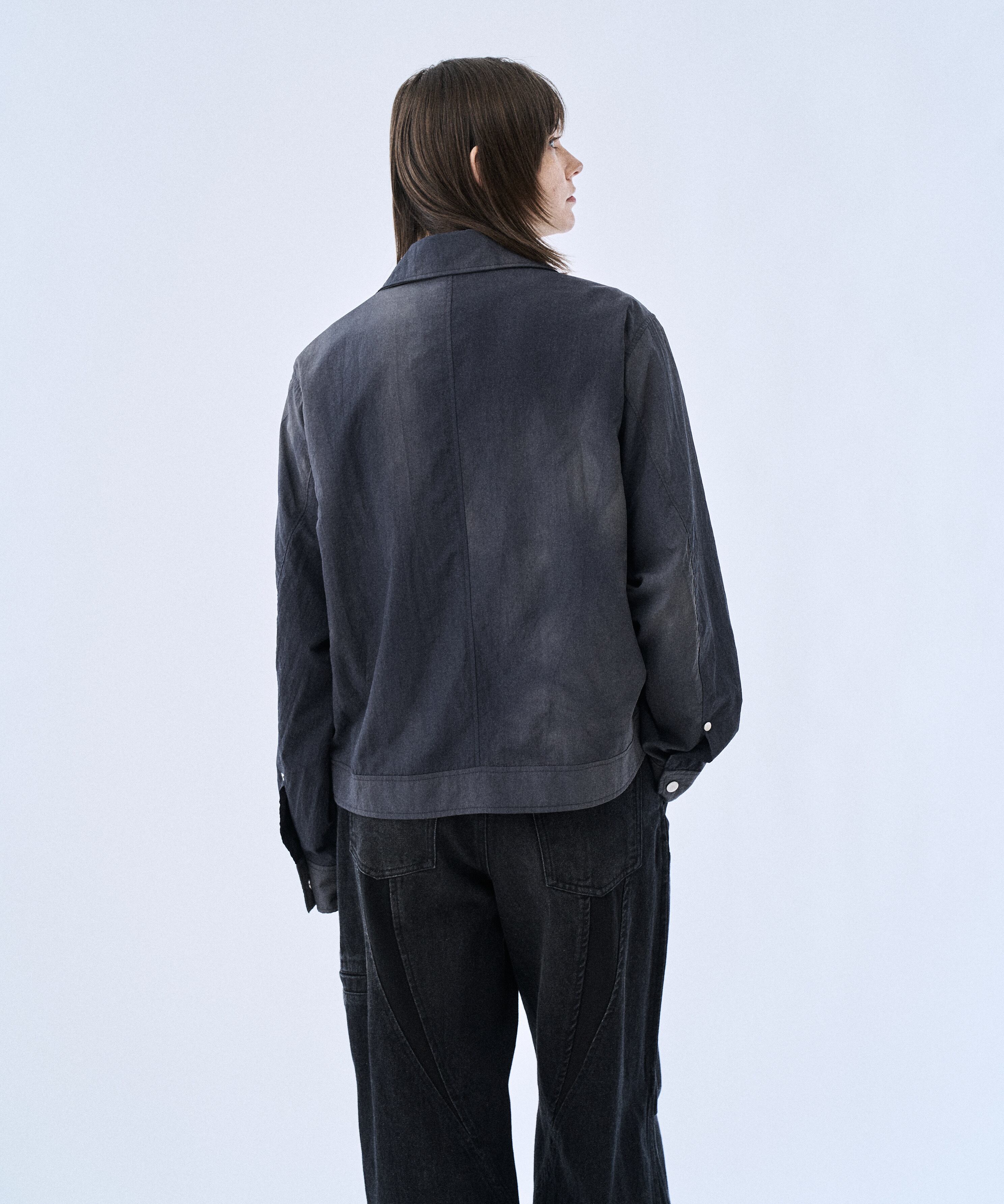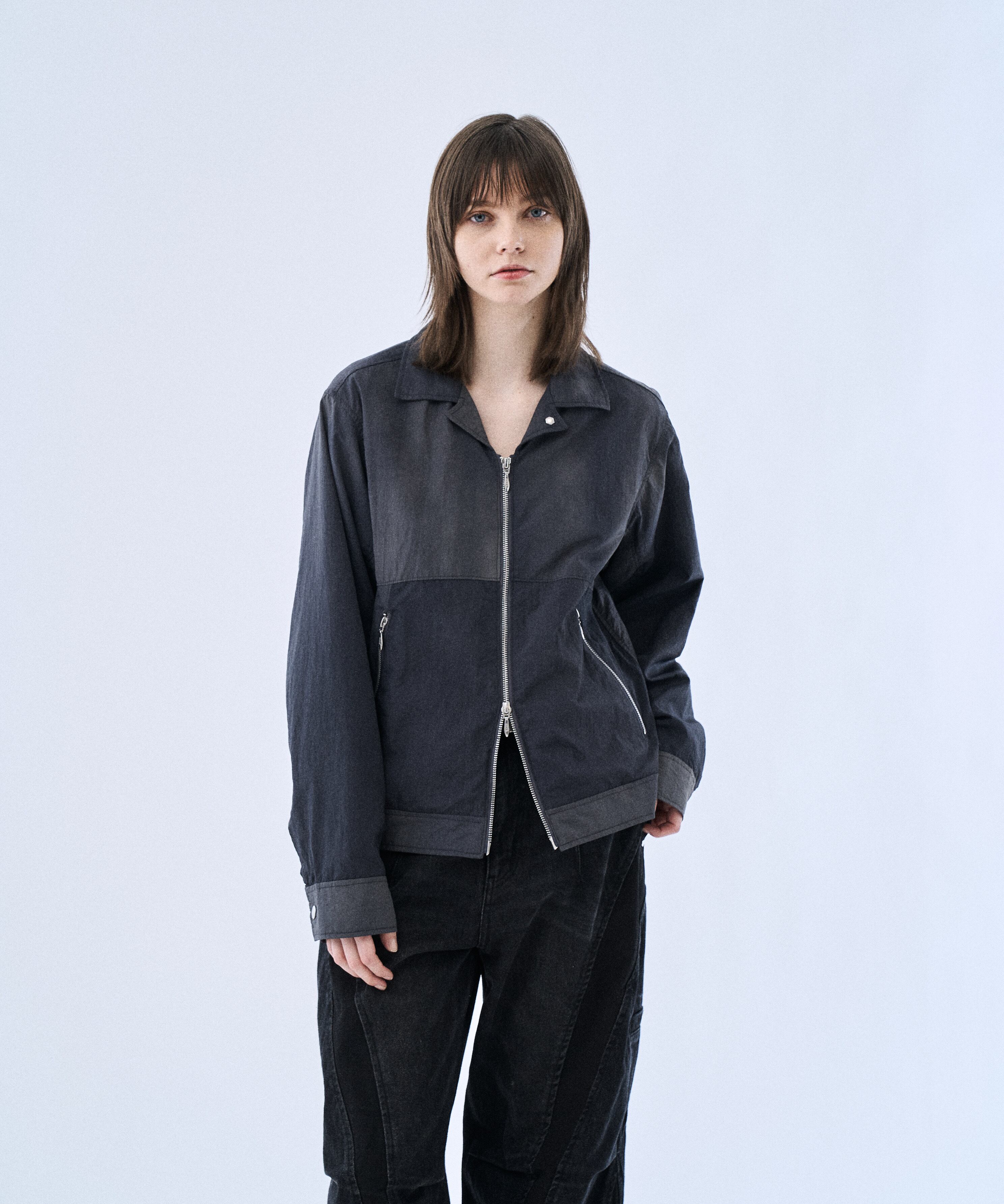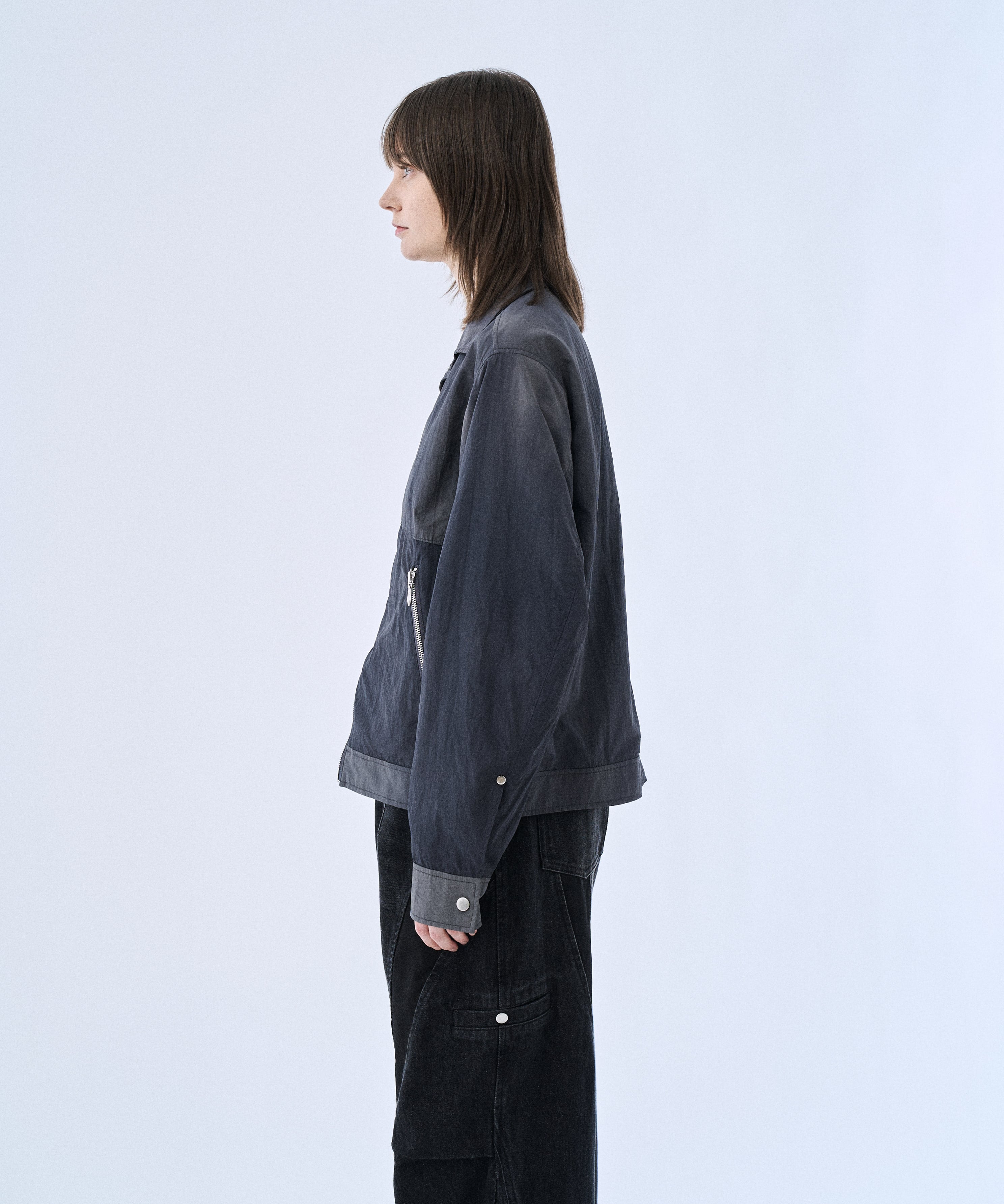 タイダイ調のウォッシュ加工で表情をつけた、コンパクト丈のジップブルゾン「Tie-dye washer compact blouson」。ナイロンならではの軽さに、洗いをかけたシワ感・ムラ感が加わり、無地感覚で合わせやすいのに“雰囲気”が出る一着です。