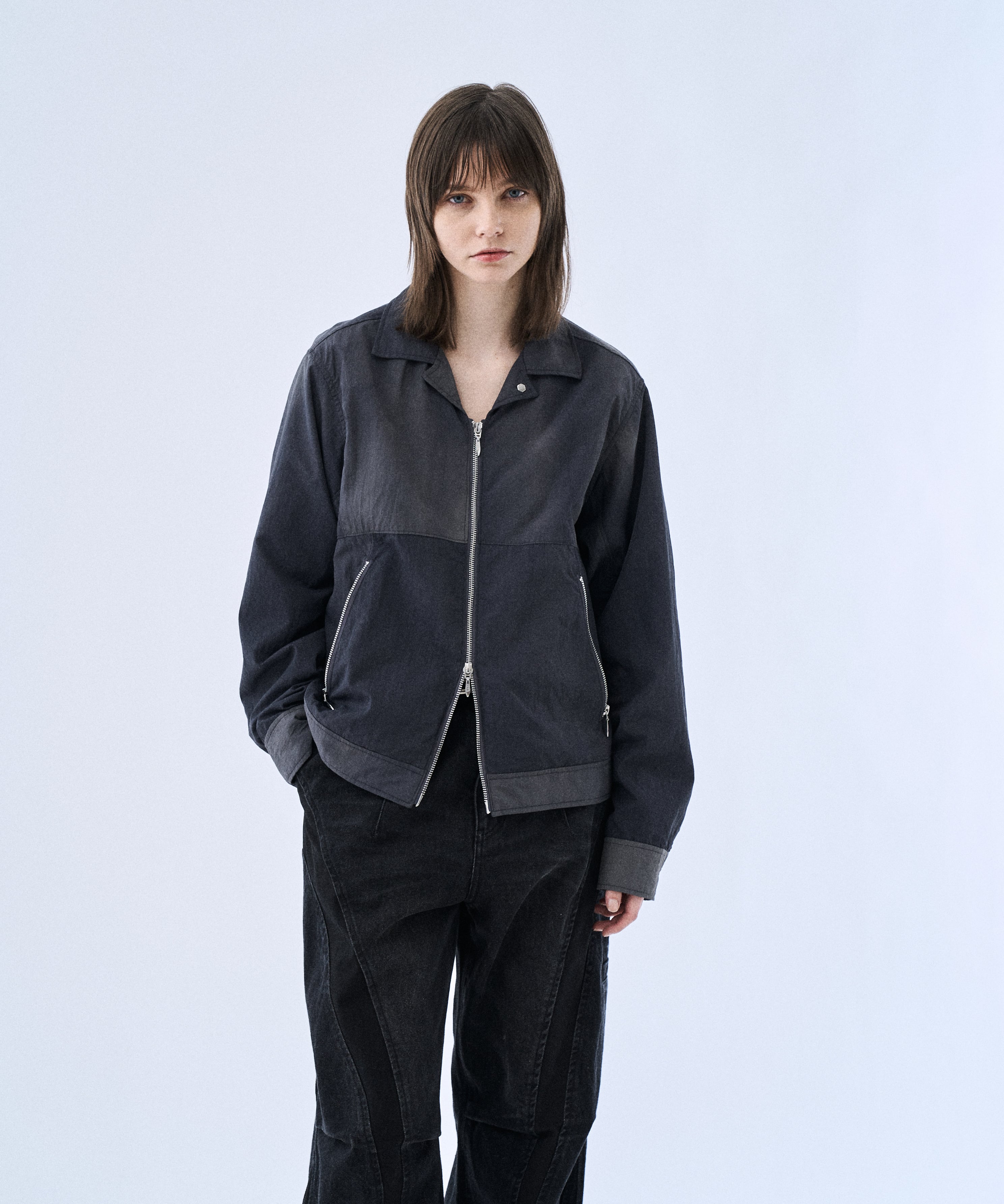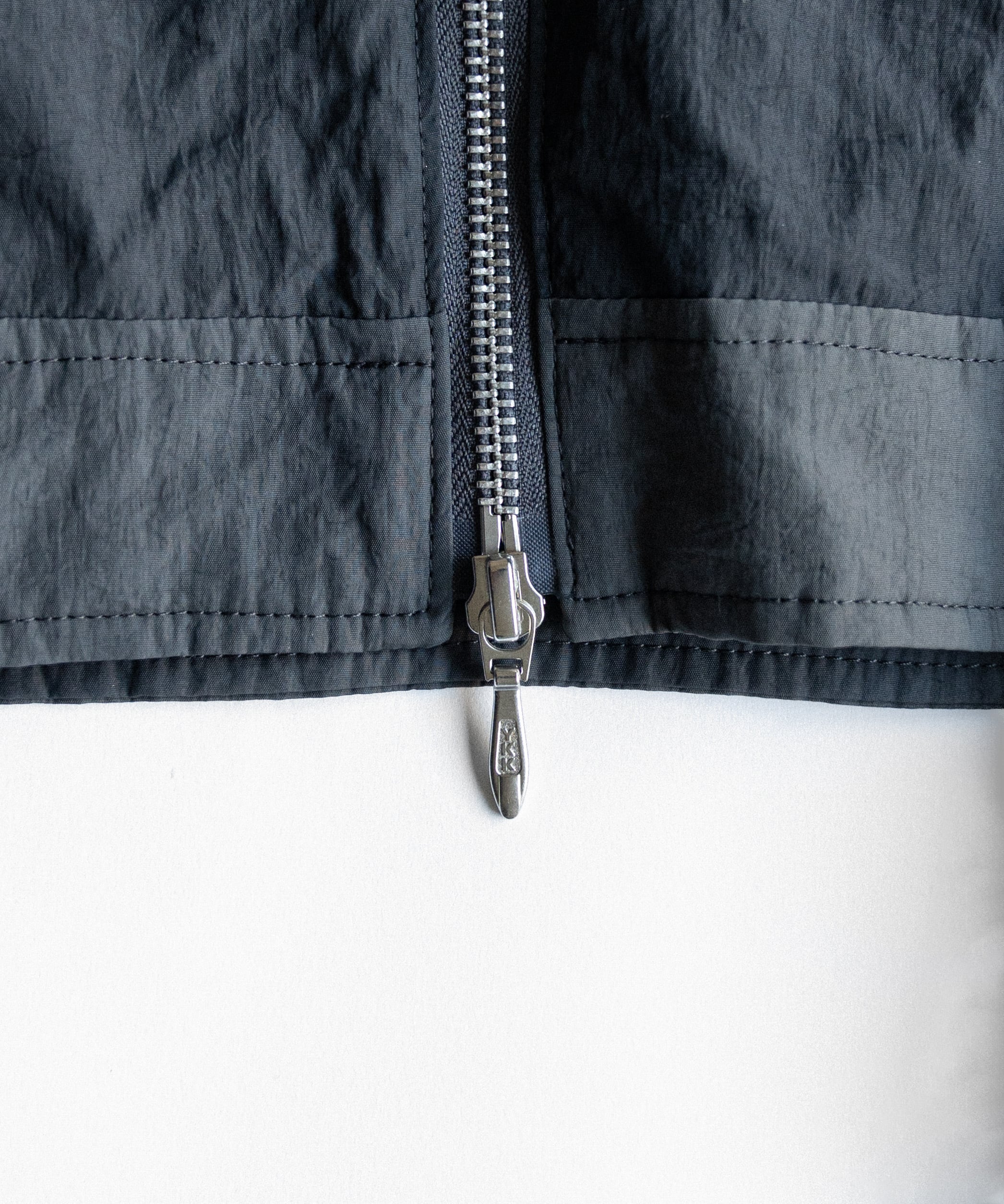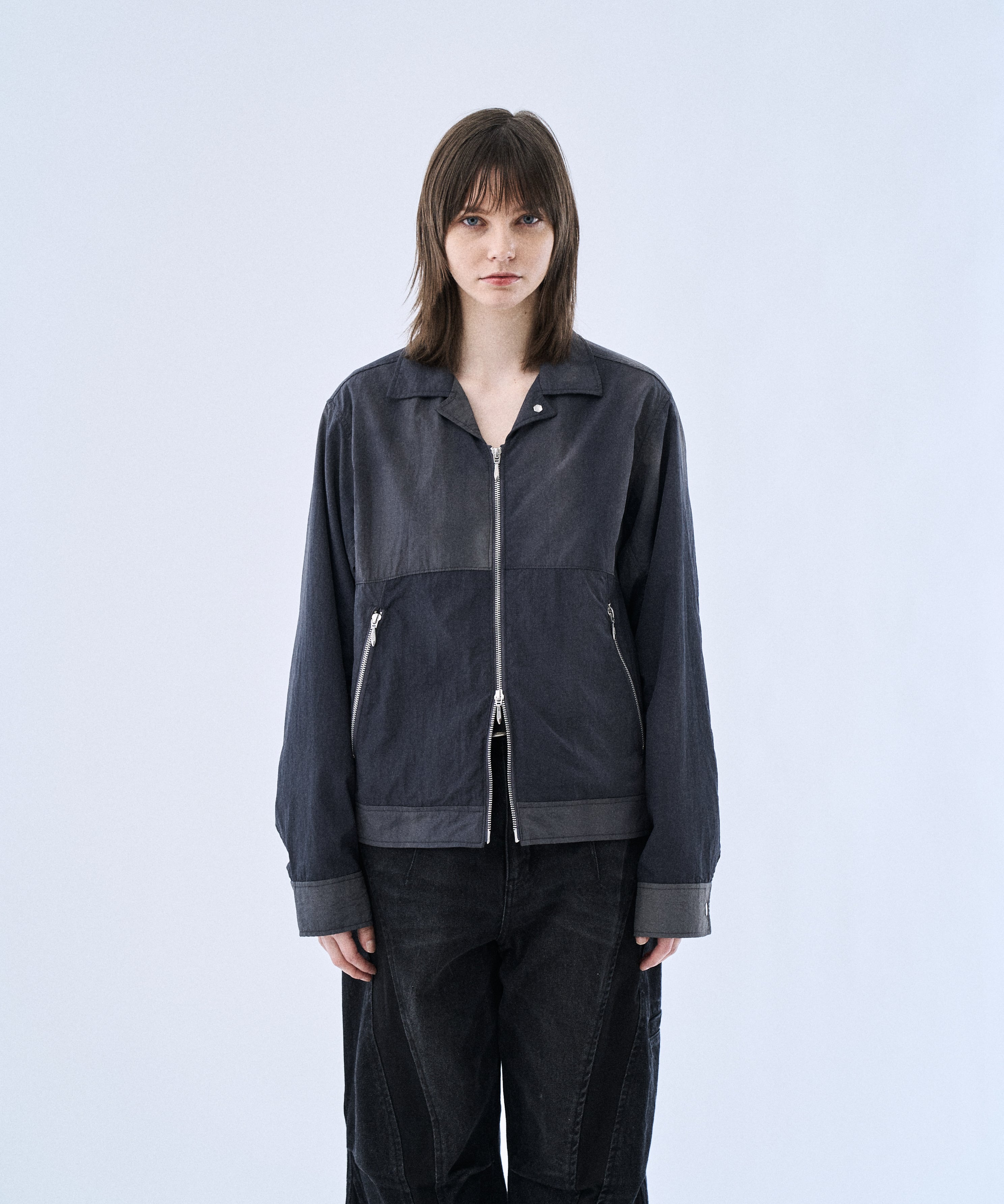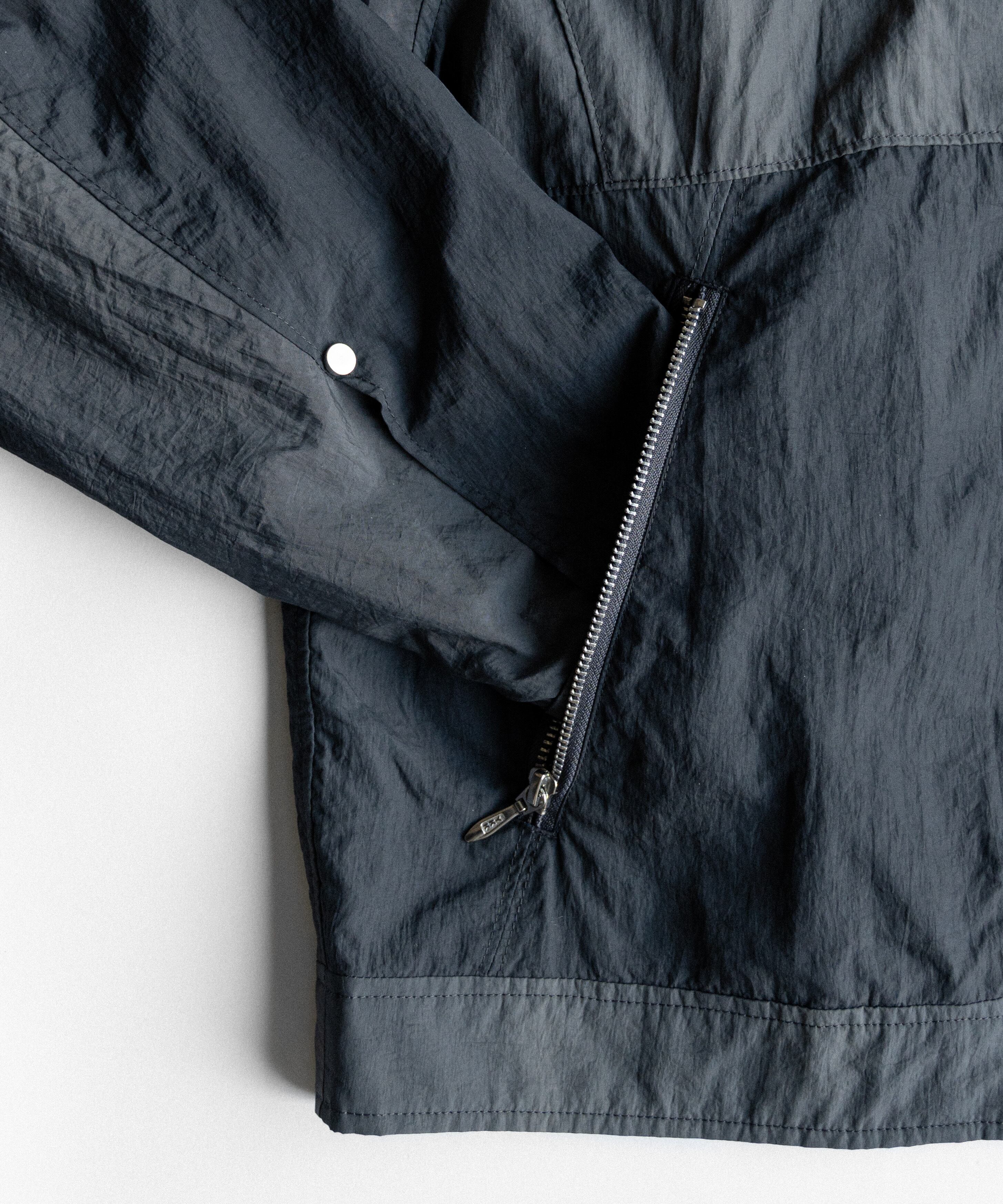 タイダイ調のウォッシュ加工で表情をつけた、コンパクト丈のジップブルゾン「Tie-dye washer compact blouson」。ナイロンならではの軽さに、洗いをかけたシワ感・ムラ感が加わり、無地感覚で合わせやすいのに“雰囲気”が出る一着です。