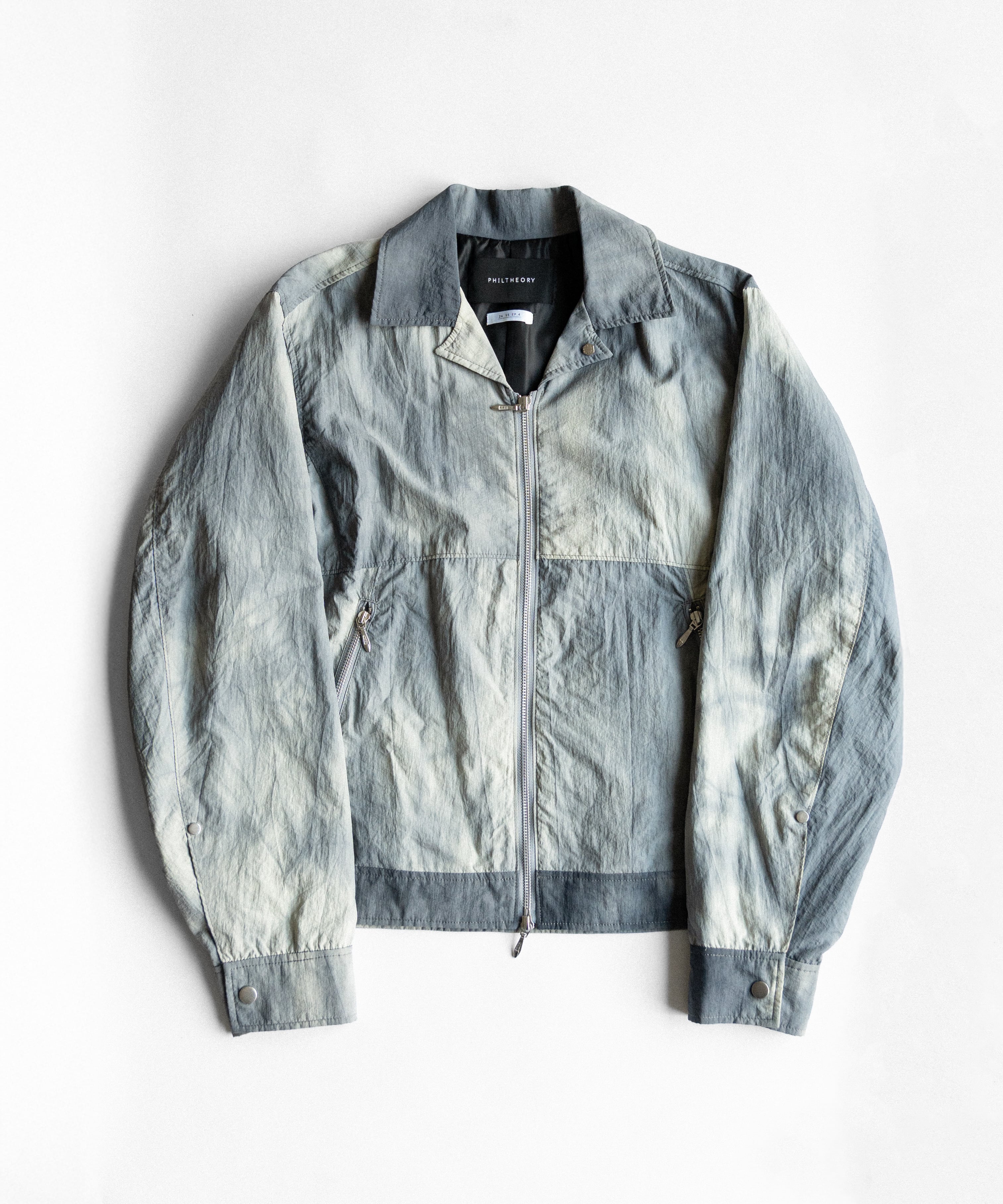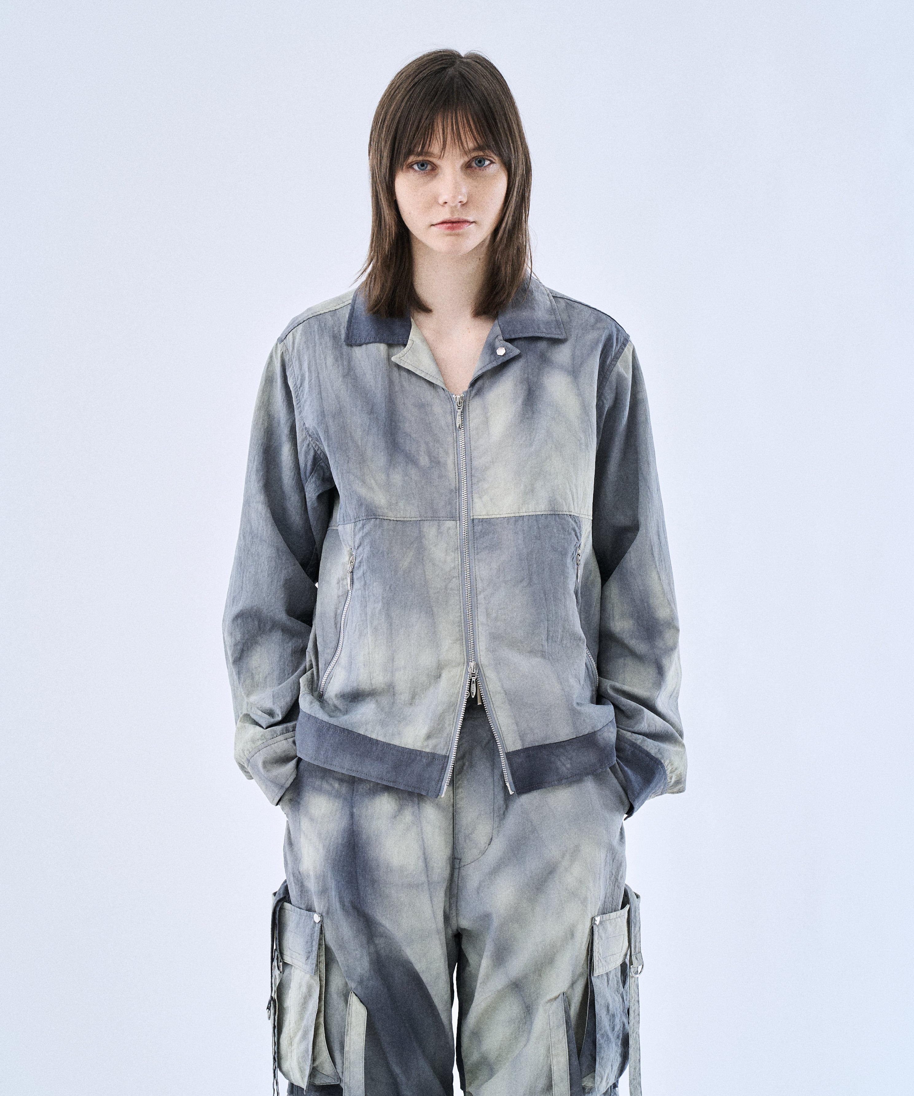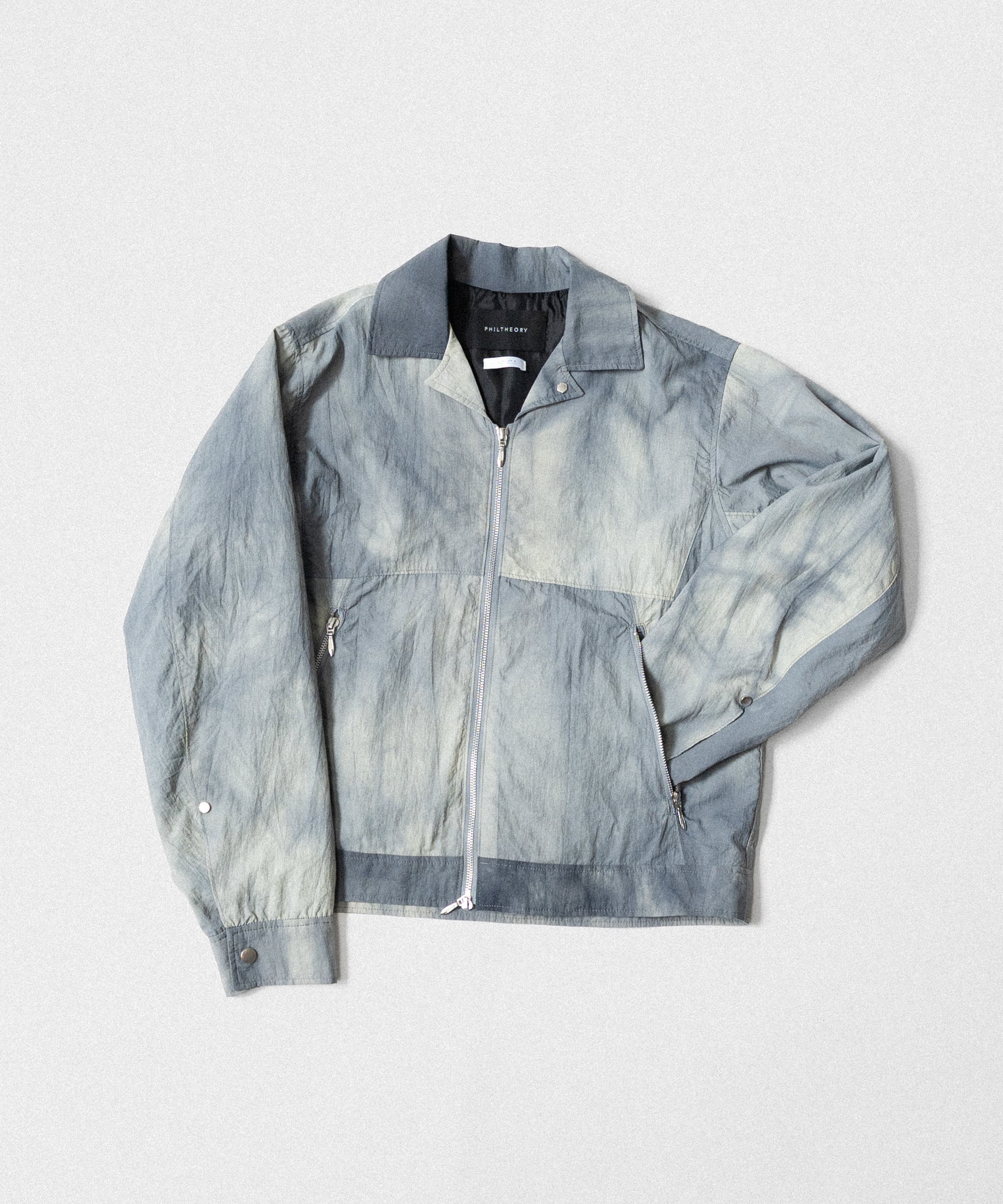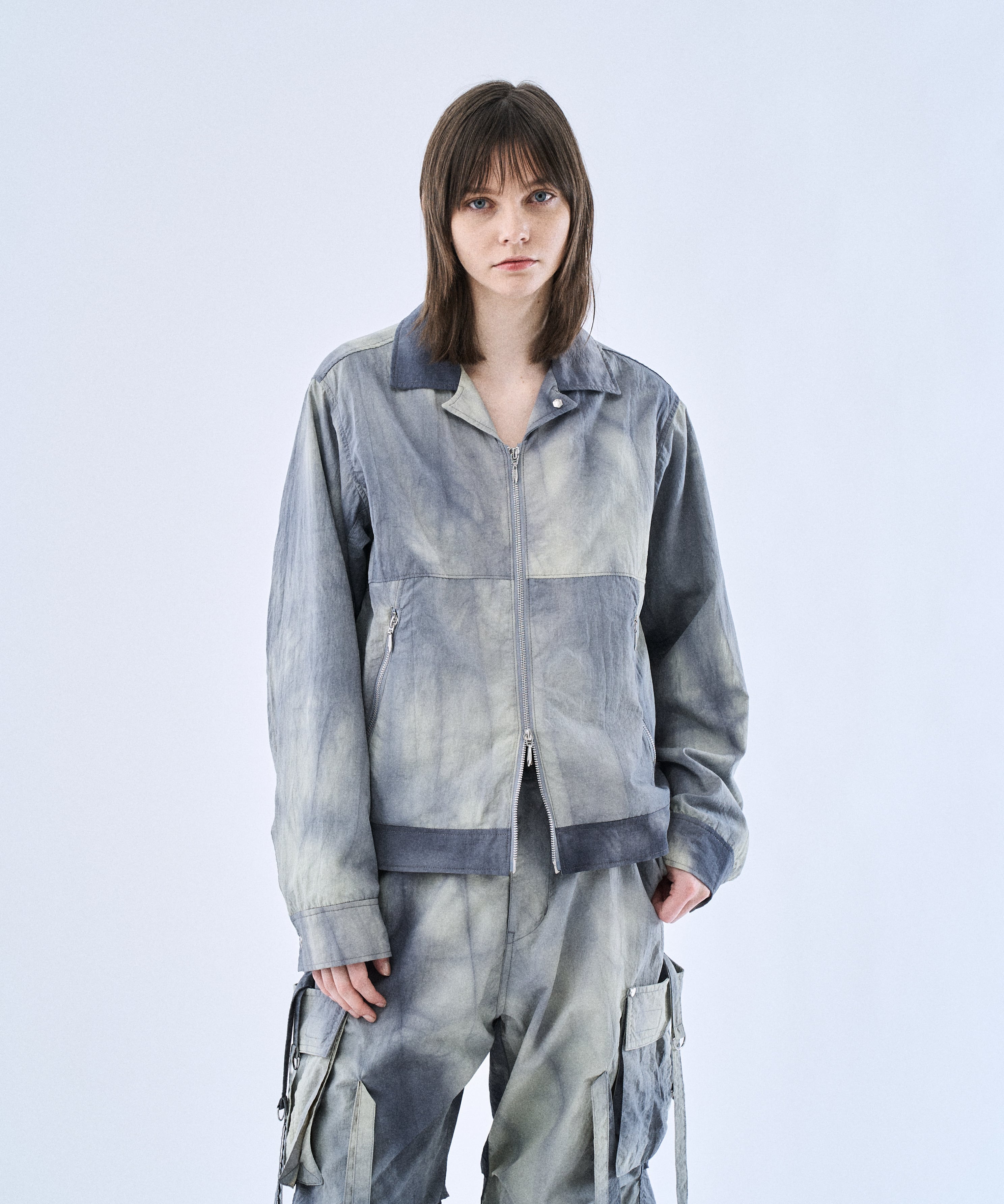 タイダイ調のウォッシュ加工で表情をつけた、コンパクト丈のジップブルゾン「Tie-dye washer compact blouson」。