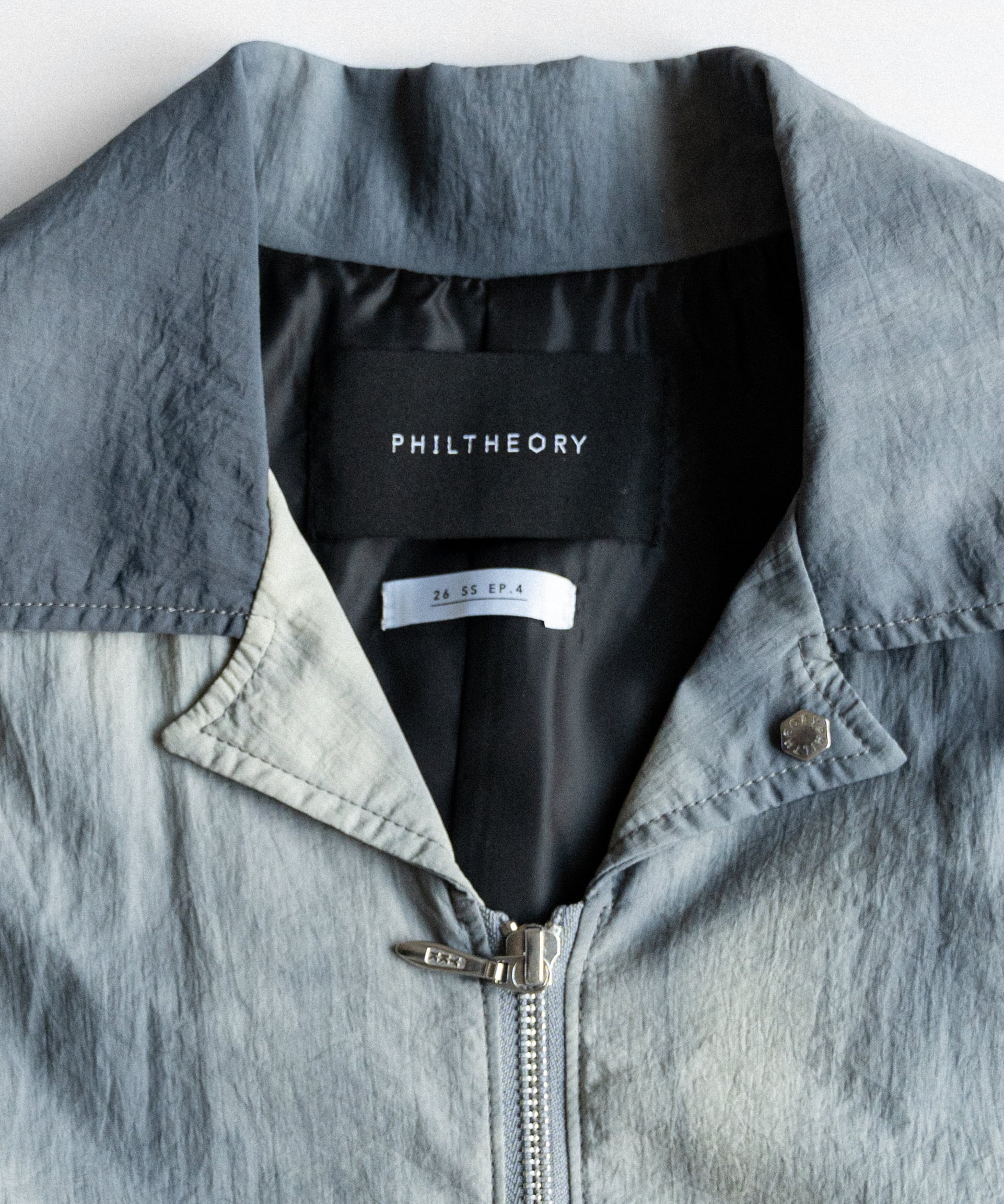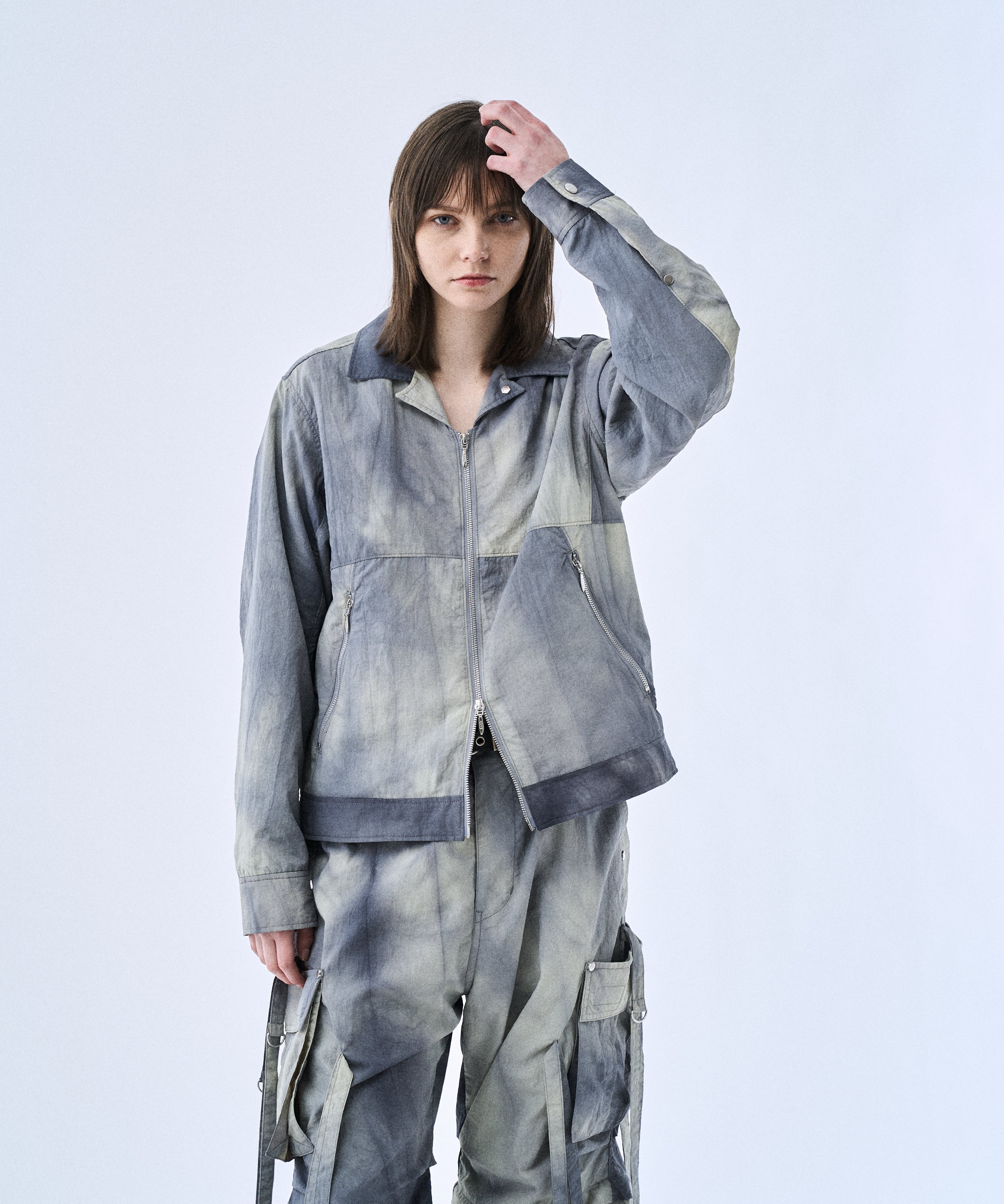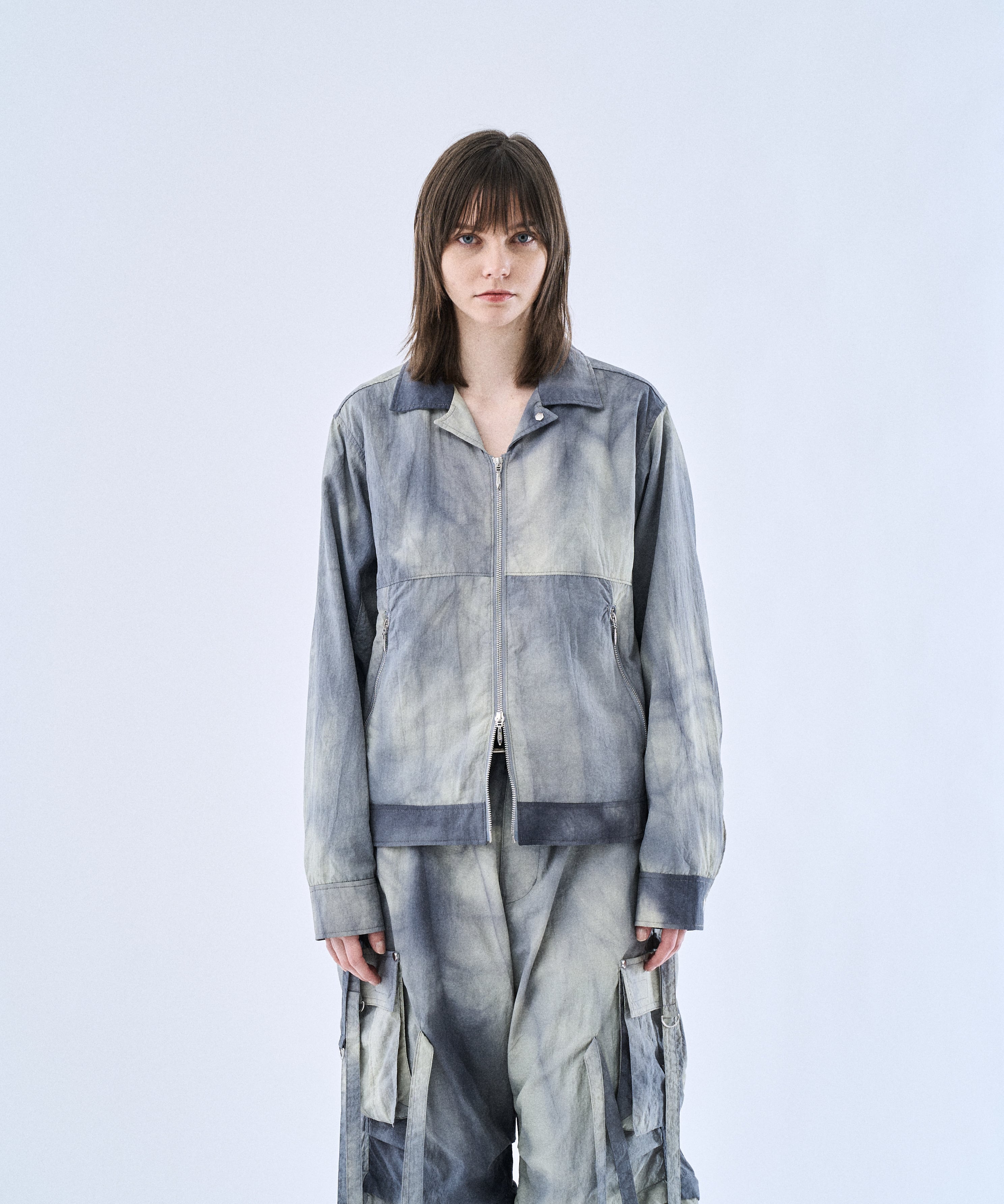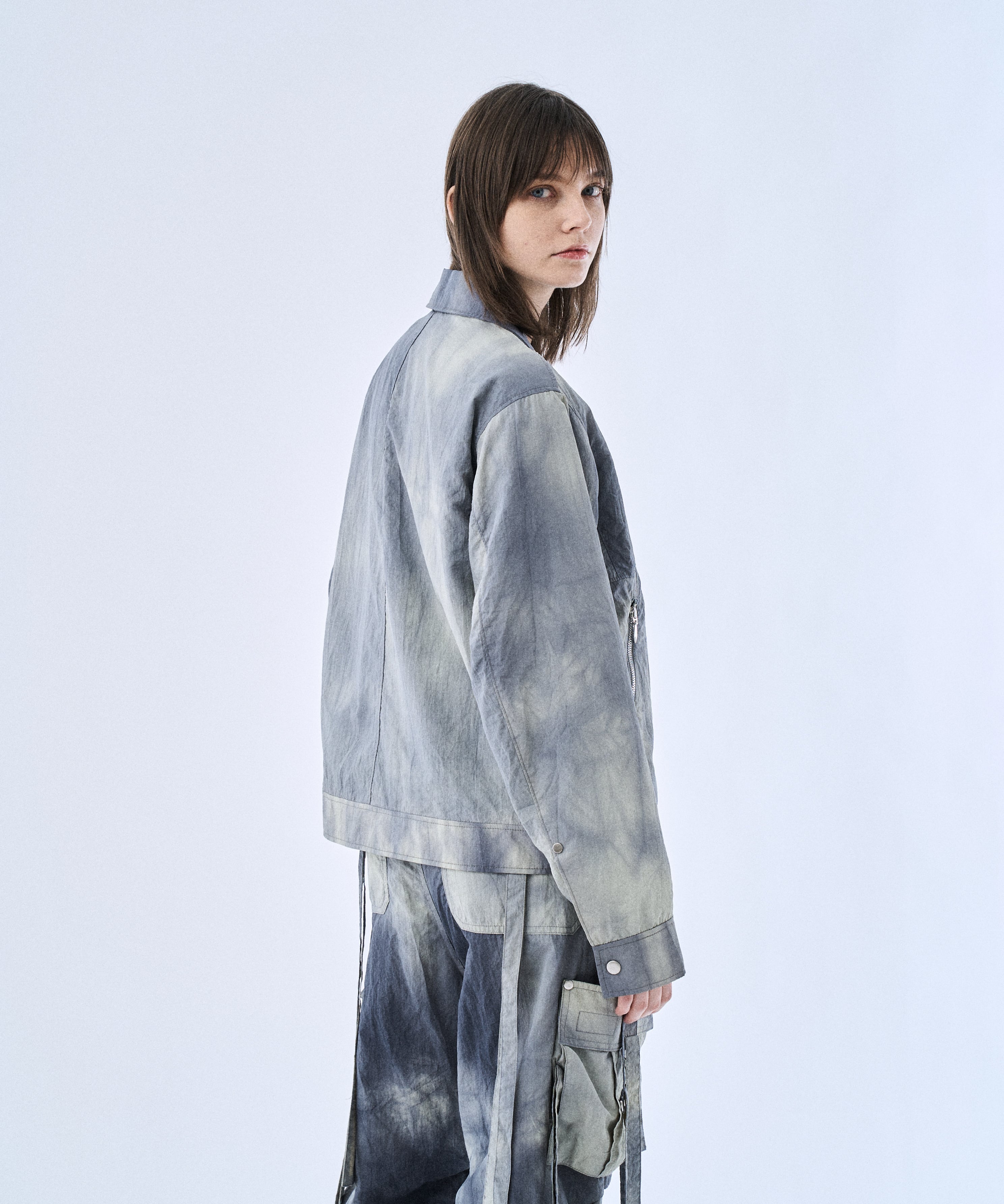 タイダイ調のウォッシュ加工で表情をつけた、コンパクト丈のジップブルゾン「Tie-dye washer compact blouson」。