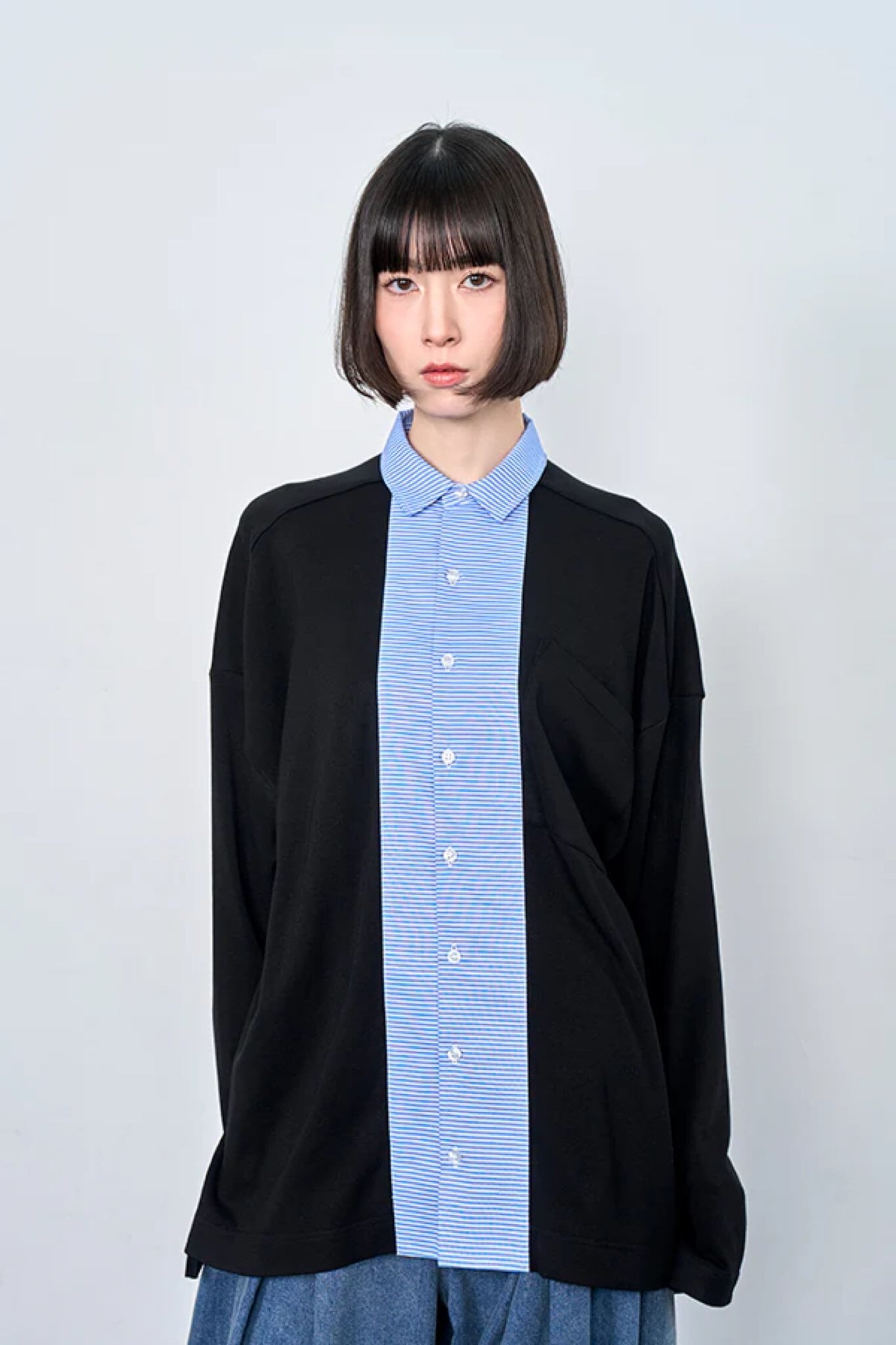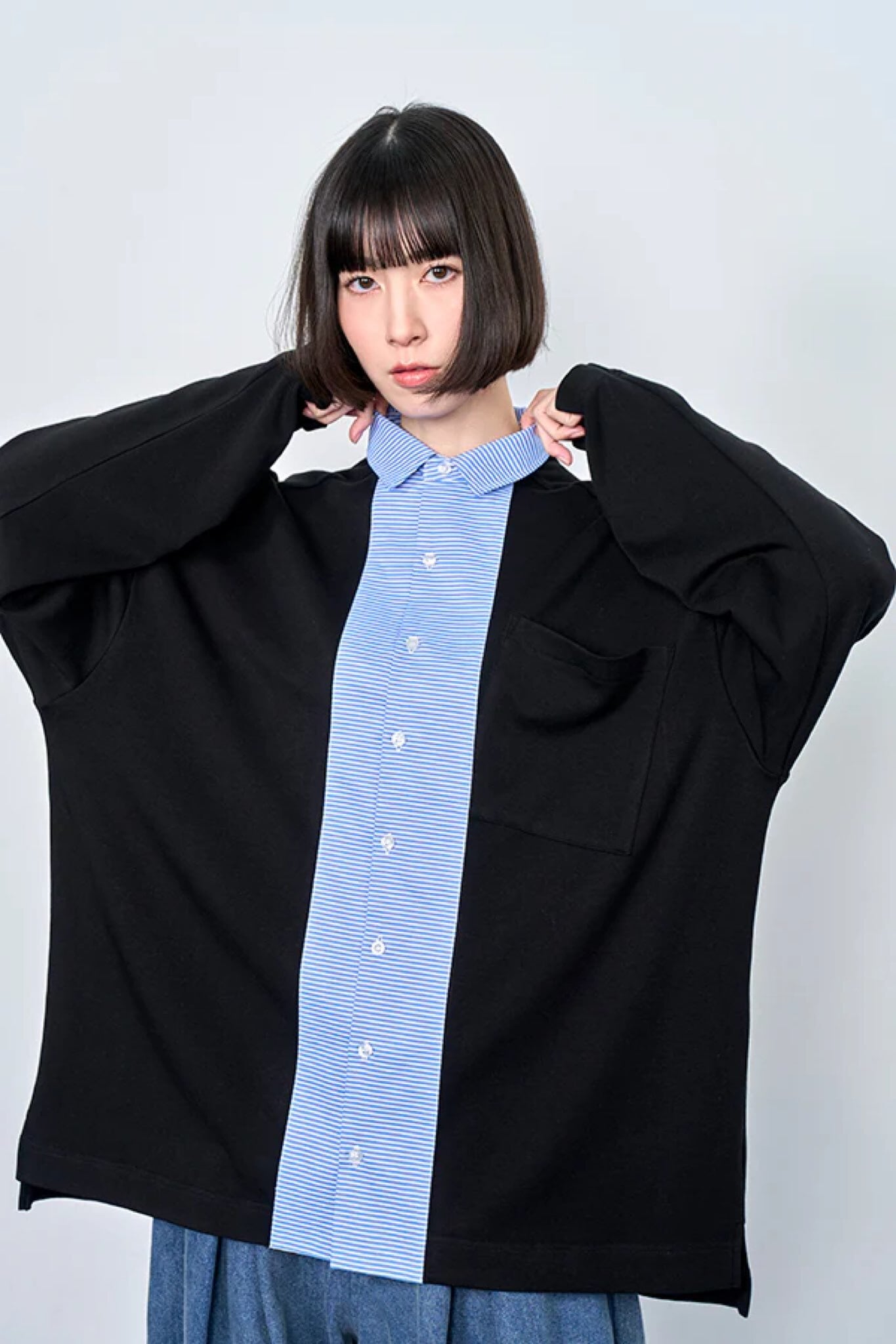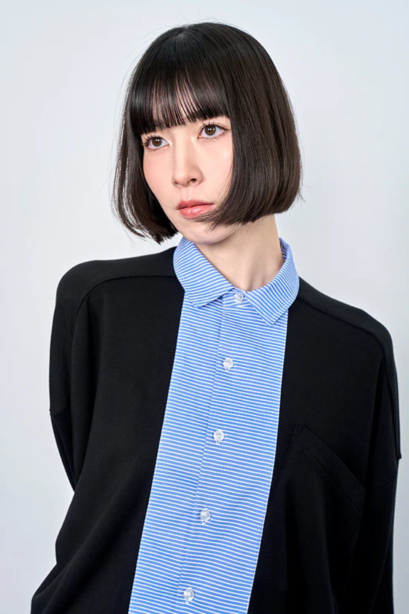 シャツとカットソーを大胆に切り替えた、Nora Lilyらしいハイブリッドデザインシャツ。