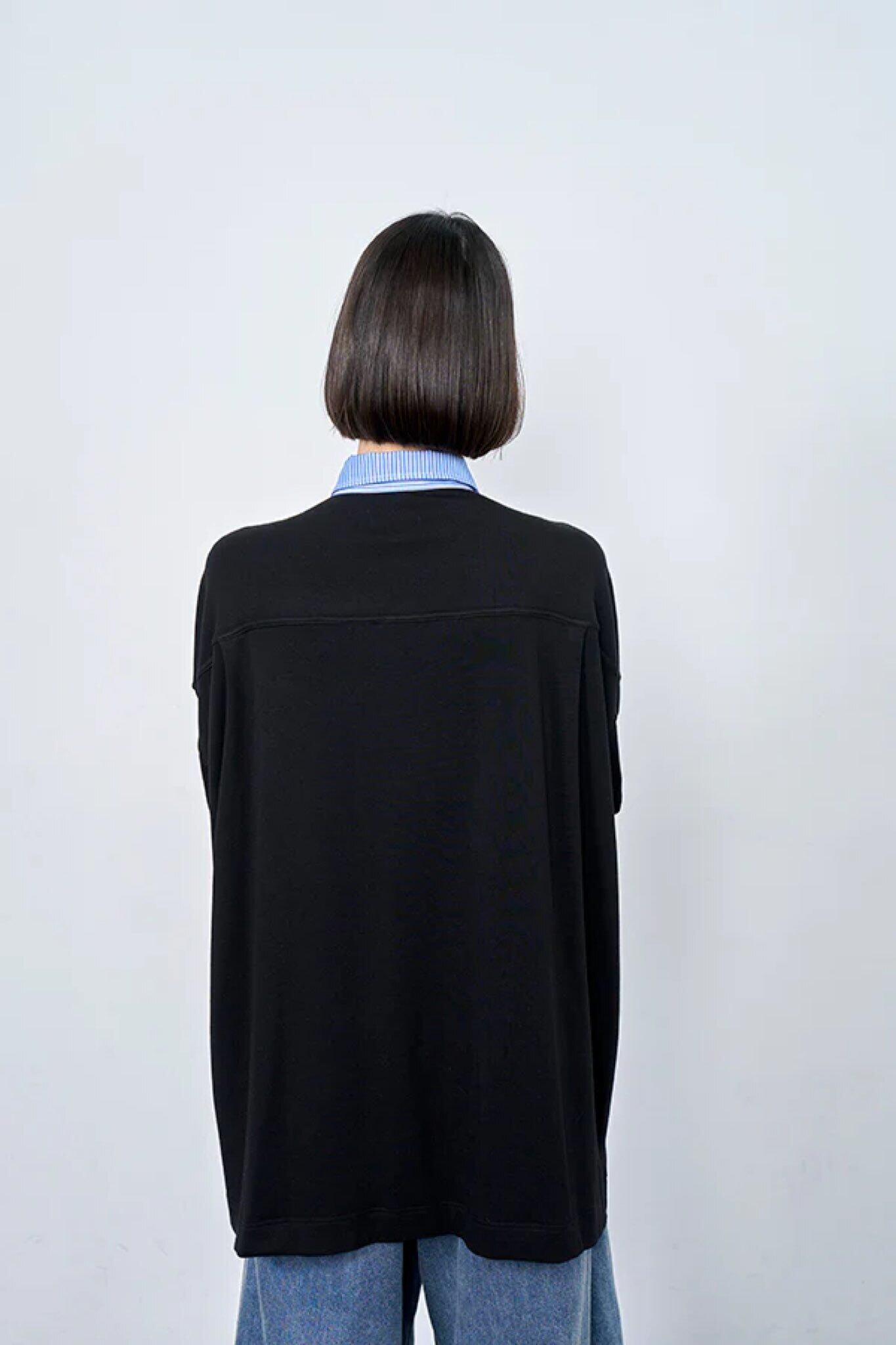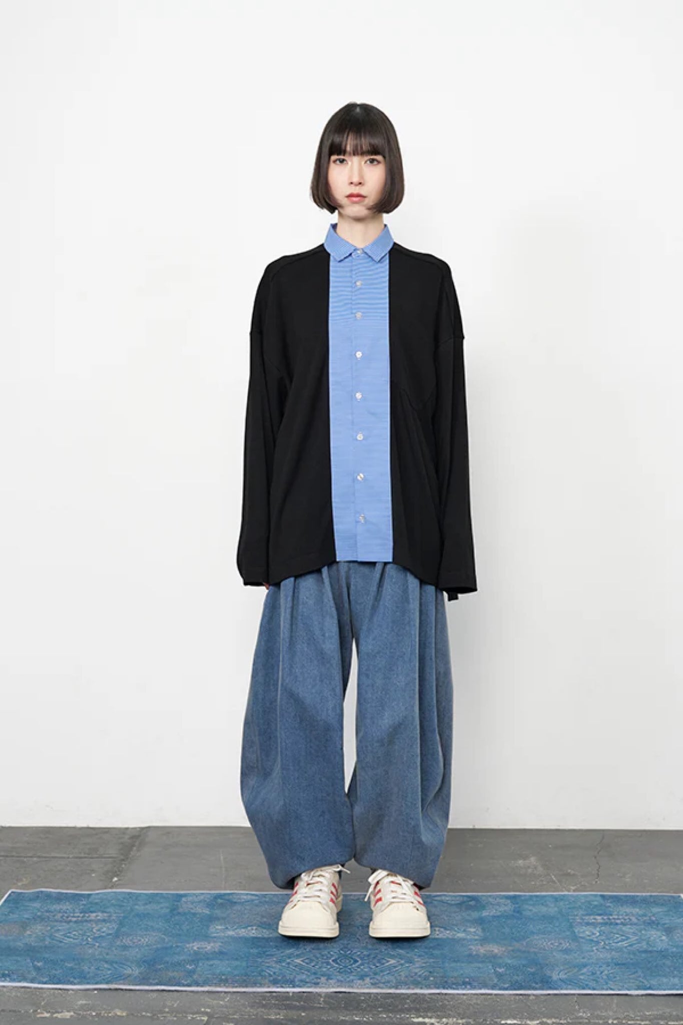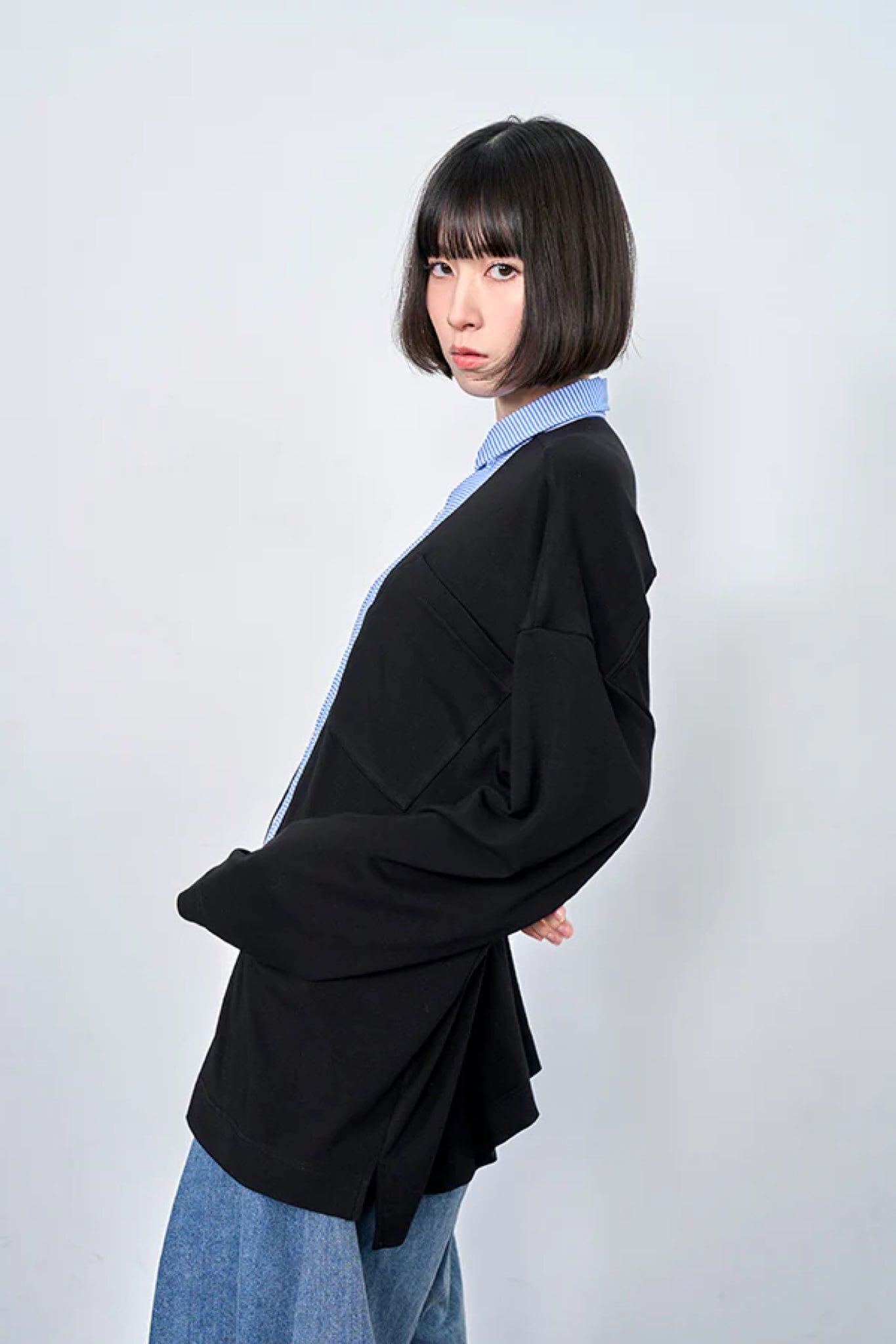 シャツとカットソーを大胆に切り替えた、Nora Lilyらしいハイブリッドデザインシャツ。