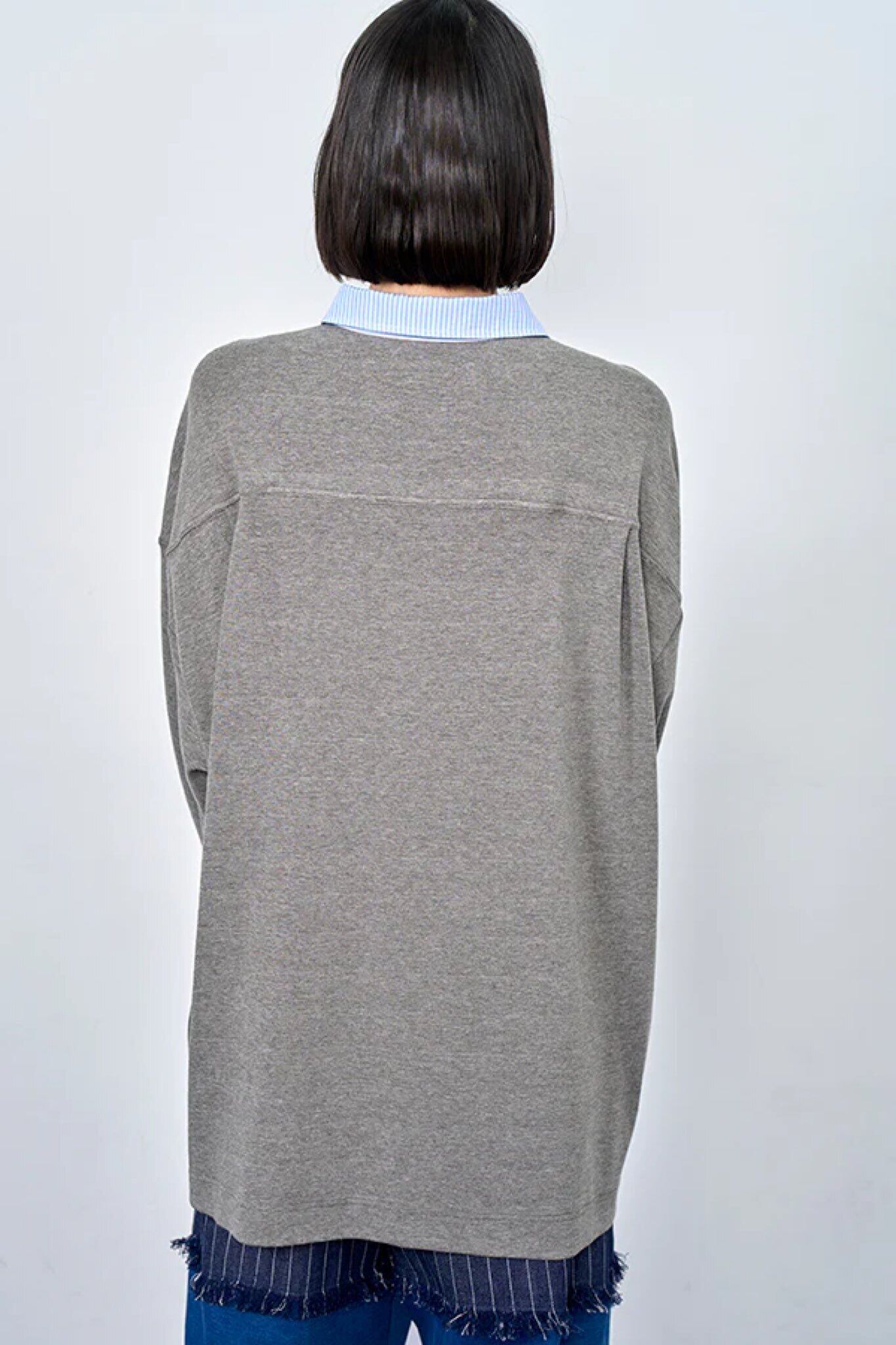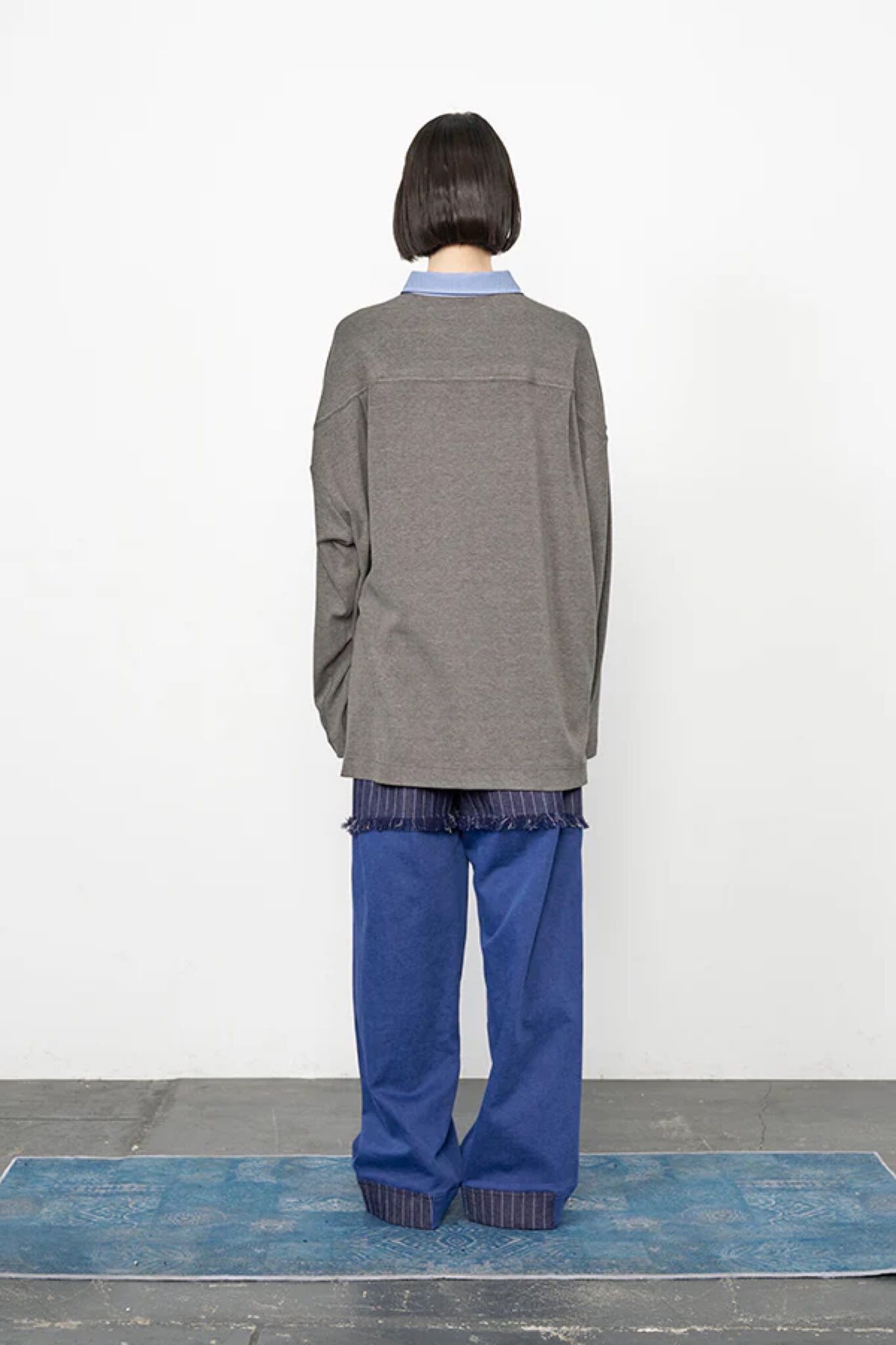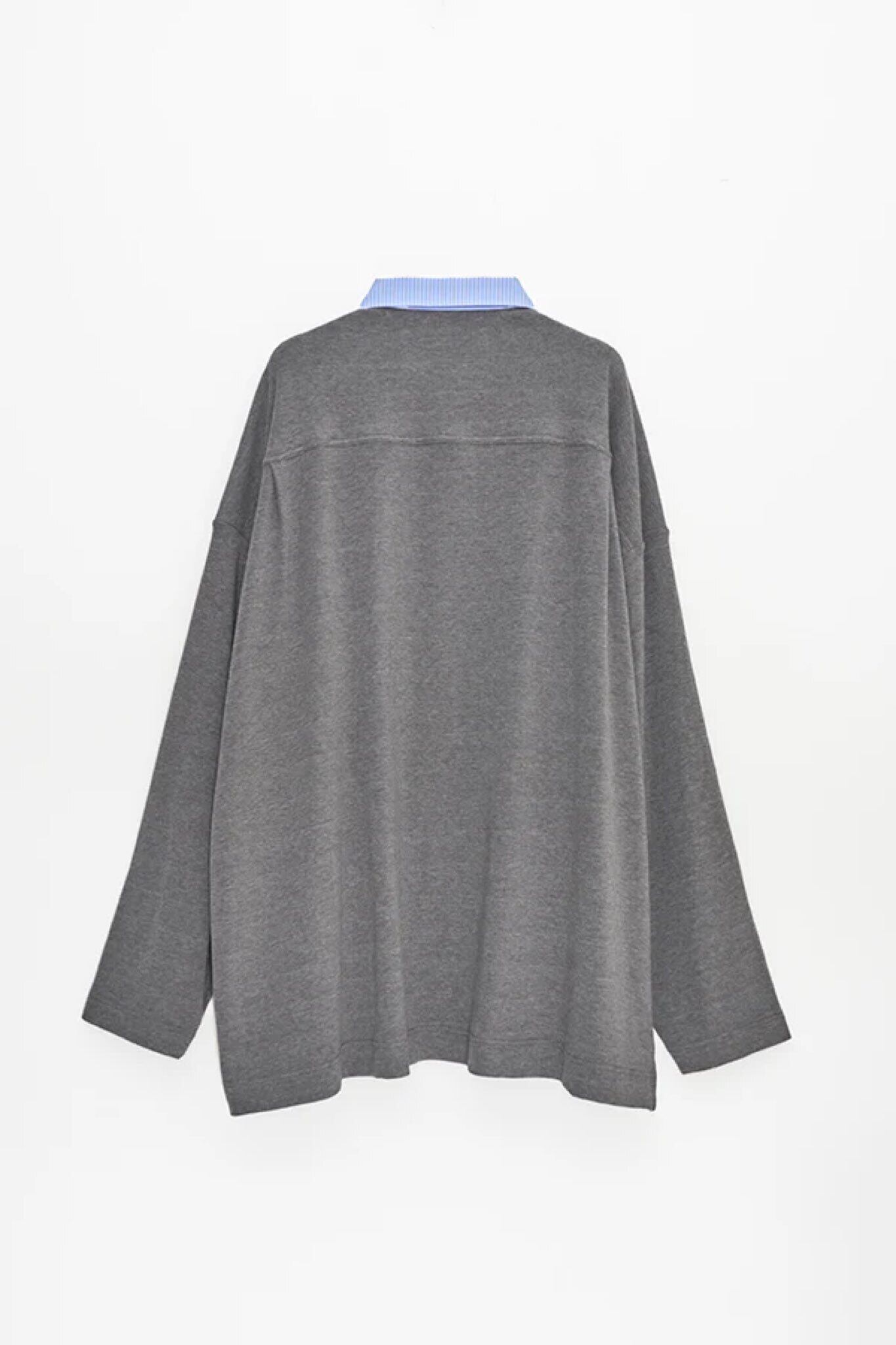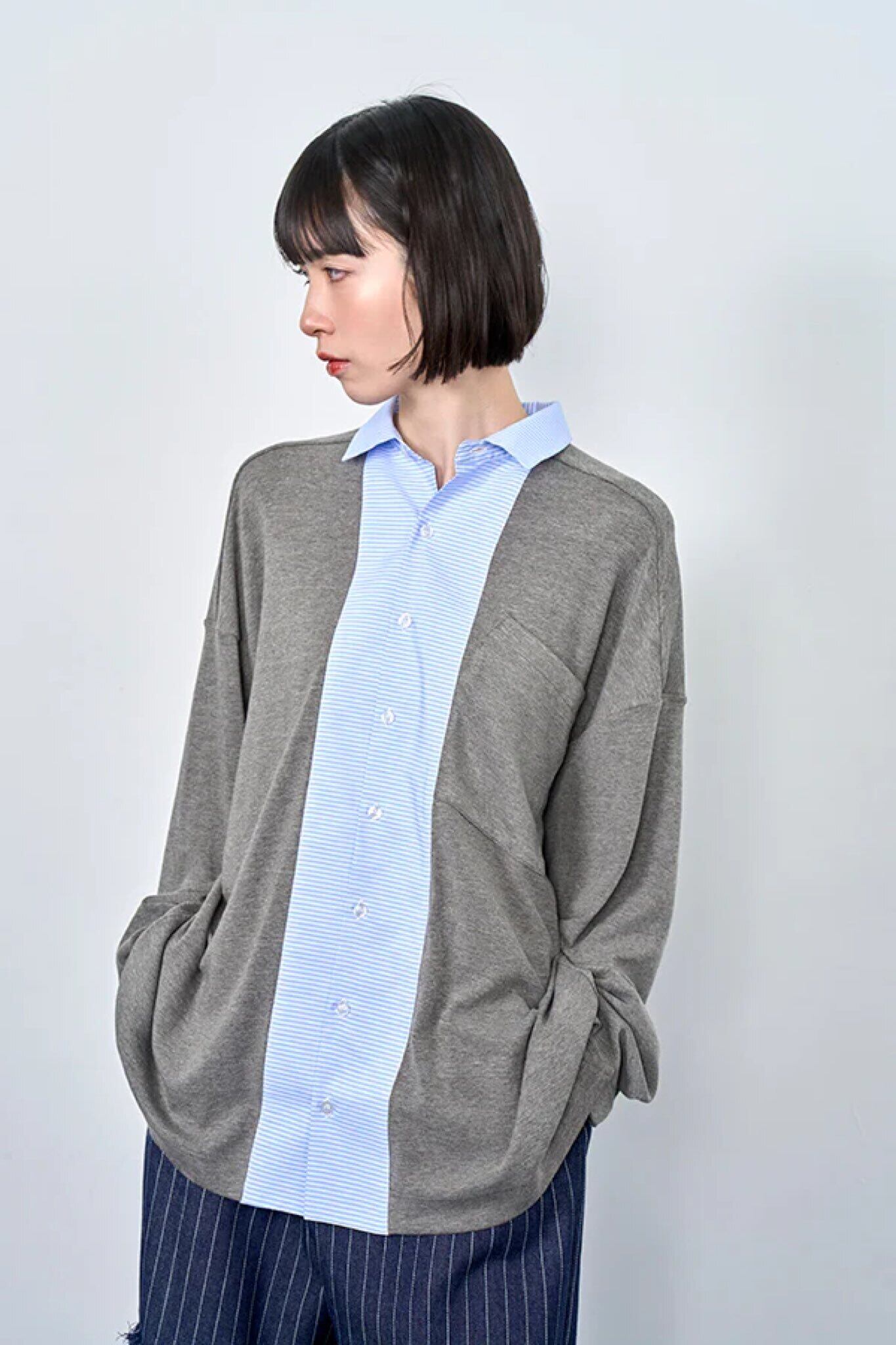 シャツとカットソーを大胆に切り替えた、Nora Lilyらしいハイブリッドデザインシャツ。