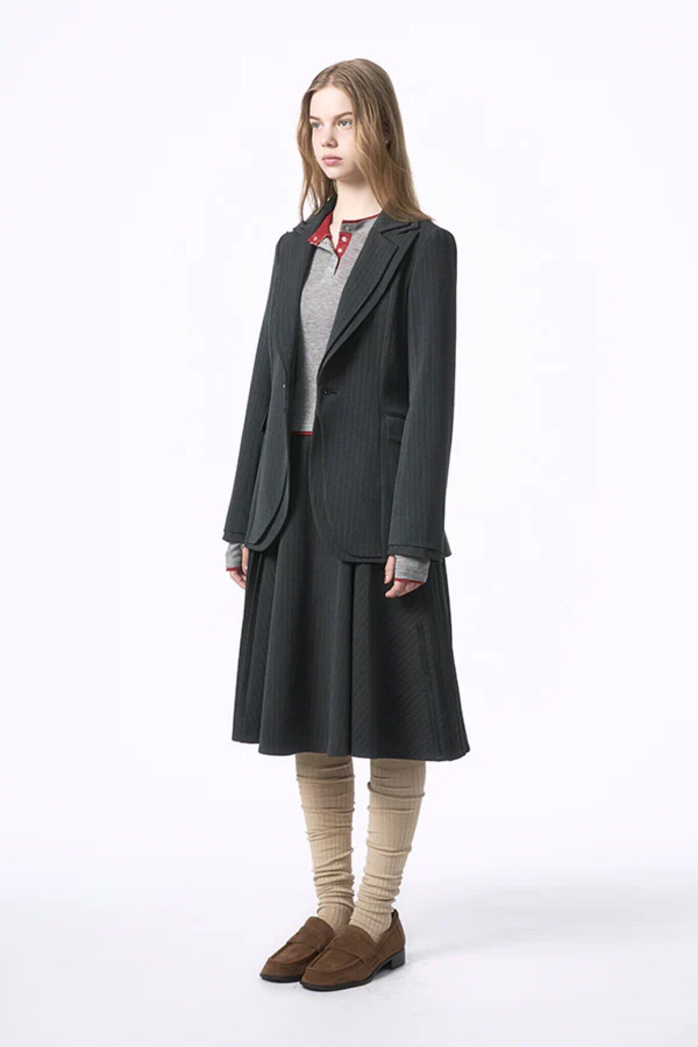 よりマニッシュでモード感の強いダークグレーストライプ。