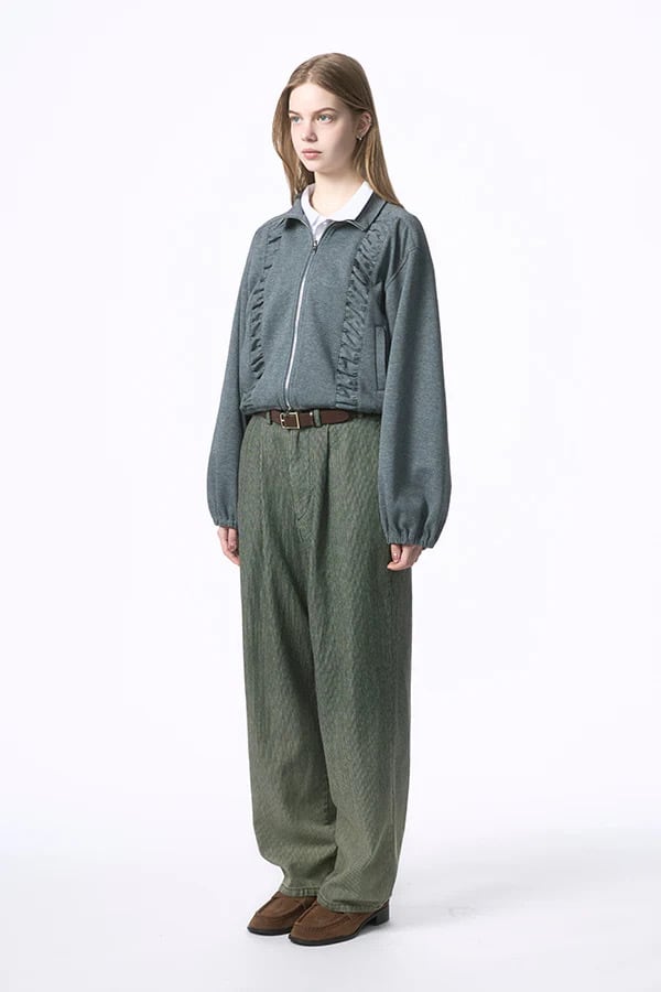 【Nora Lily】「elle」Bleached Hickory Stand Collar Blouson(Set Up Item)
