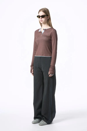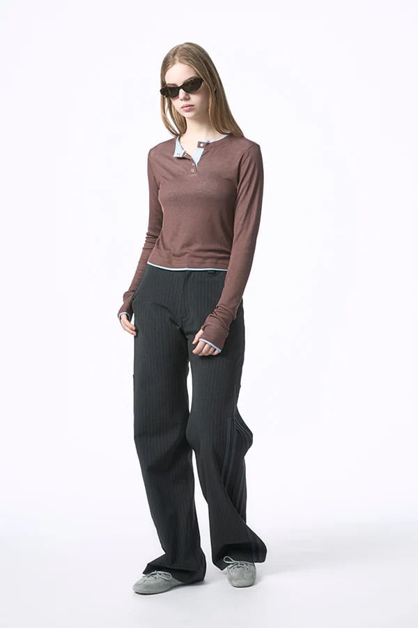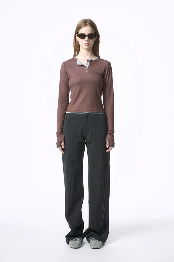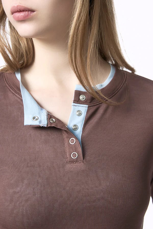 【Nora Lily】「elle」Double-Layer Bicolor Henley Top