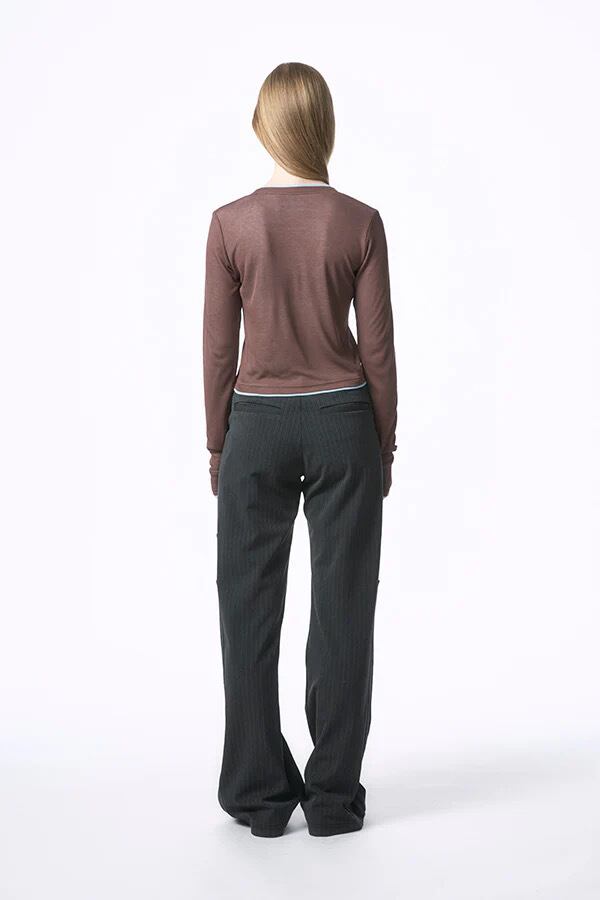 程よく透け感のある素材とコンパクトな丈感が、スタイリングに軽さと抜けを与えます。